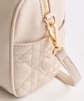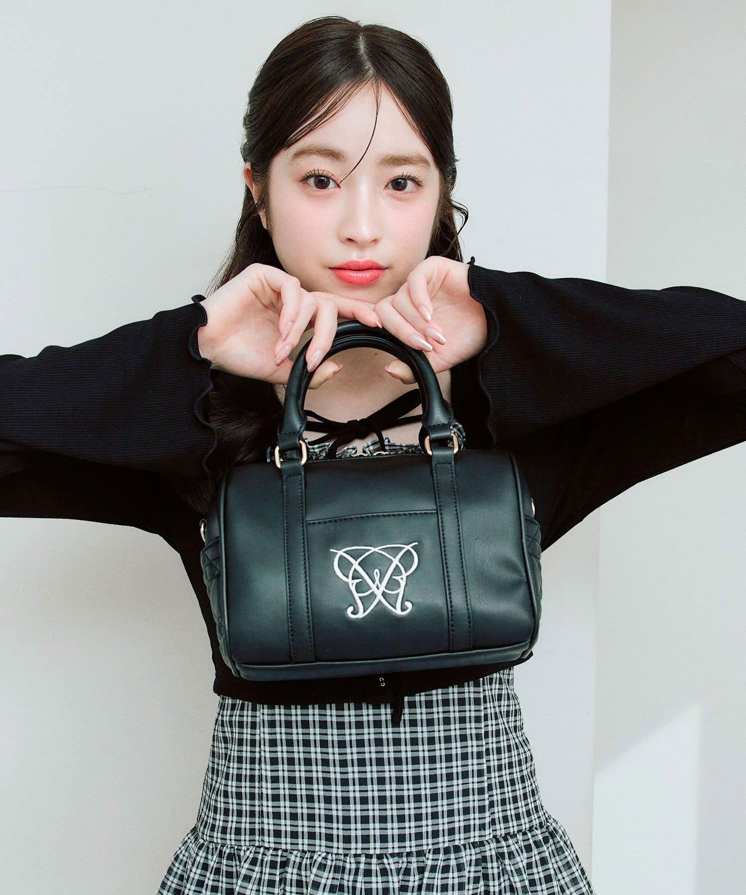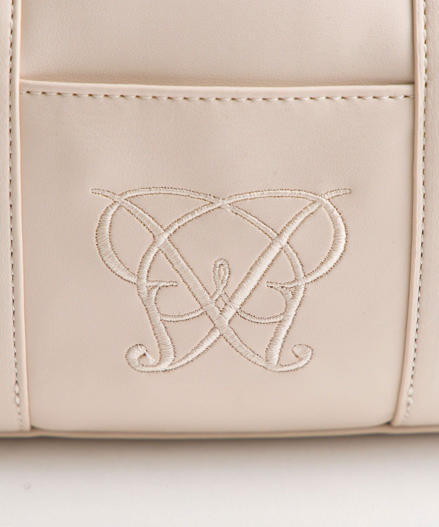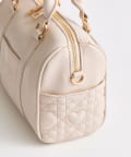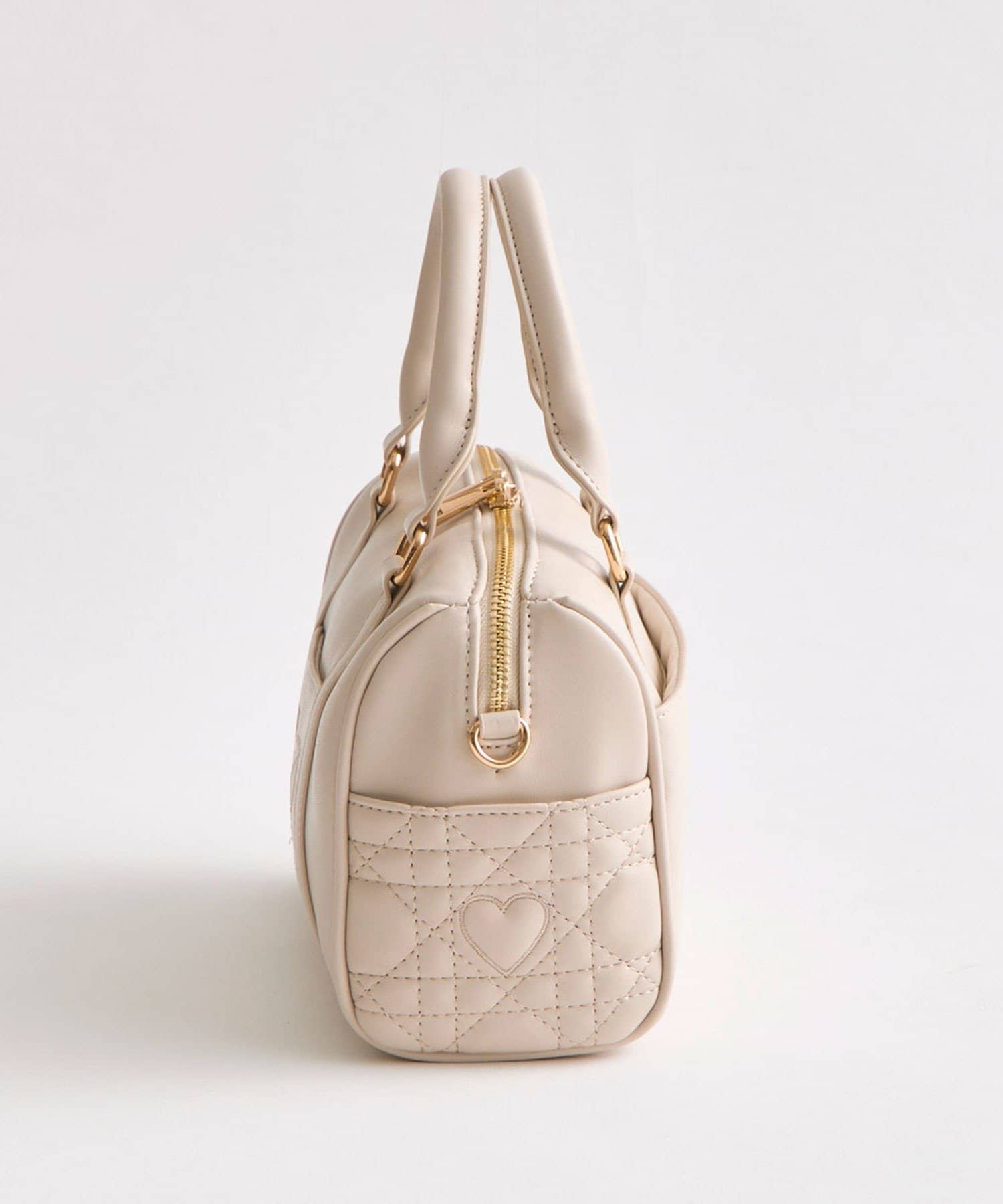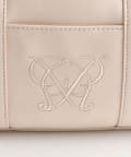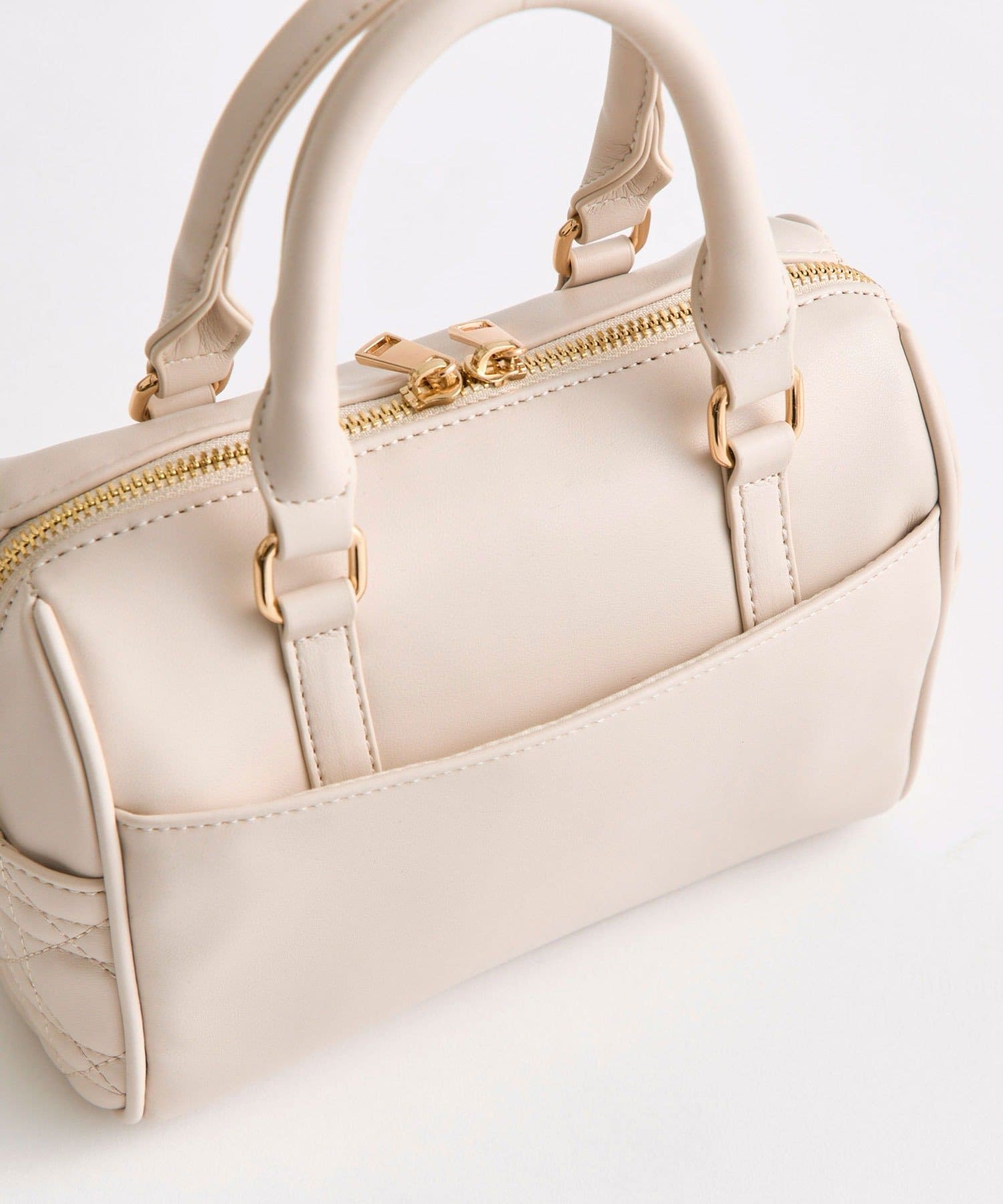 ・高見えする合皮素材にオリジナルのロゴ刺繍とキルティングポケットを施したミニボストンバッグ。