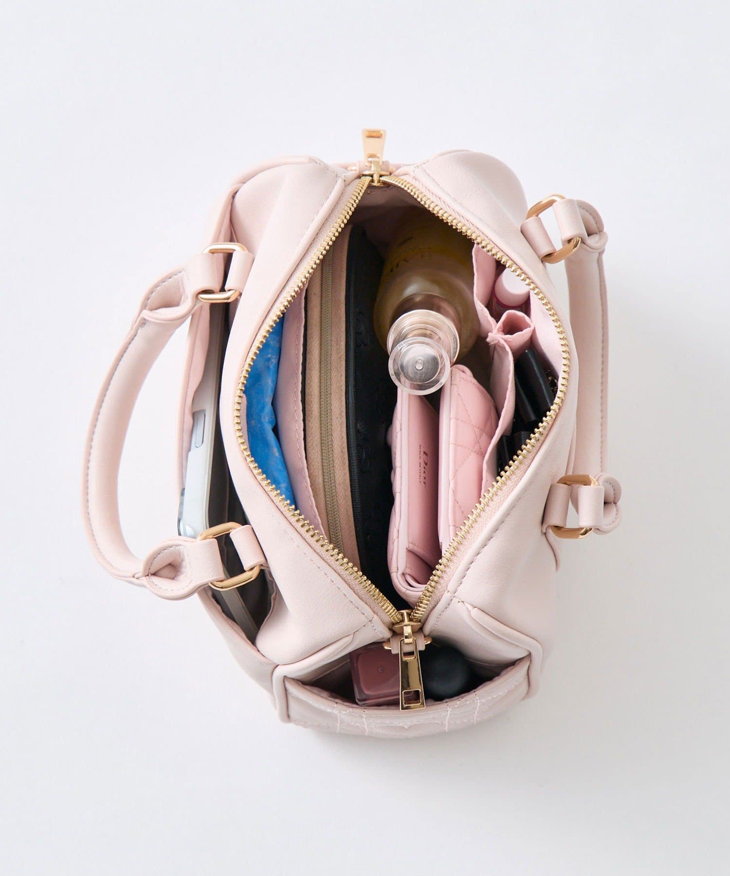 ・コンパクトながら収納力も抜群で、お財布やポーチなどお出かけに必要なアイテムはしっかり入ります。
