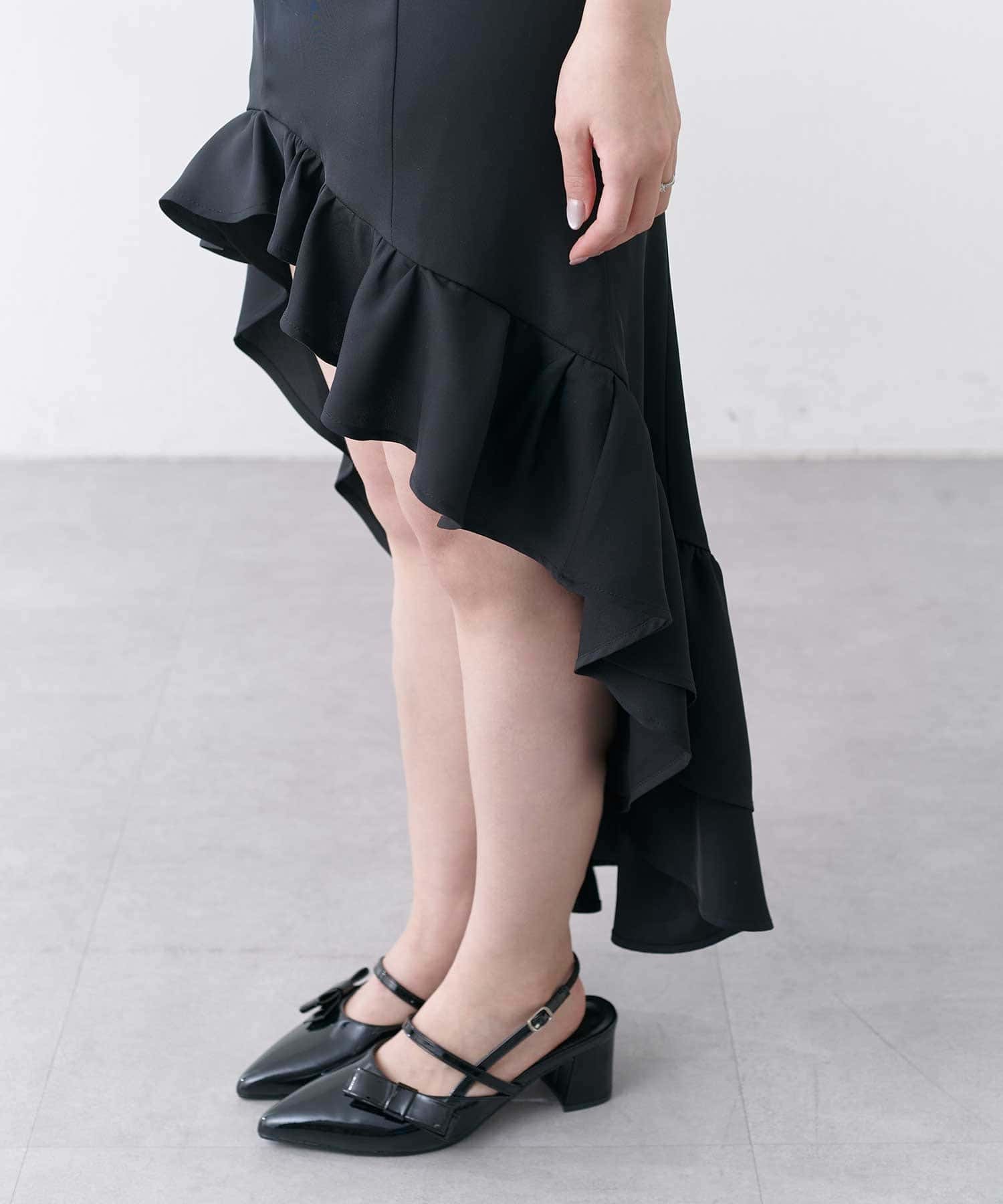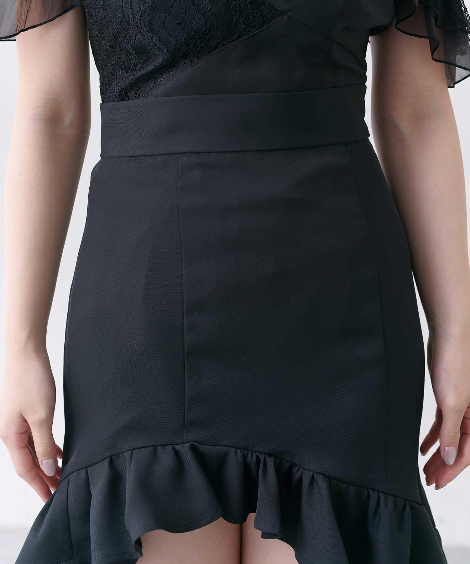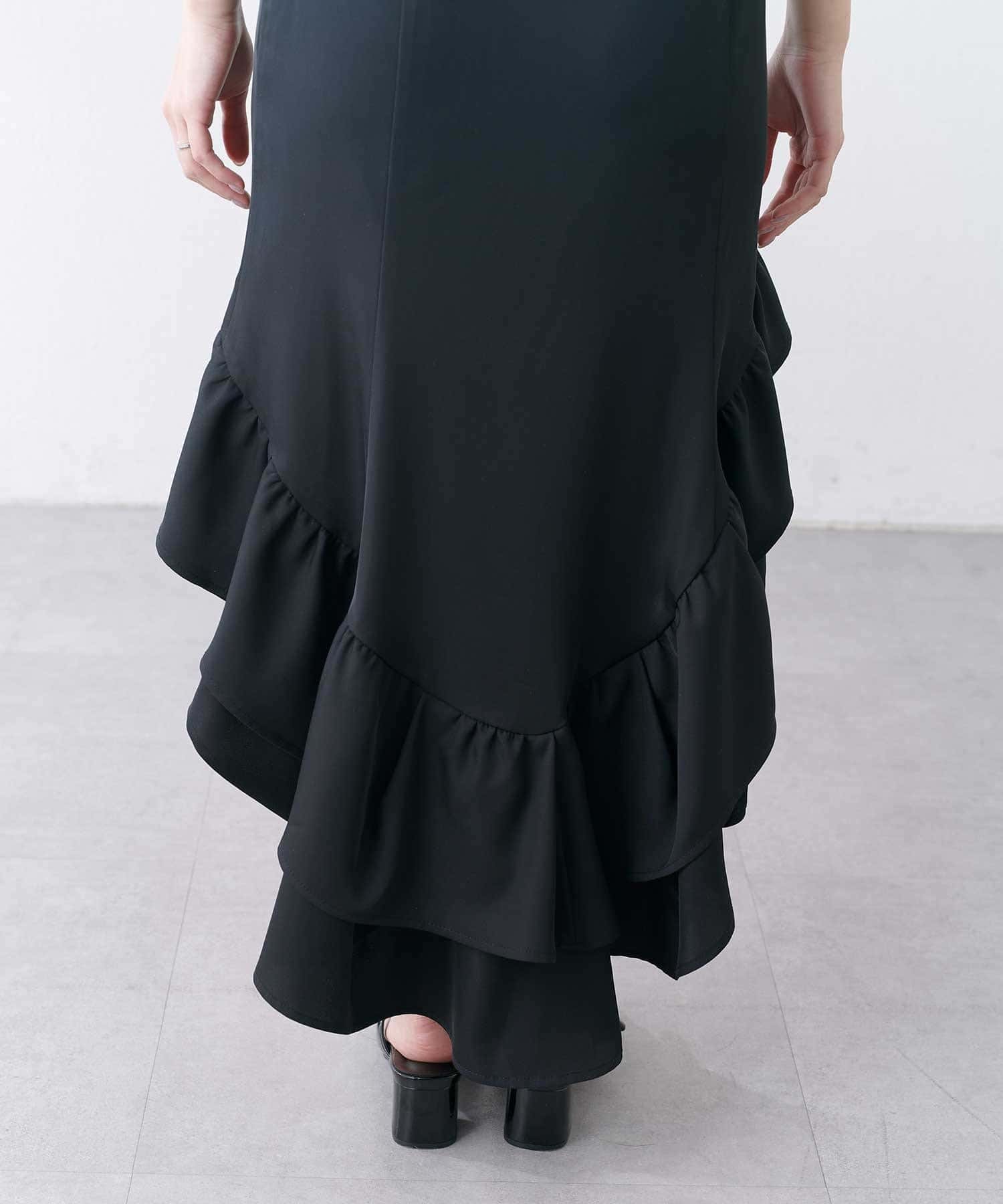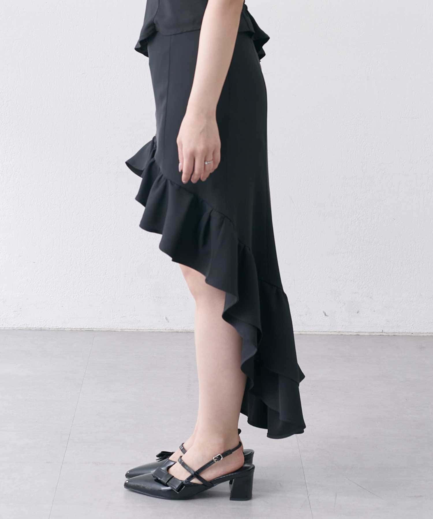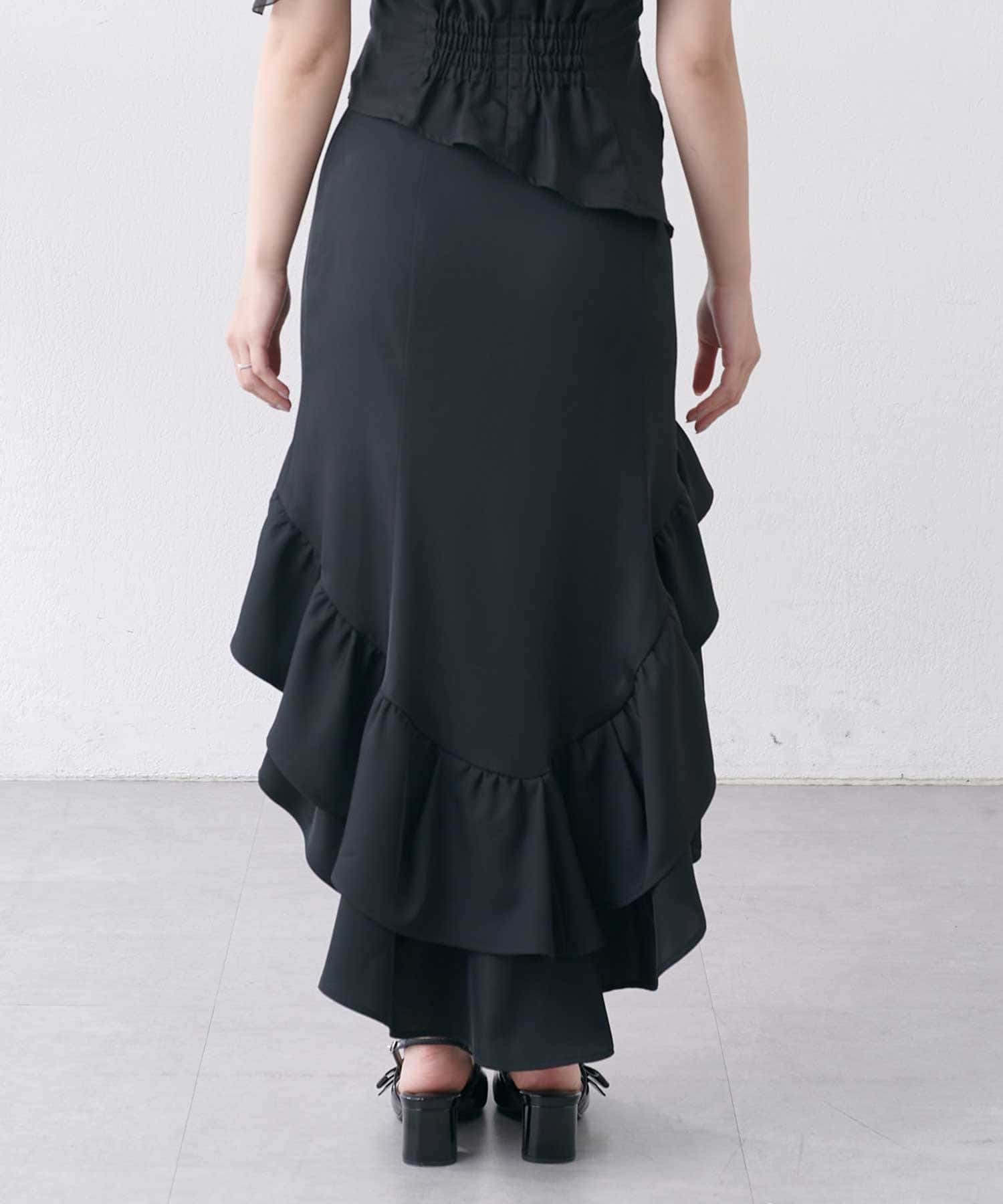 アシンメトリーなフリルが目を惹く、動きのあるデザインスカート。