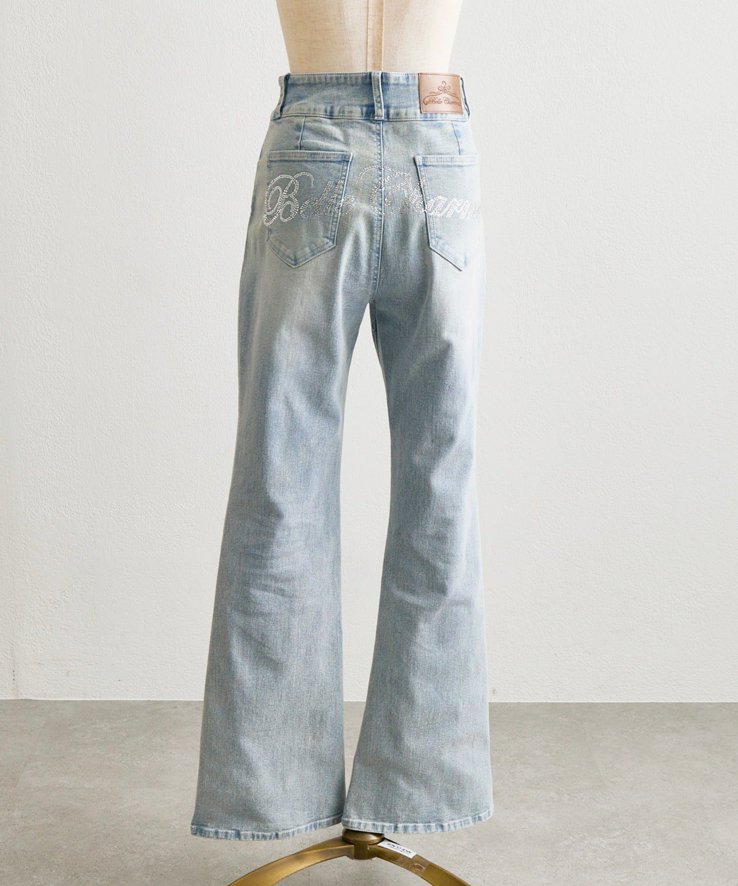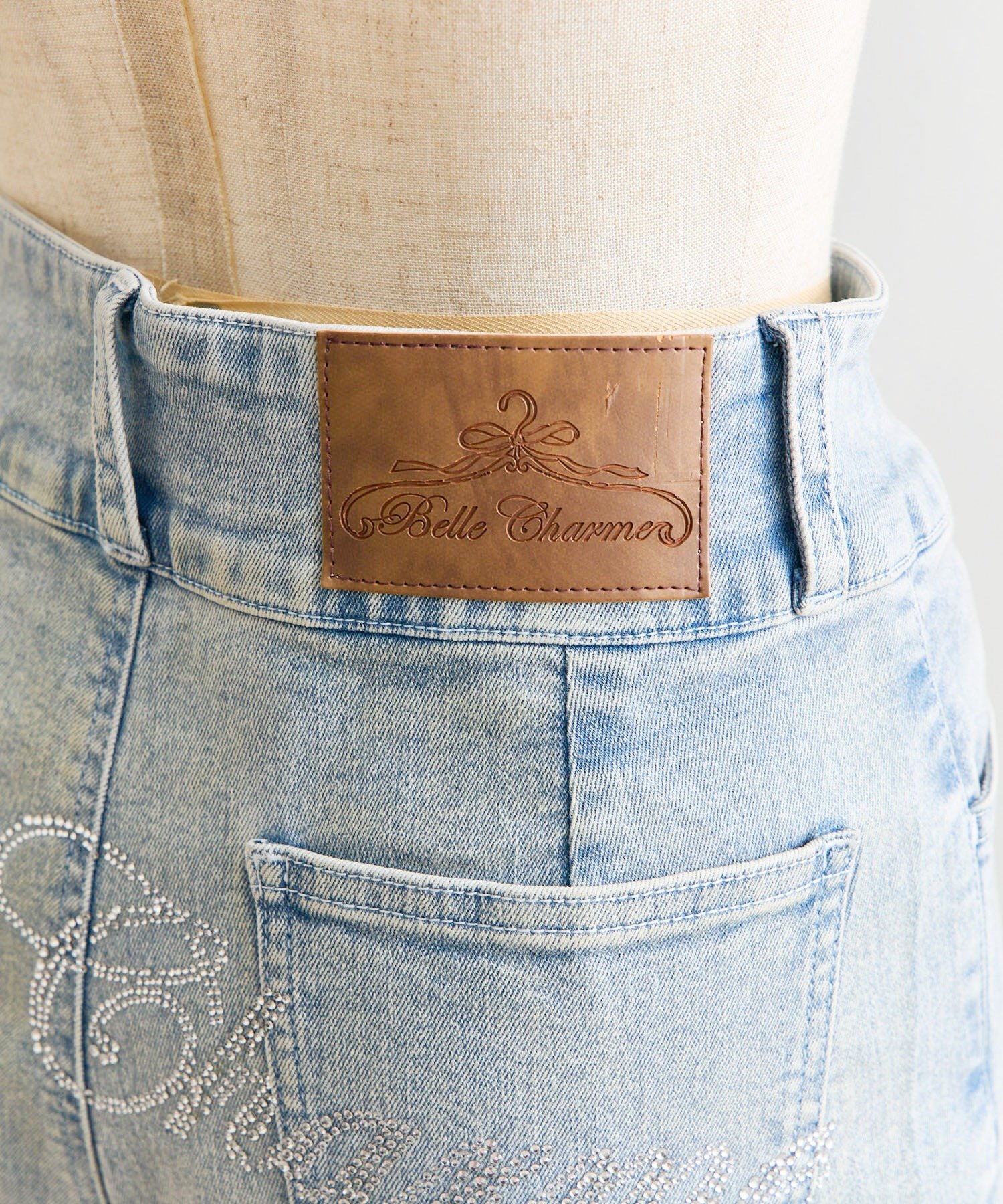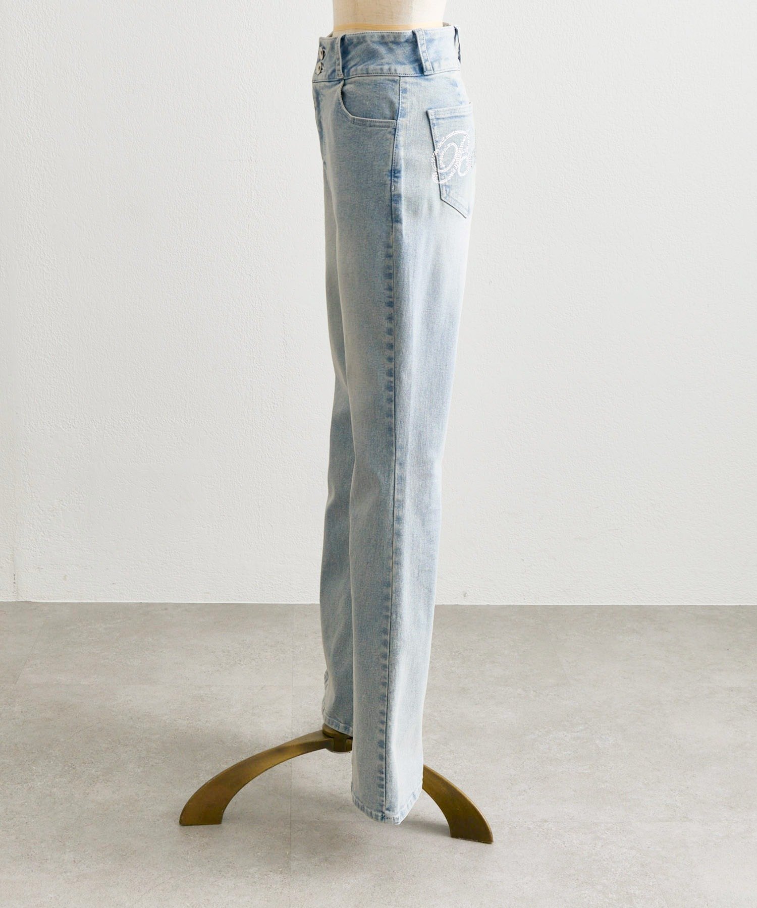 後ろ姿まで可愛い、ロゴ刺繍デニムパンツ。
