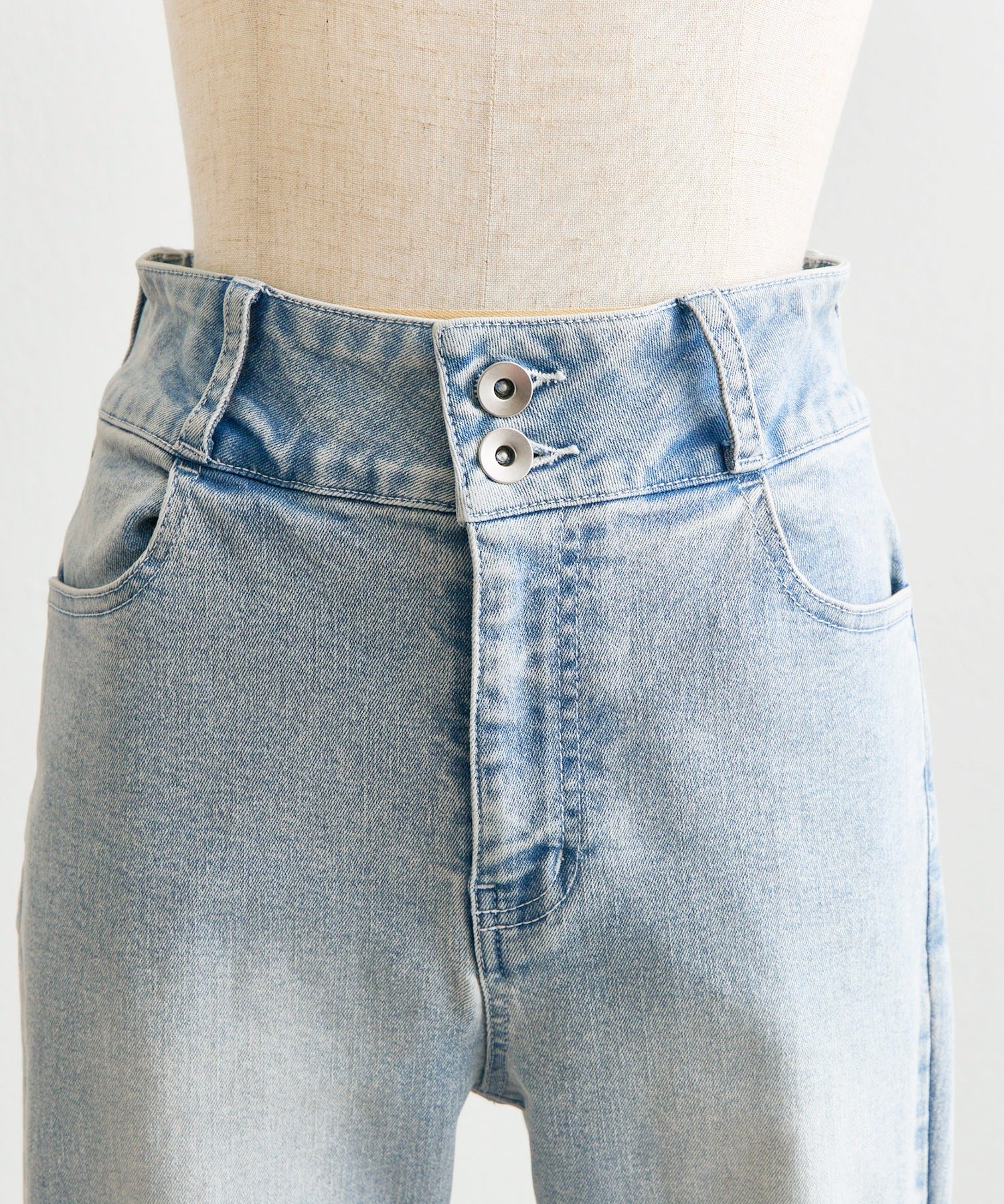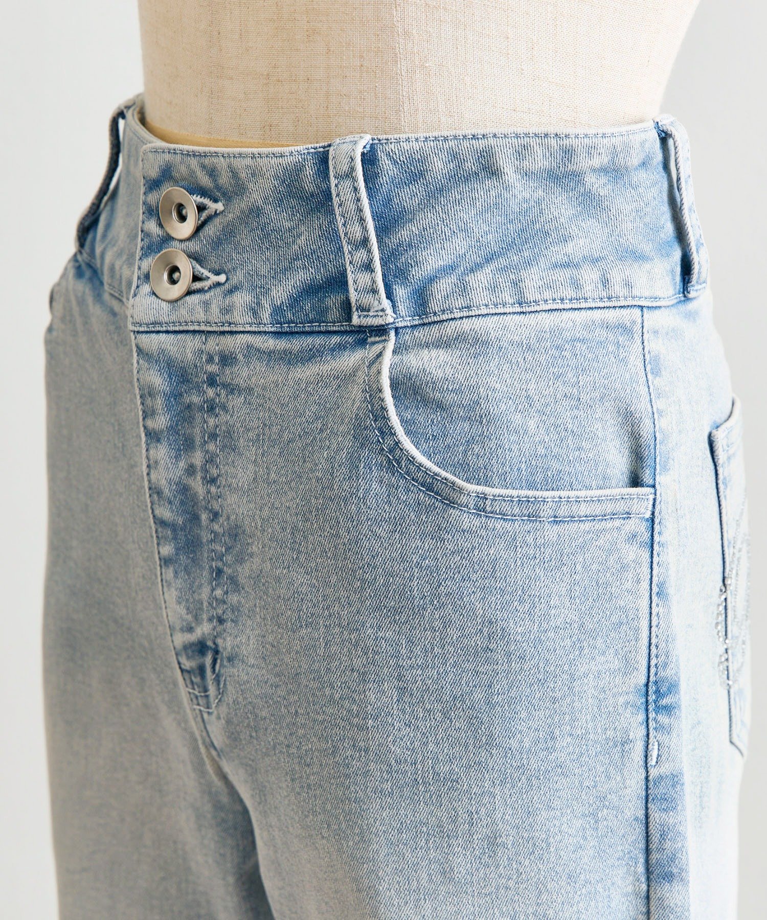 ・程よくフィットするストレートシルエットで脚をきれいに演出。