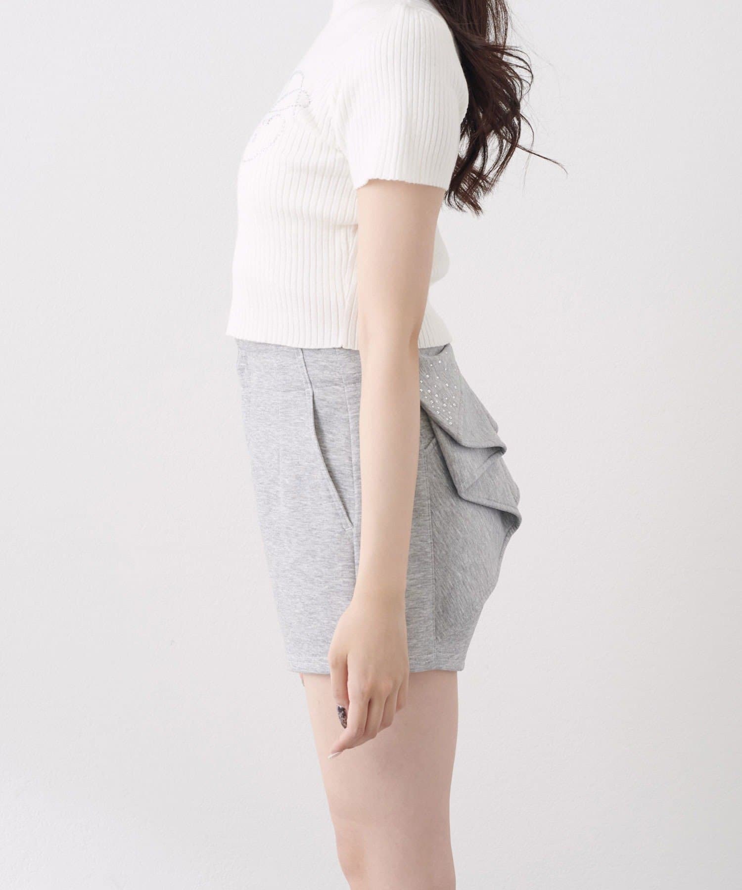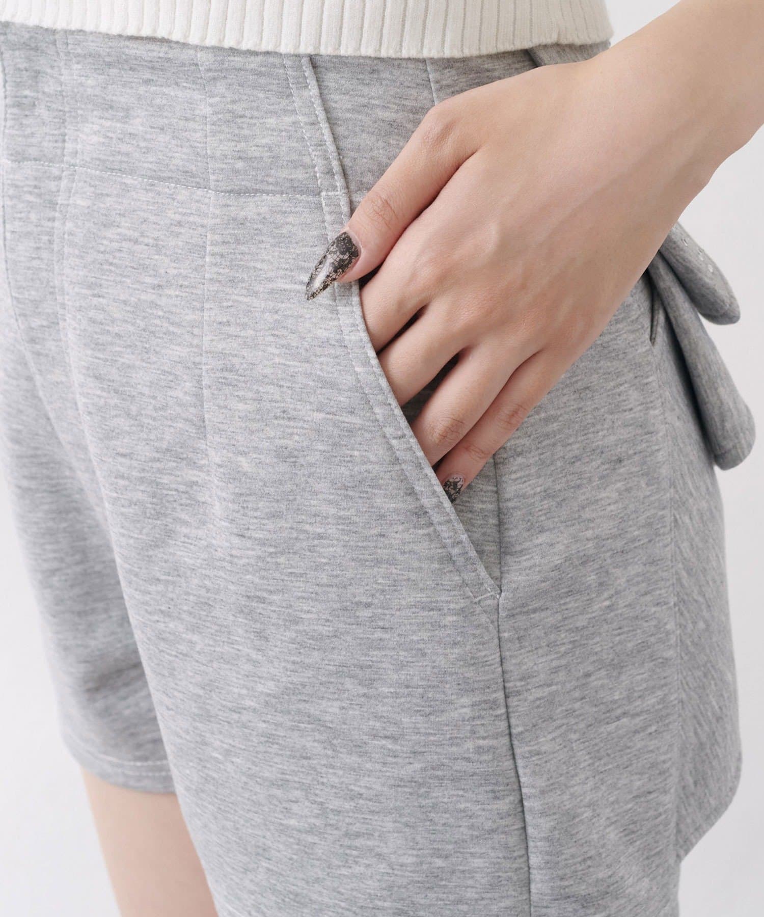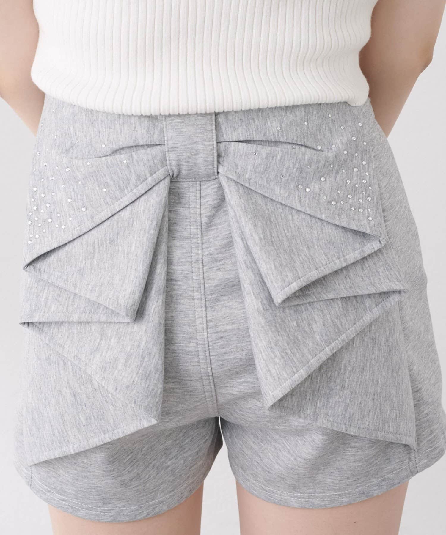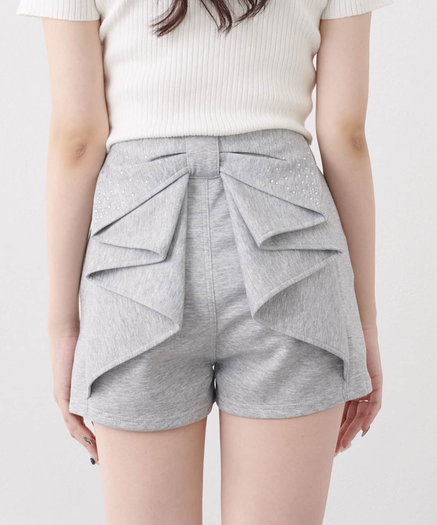 バックリボンが目を惹く、ガーリーなアクセントを添えるショートパンツ。