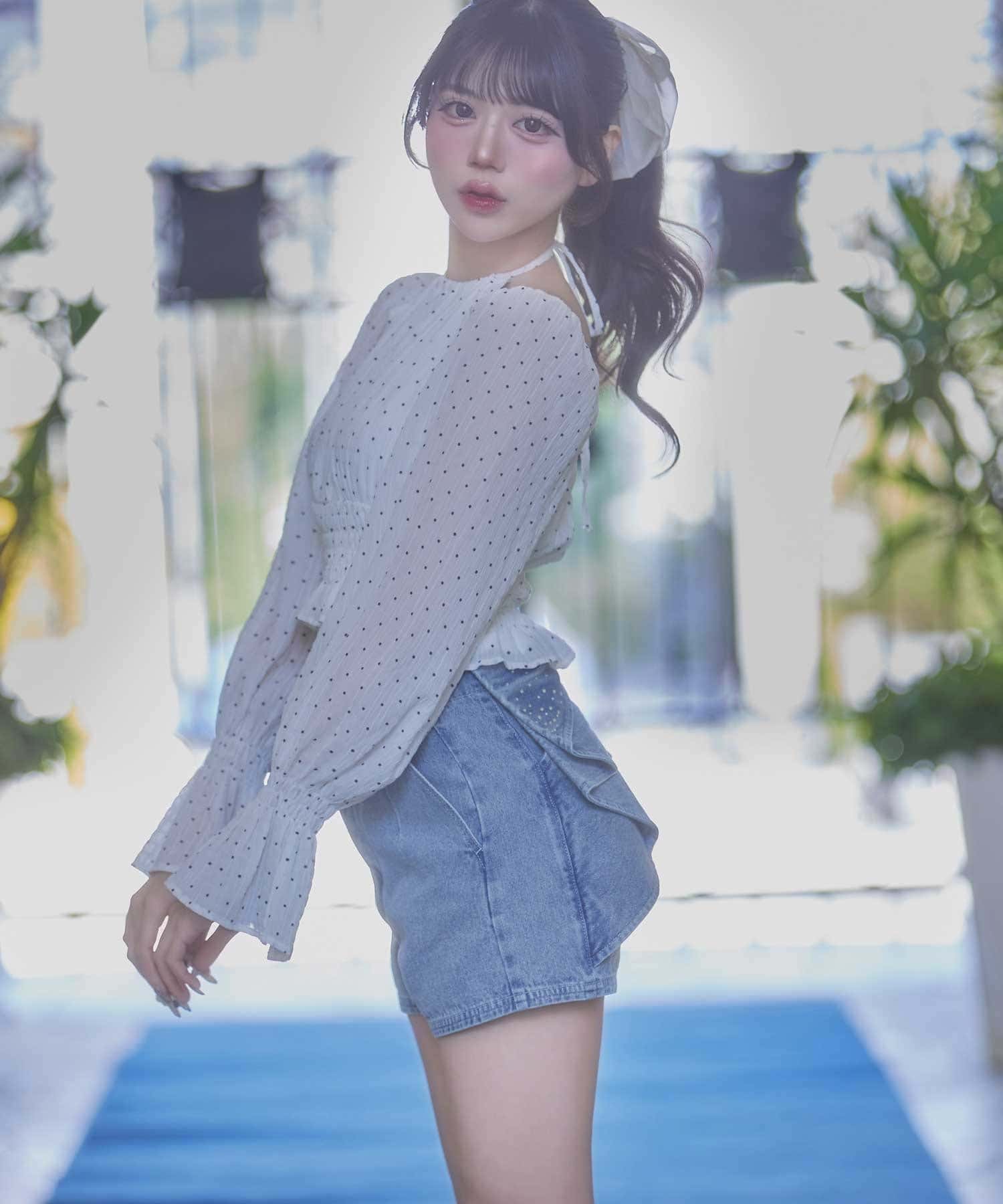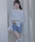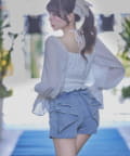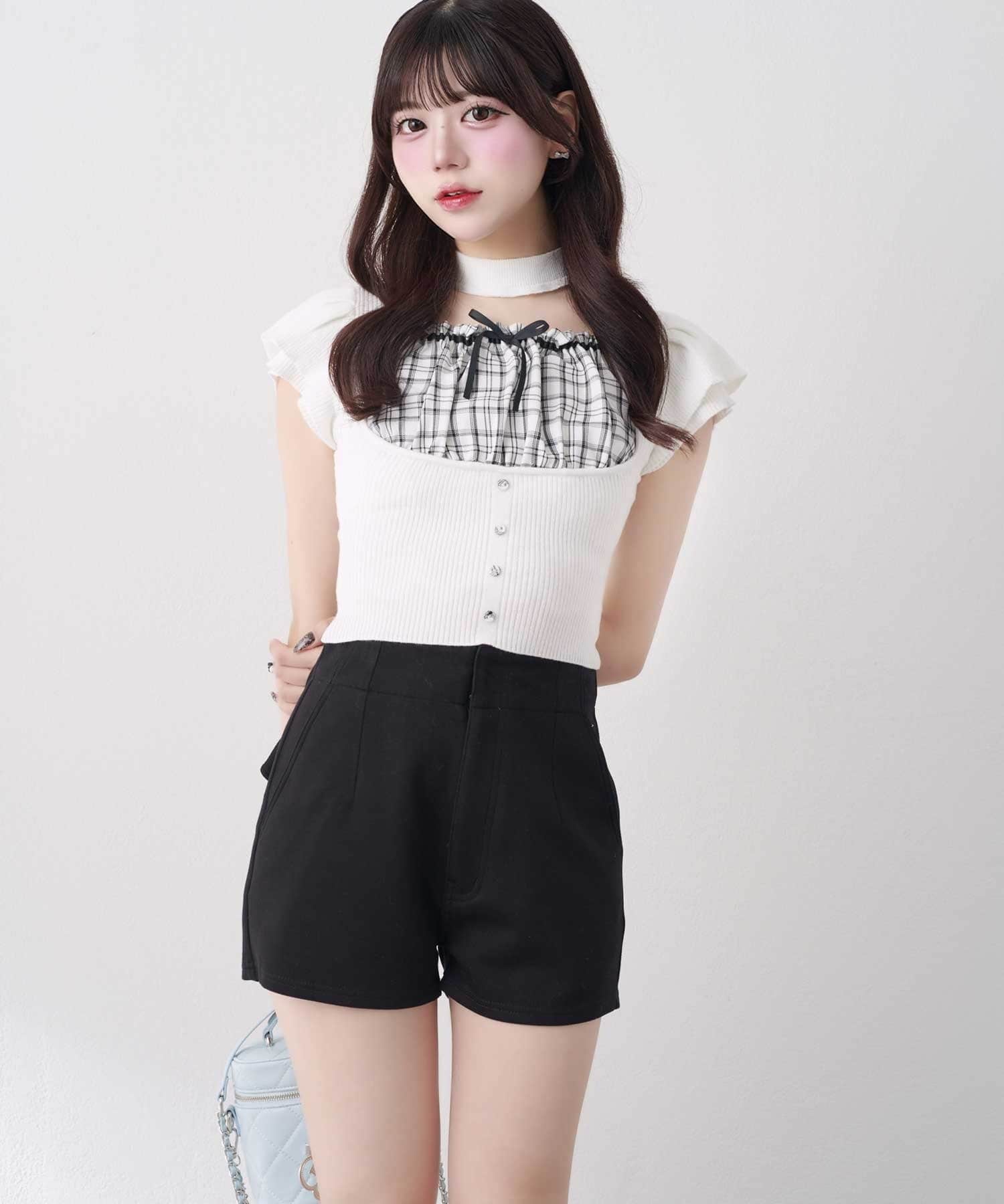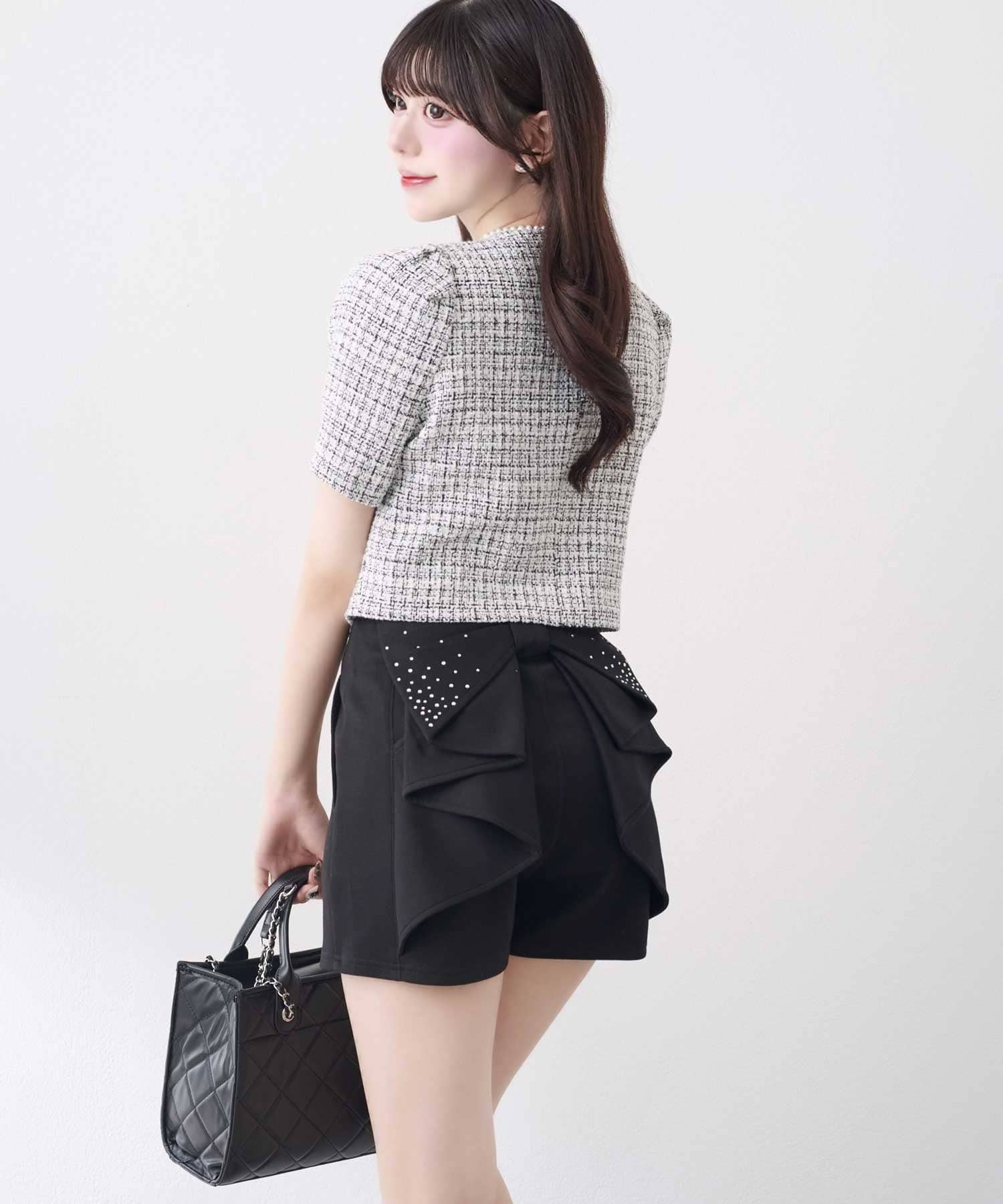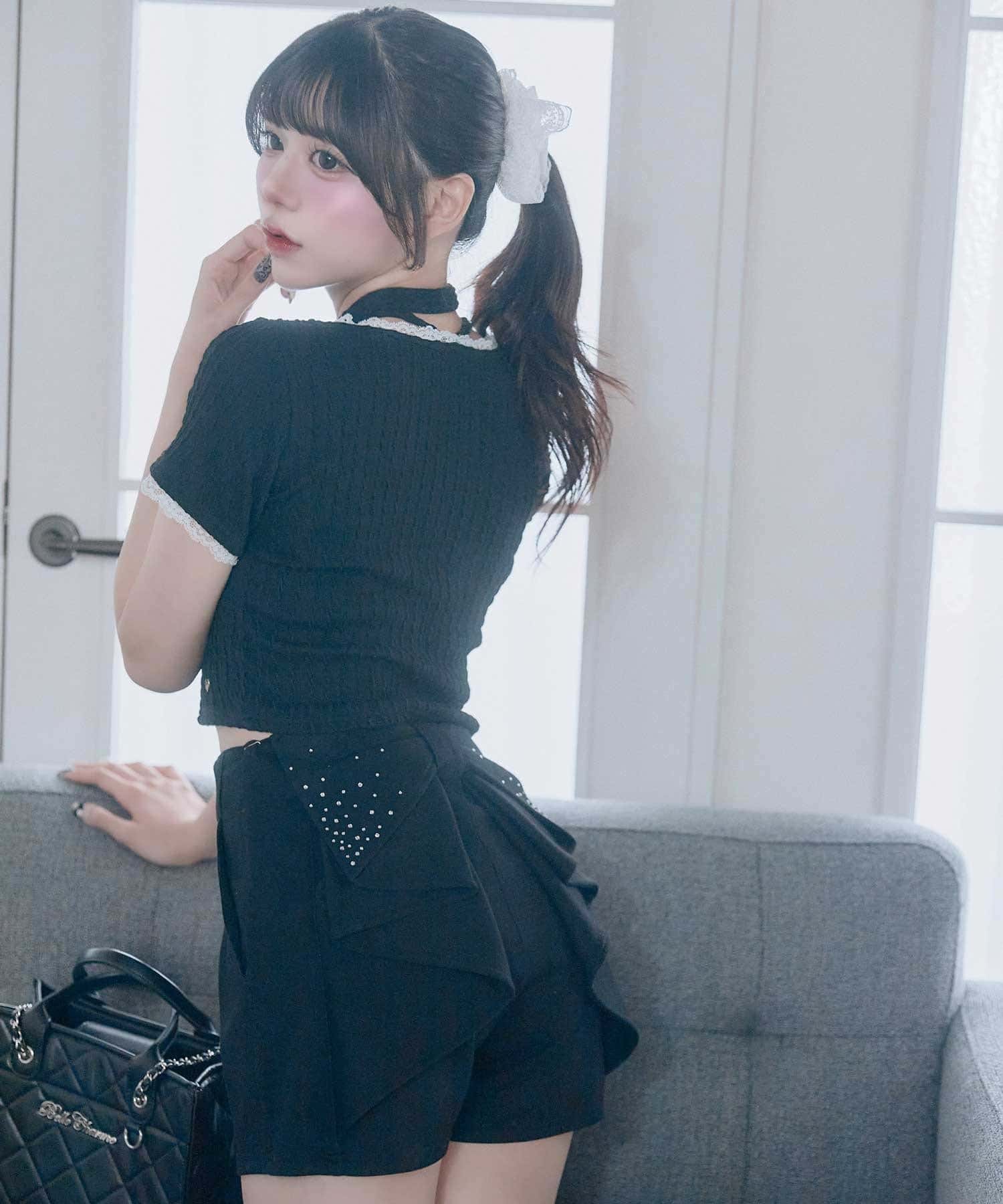 バックリボンが目を惹く、ガーリーなアクセントを添えるショートパンツ。