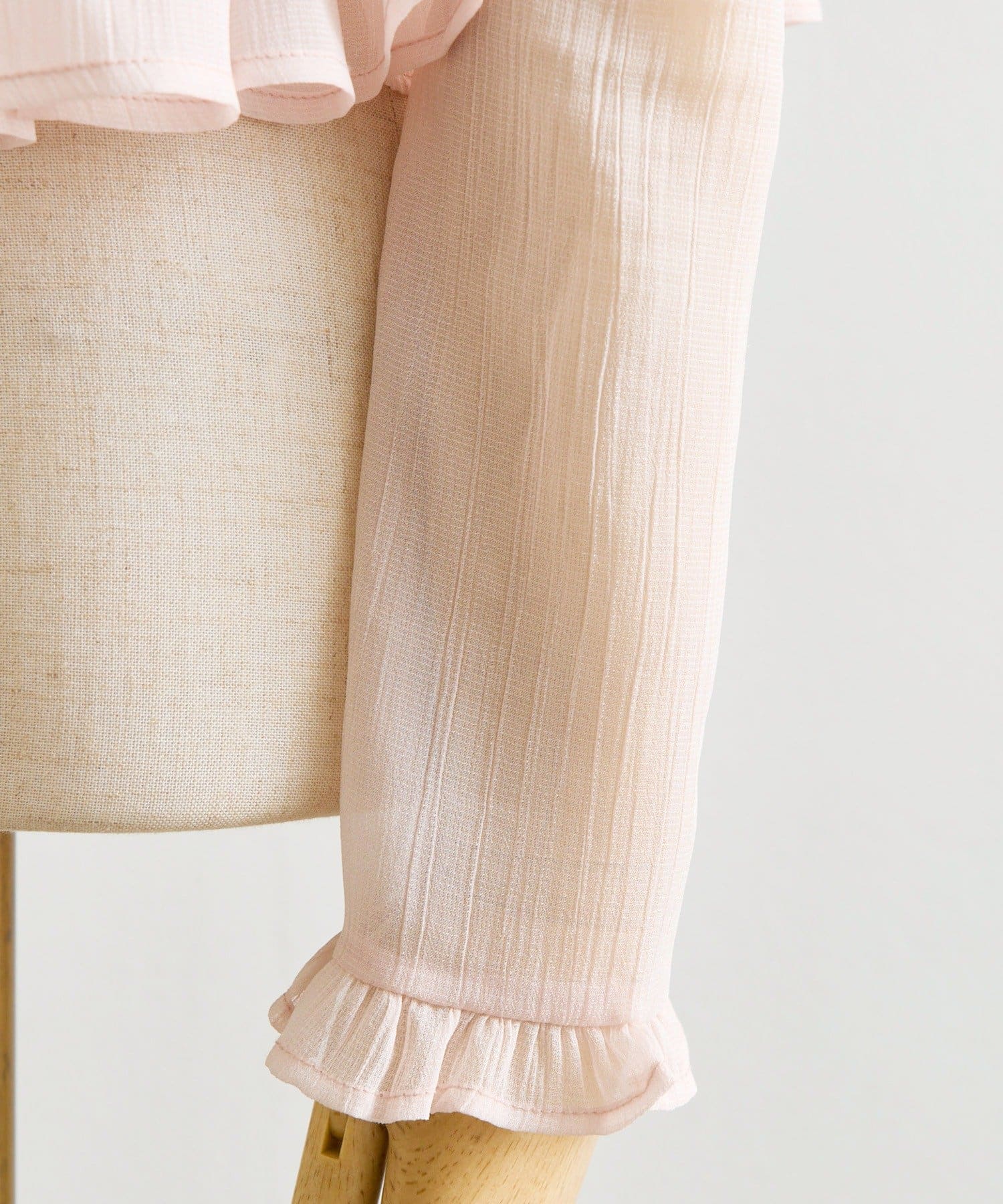 ・シアー素材×段フリルで軽やかさとフェミニンさを両立。