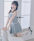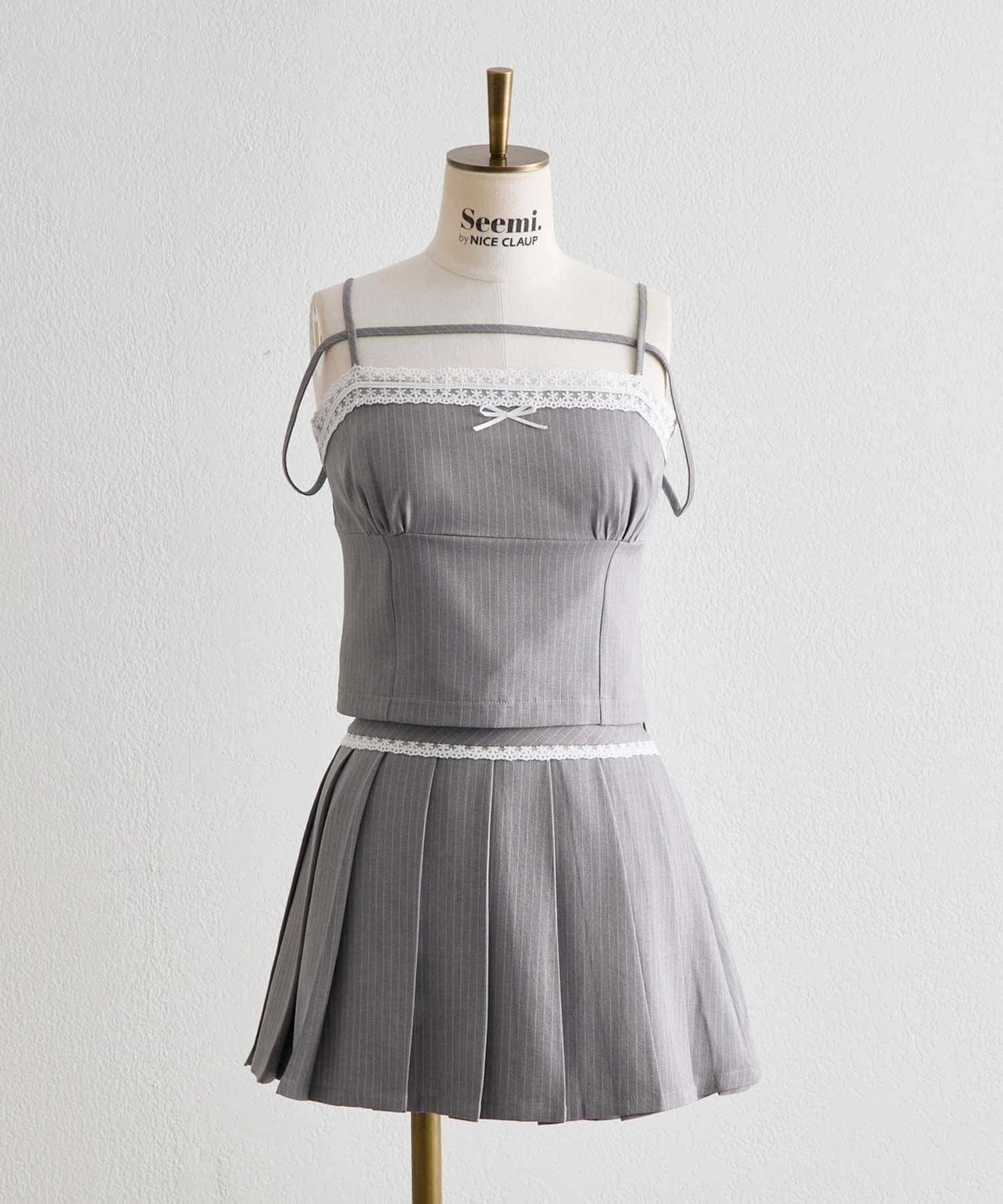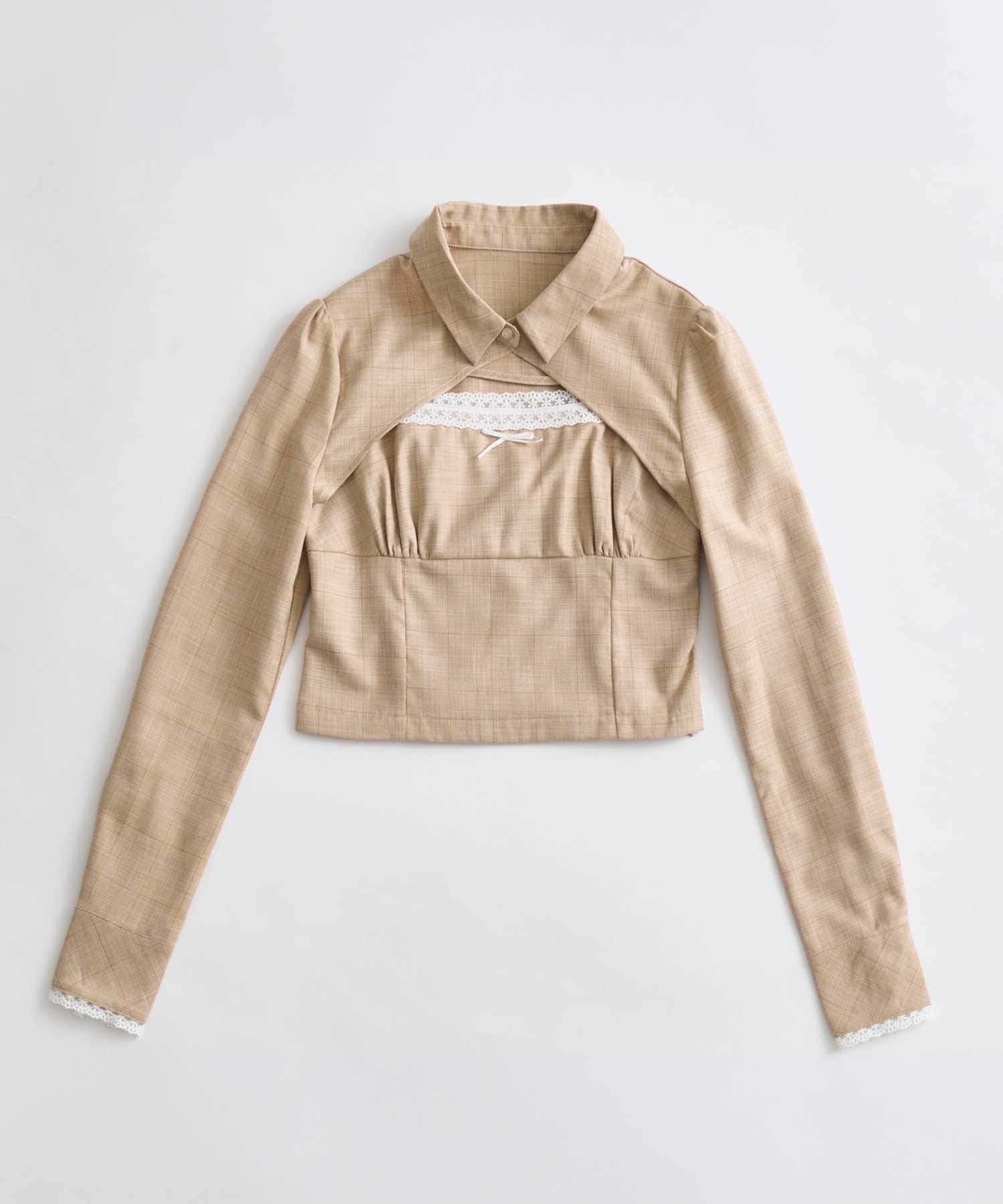 シャツとキャミビスチェを組み合わせた、大人ガーリーなセットトップス。