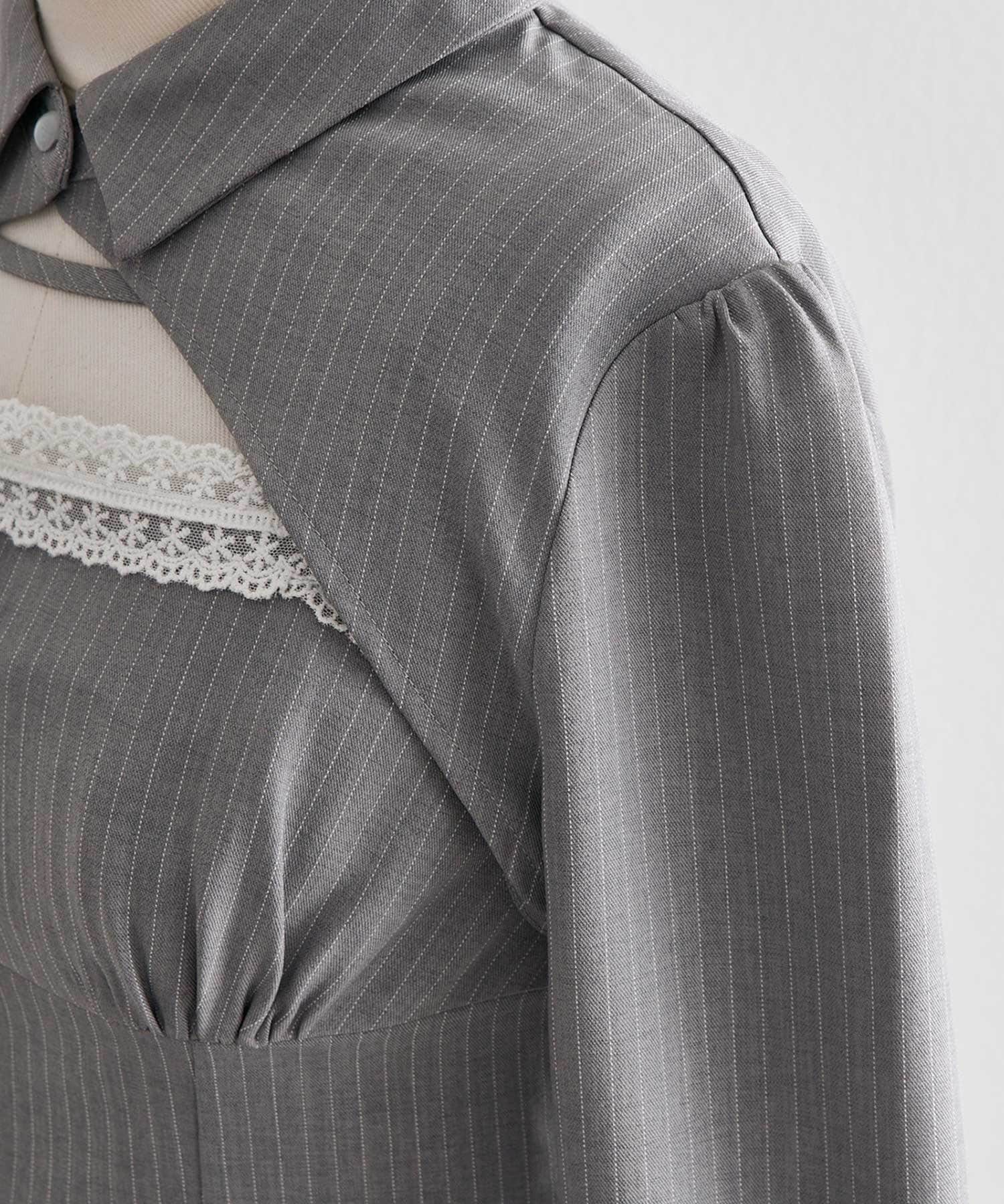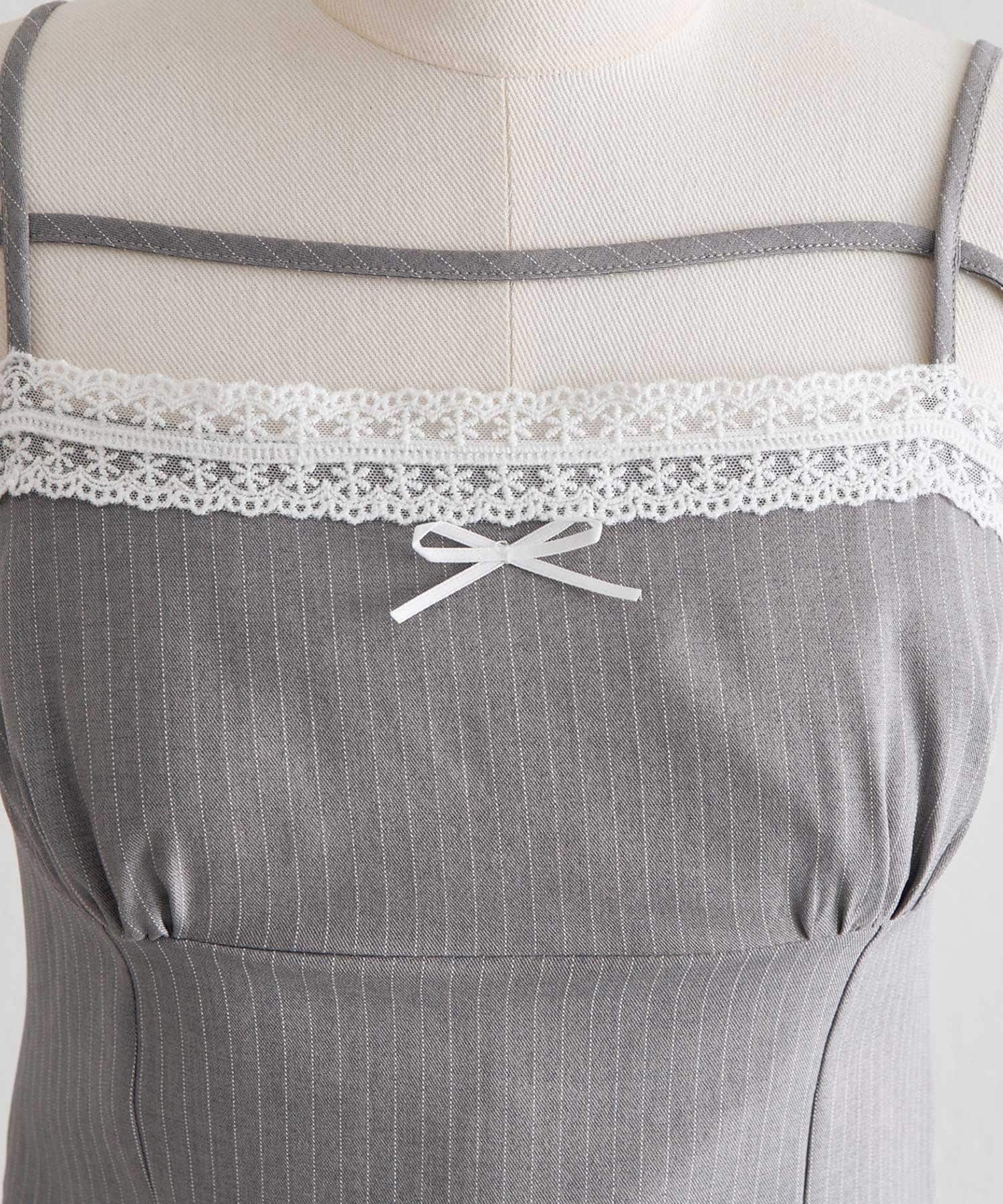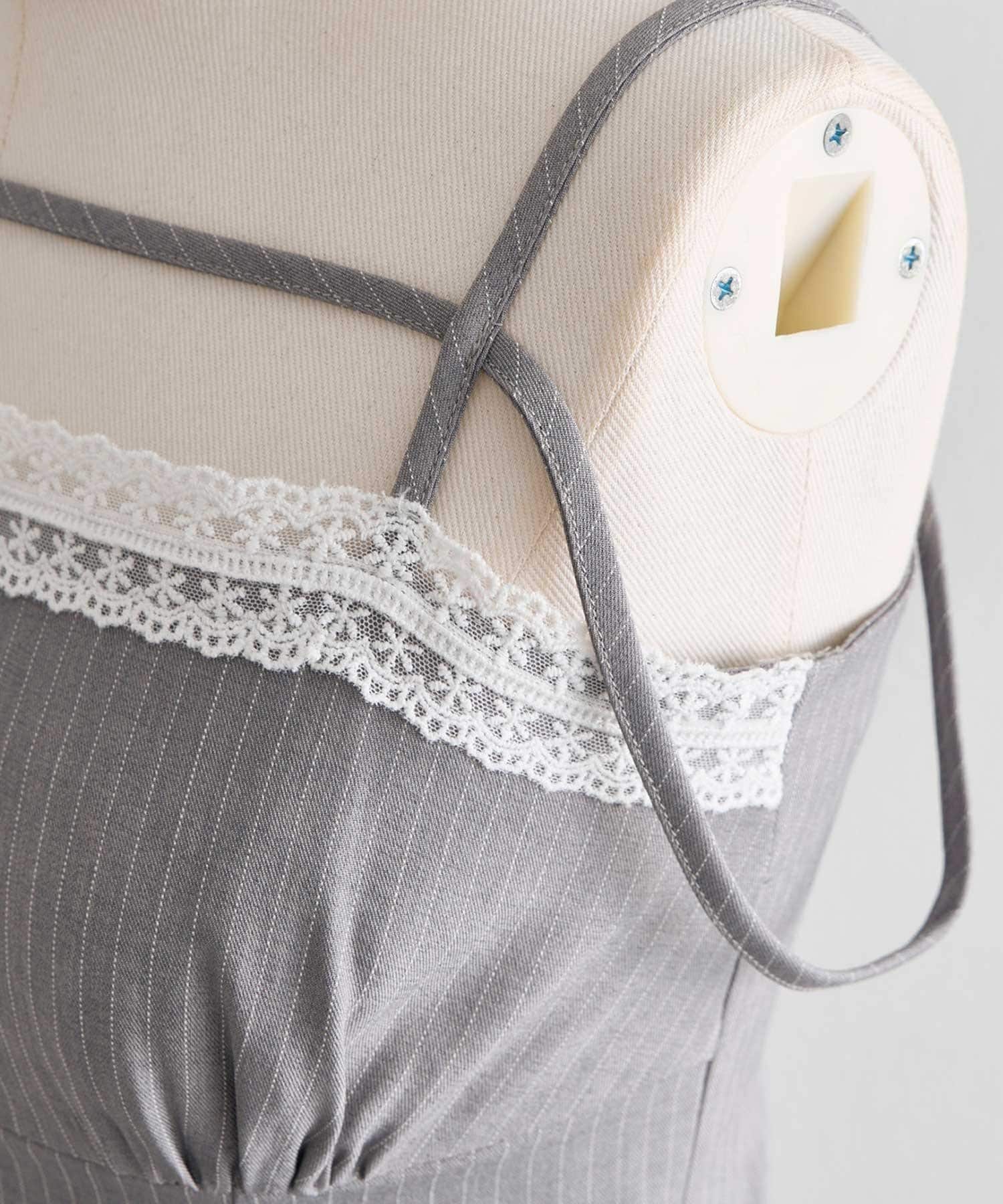 ・胸元の繊細なレースが、控えめな甘さで大人ガーリーな印象を演出。