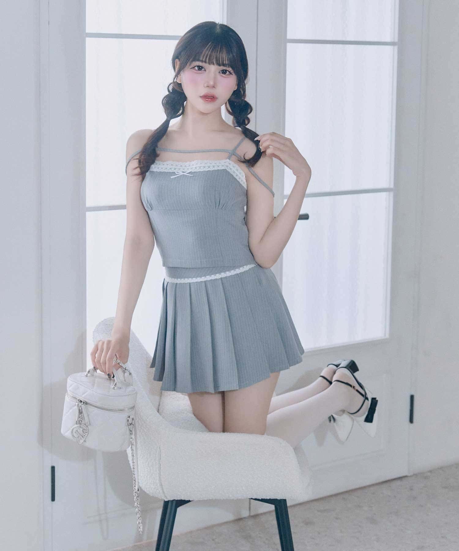 ・Lace Pleats Mini Skirt(品番:1161010050)と合わせれば、統一感のある大人ガーリーコーデに。
