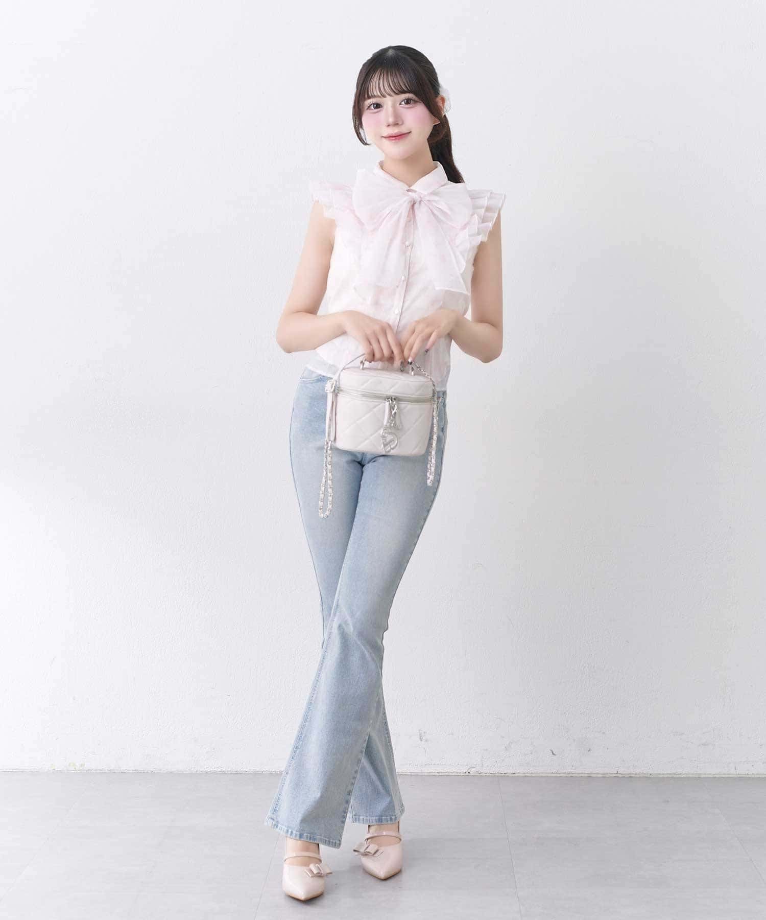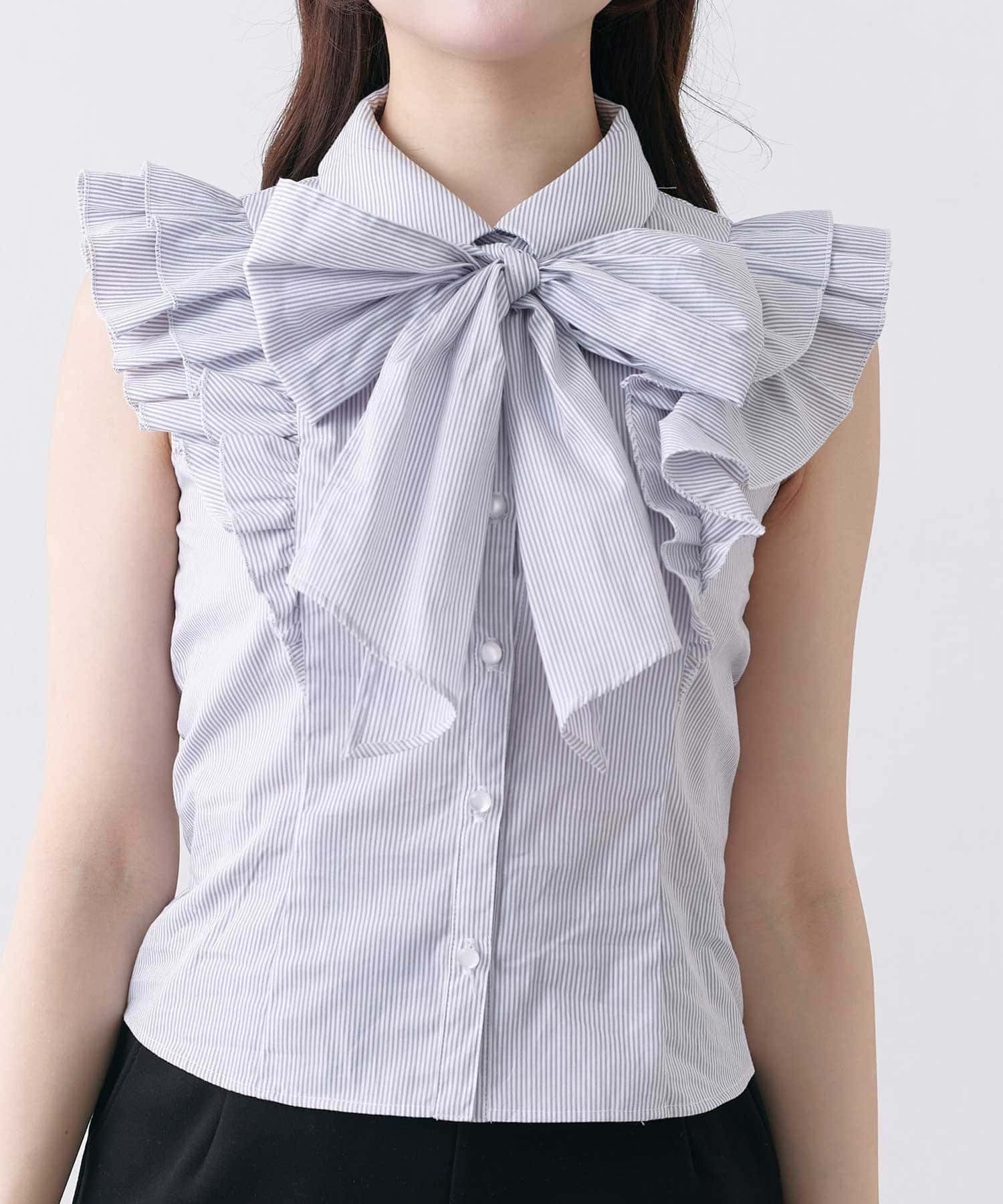 大きめリボンとフリルディテールが目を惹く、フェミニンムード漂うブラウス。