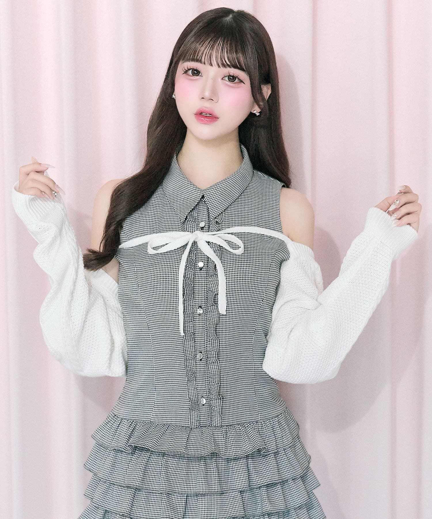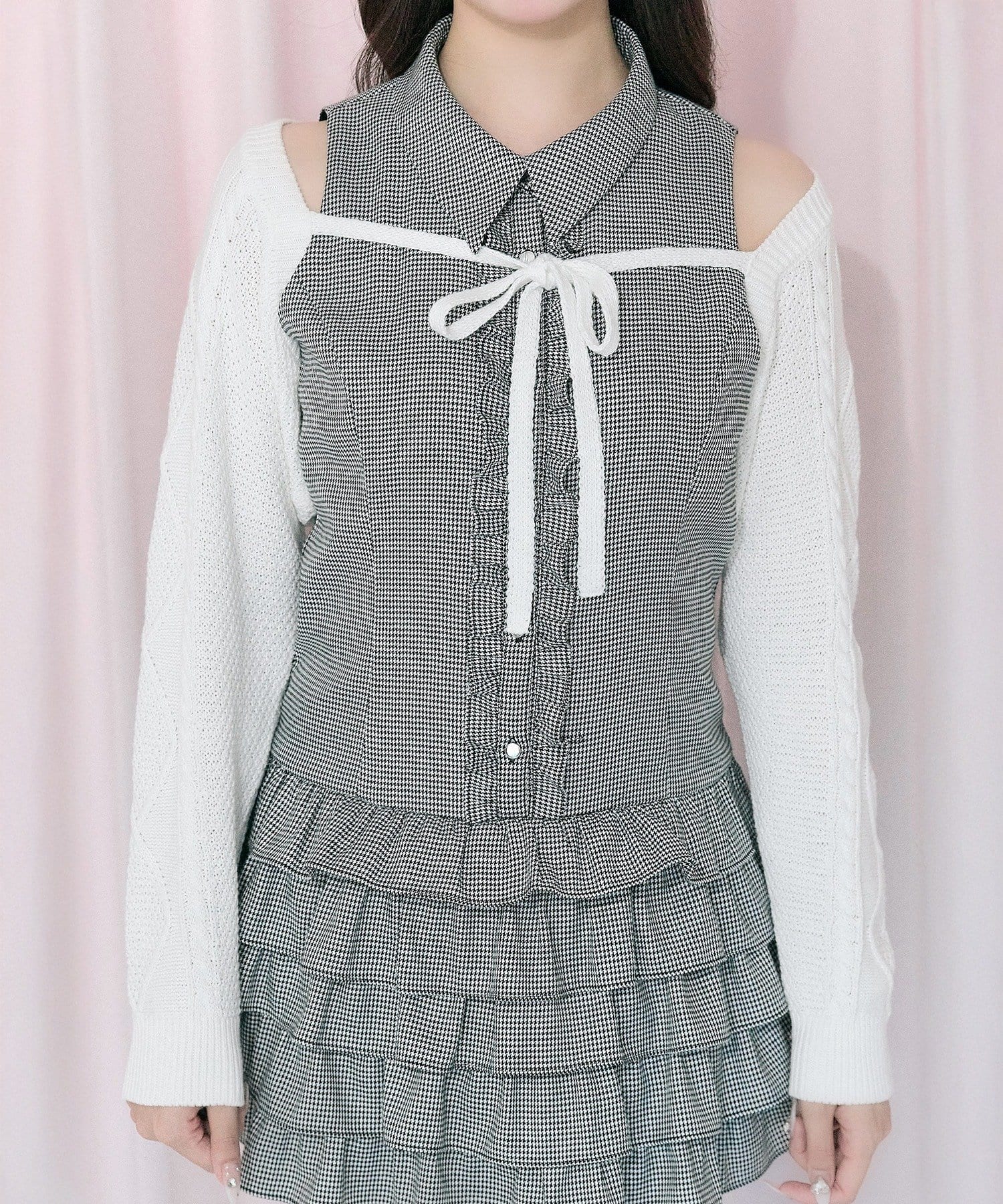 羽織るだけでこなれ感、リボンが効いたレイヤードボレロ。