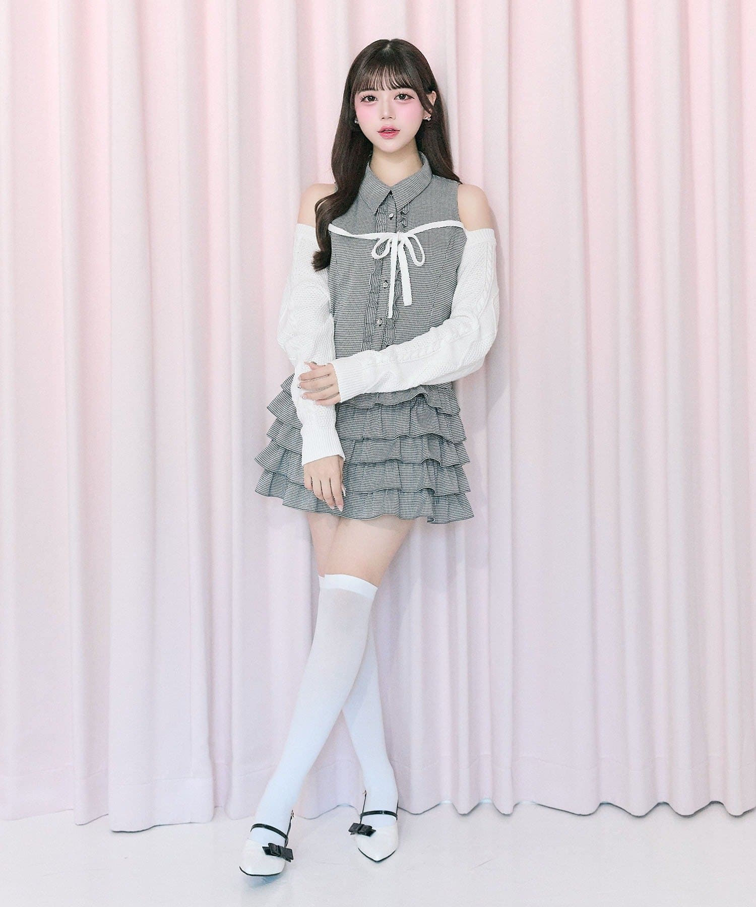 ・Nosleeve Frill Onepiece (品番:1161090020)と合わせてセットアップ風に着るのがおすすめ。