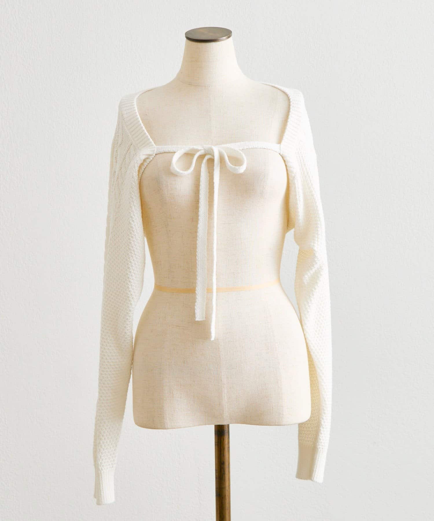 羽織るだけでこなれ感、リボンが効いたレイヤードボレロ。