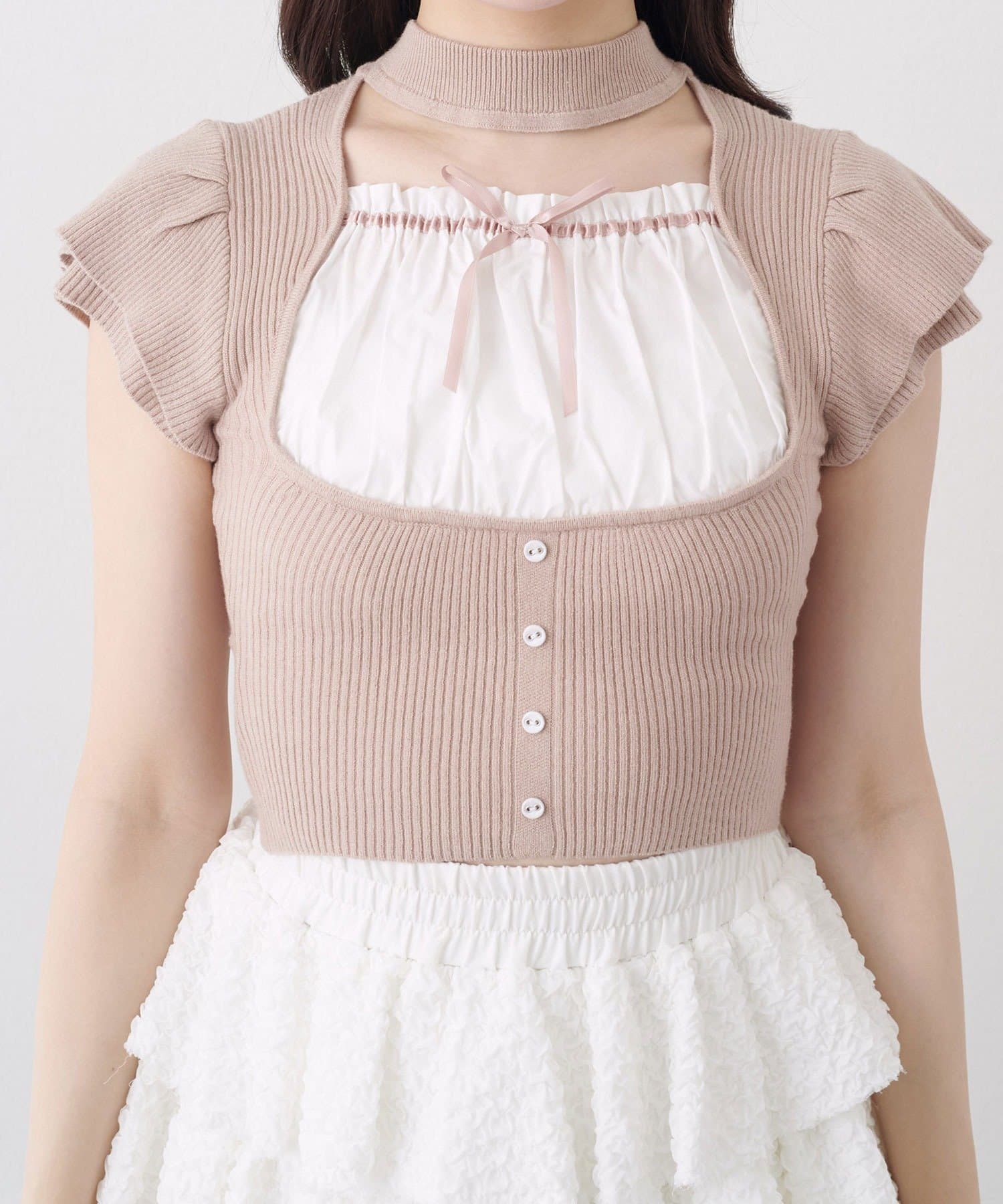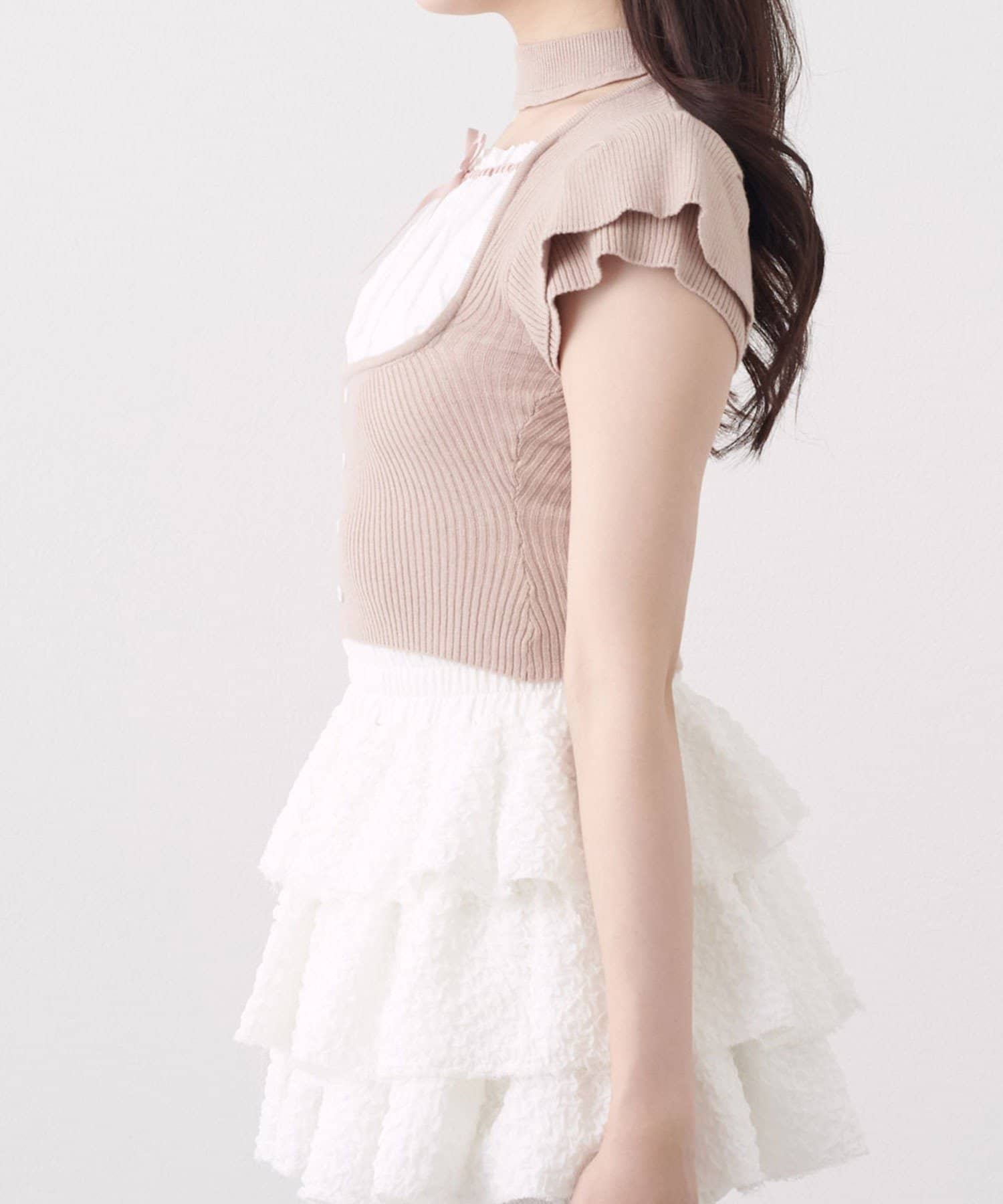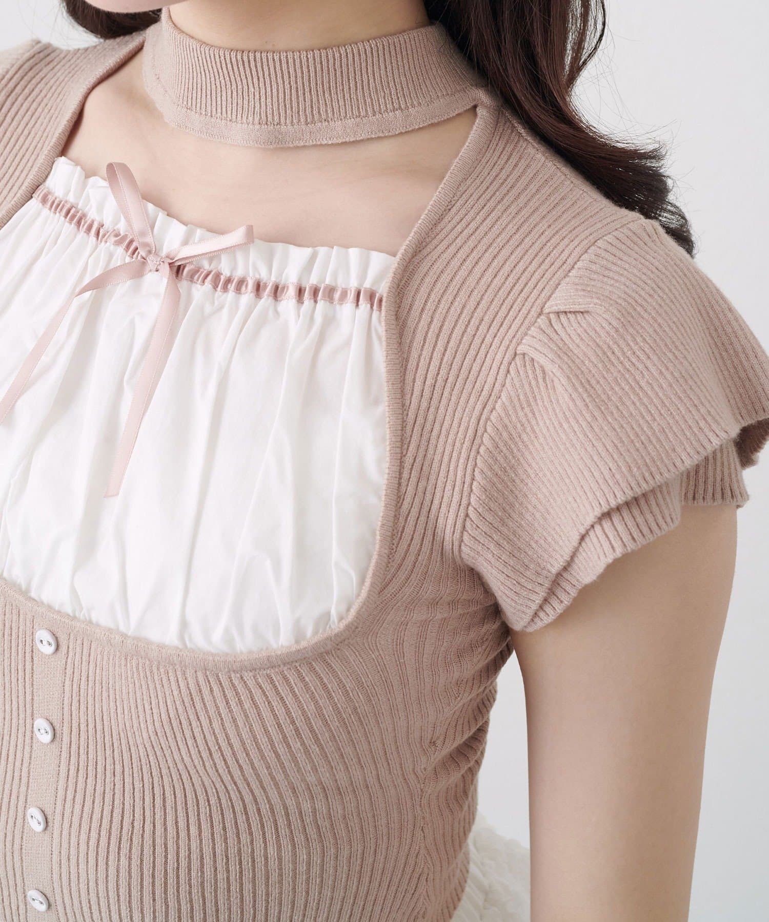 Belle Charme(ベルシャルム) Frill Sleeves Choker Rib Knit