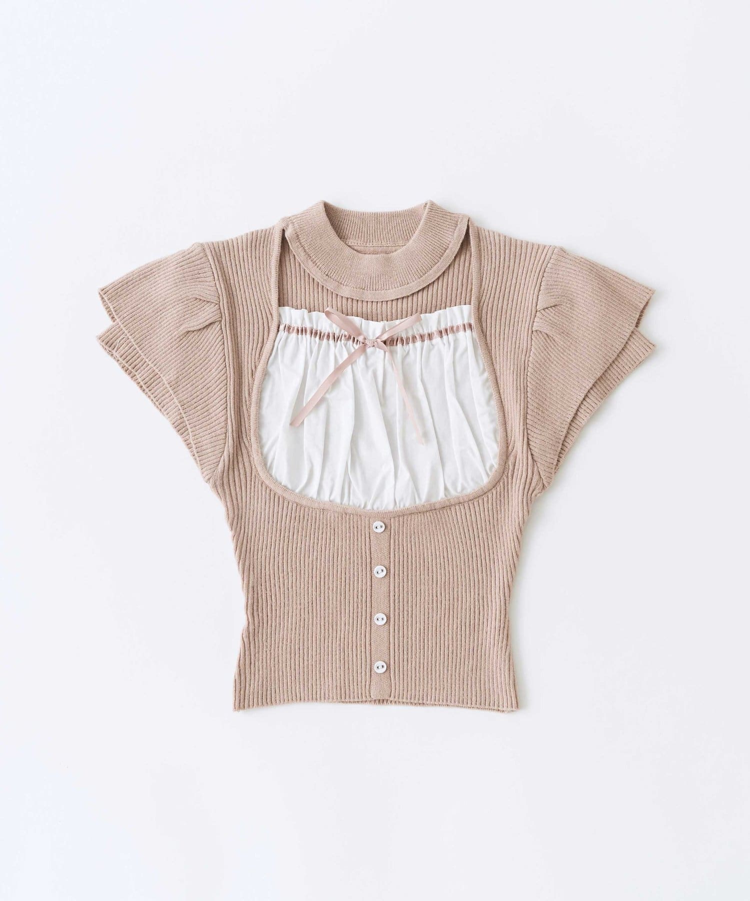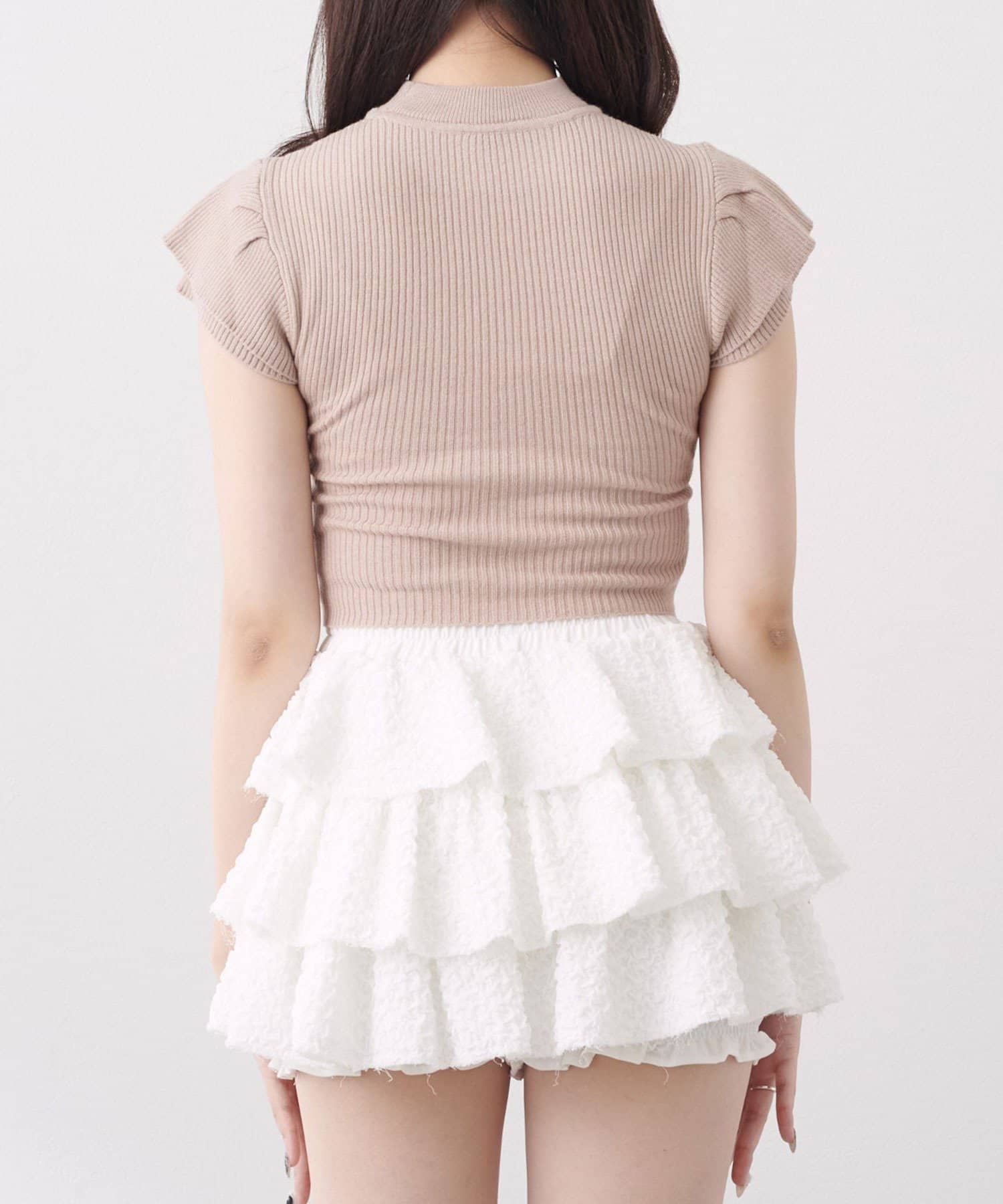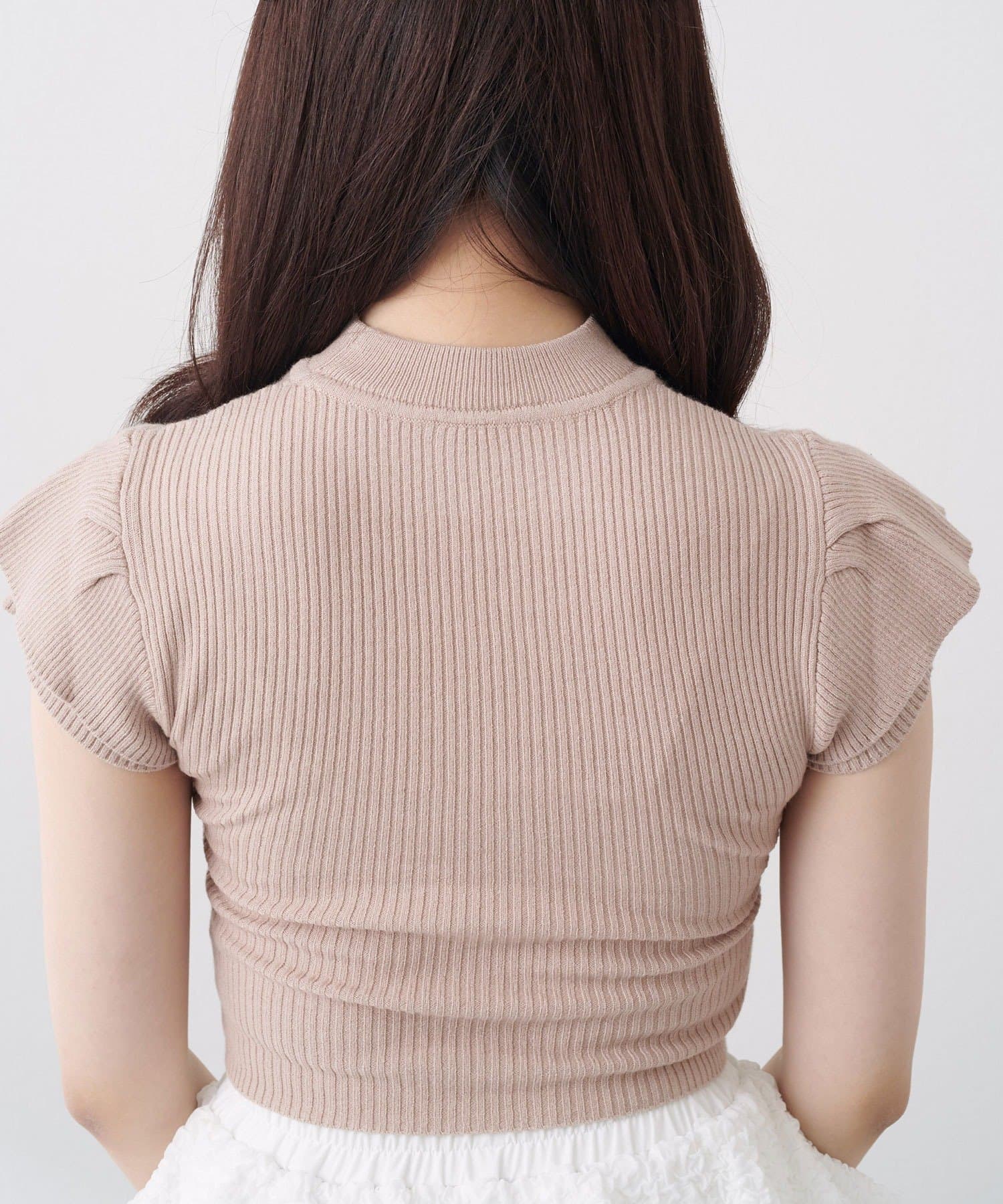 Belle Charme(ベルシャルム) Frill Sleeves Choker Rib Knit