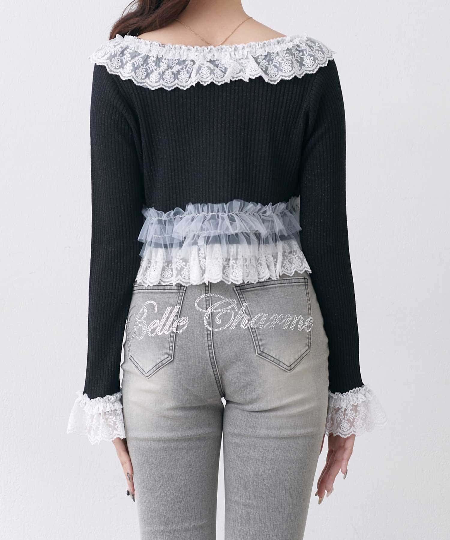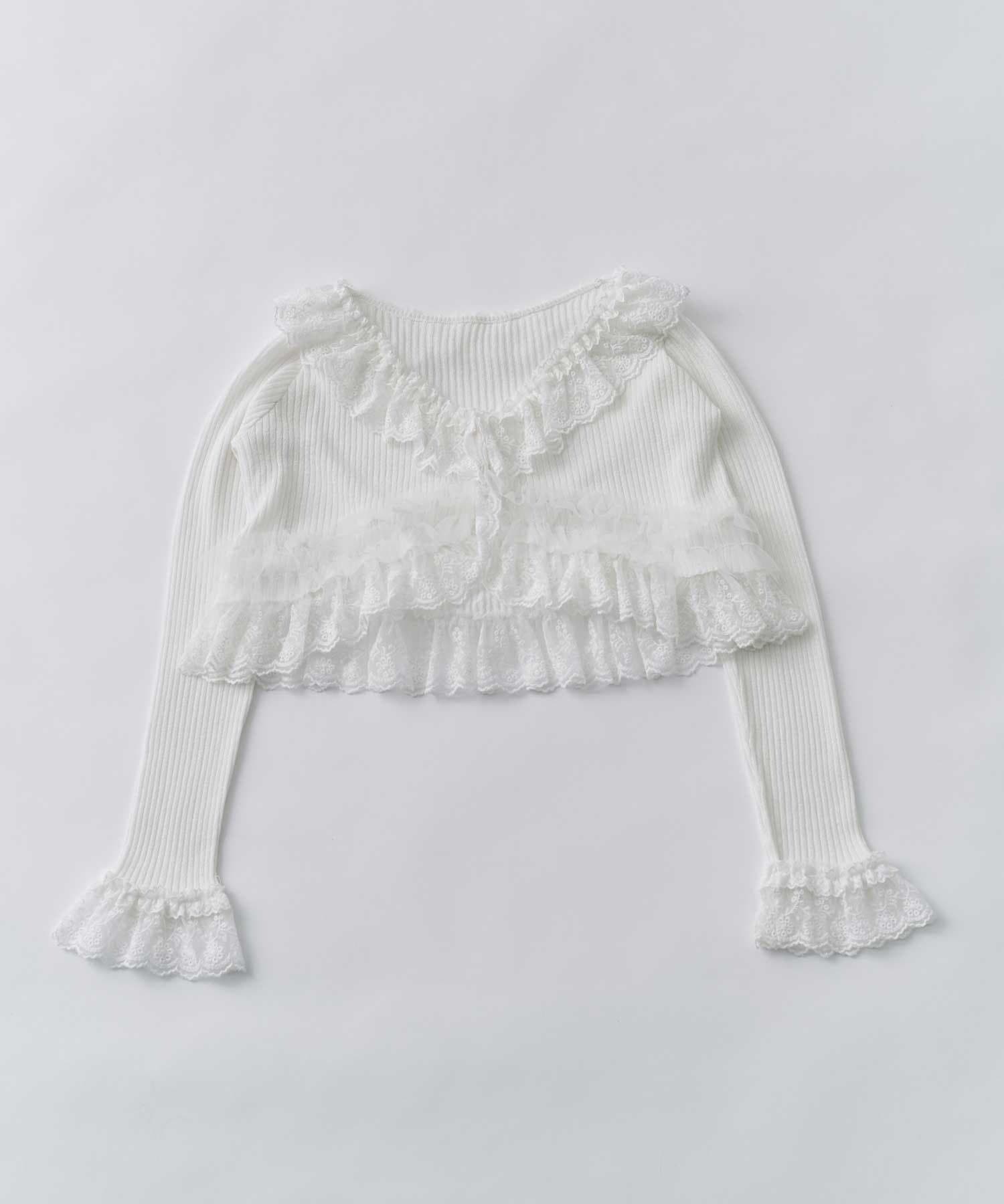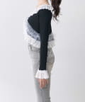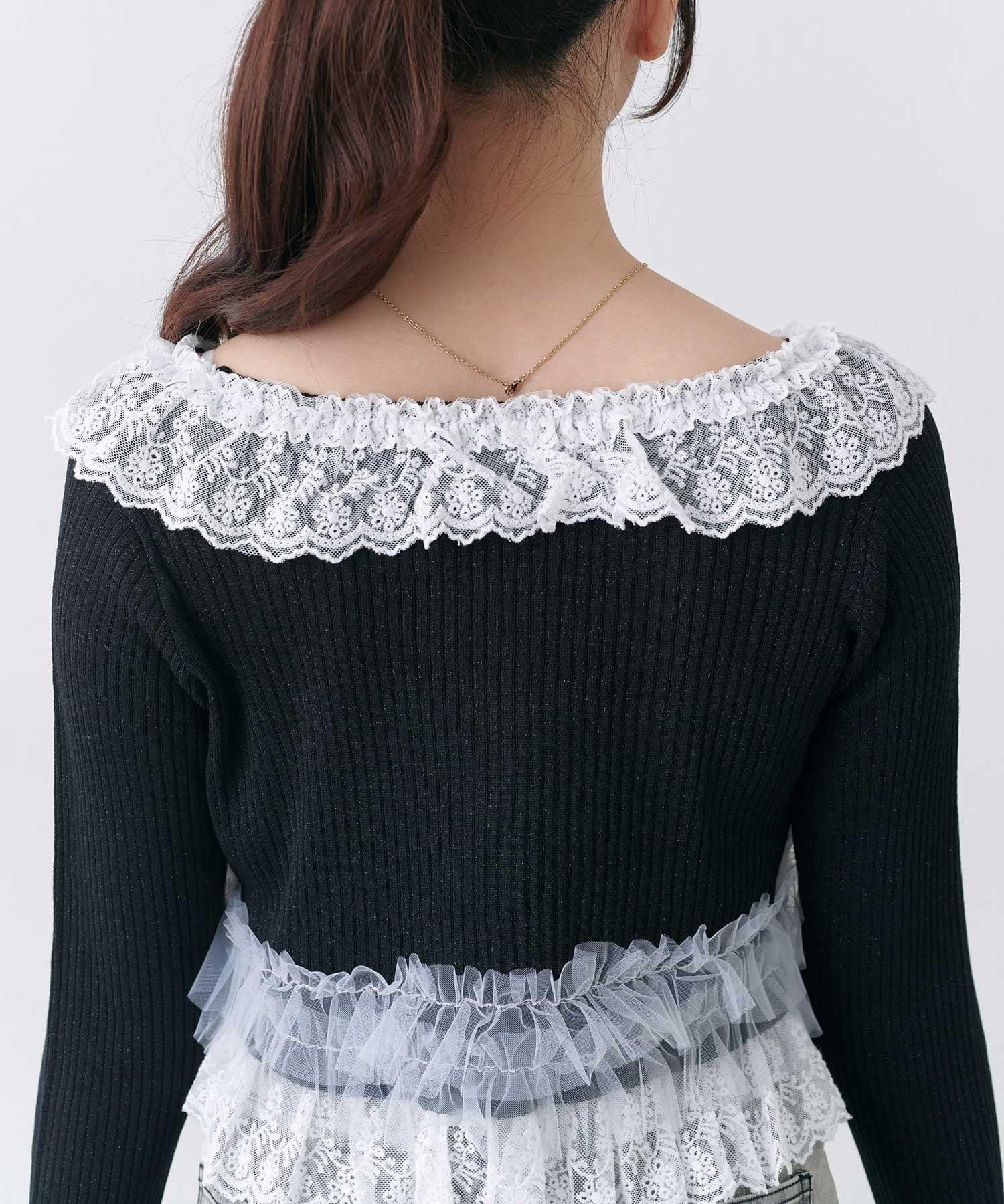 さりげないラメと華やかなフリルの、フェミニンカーディガン。