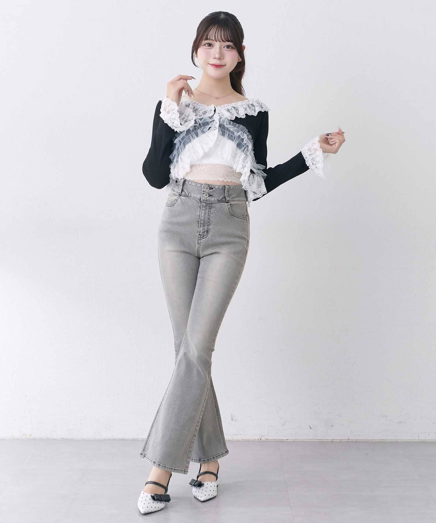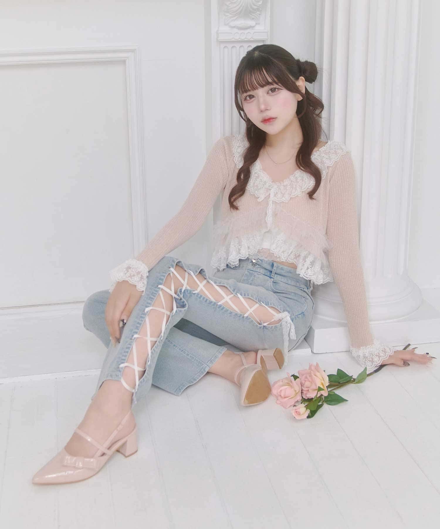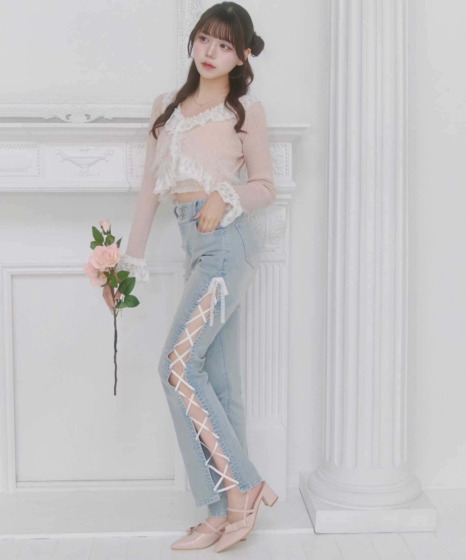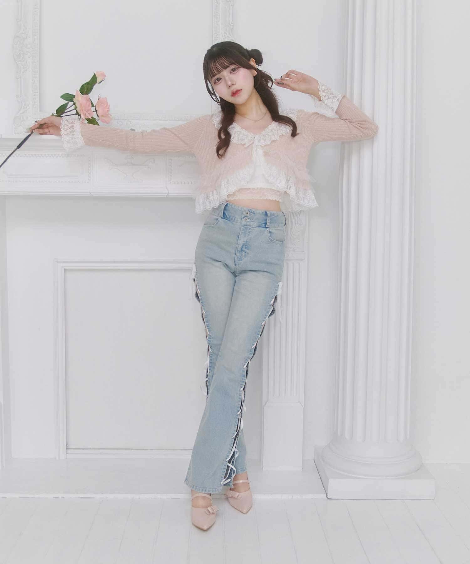 ・デニム合わせで甘さを抑えた着こなしも◎