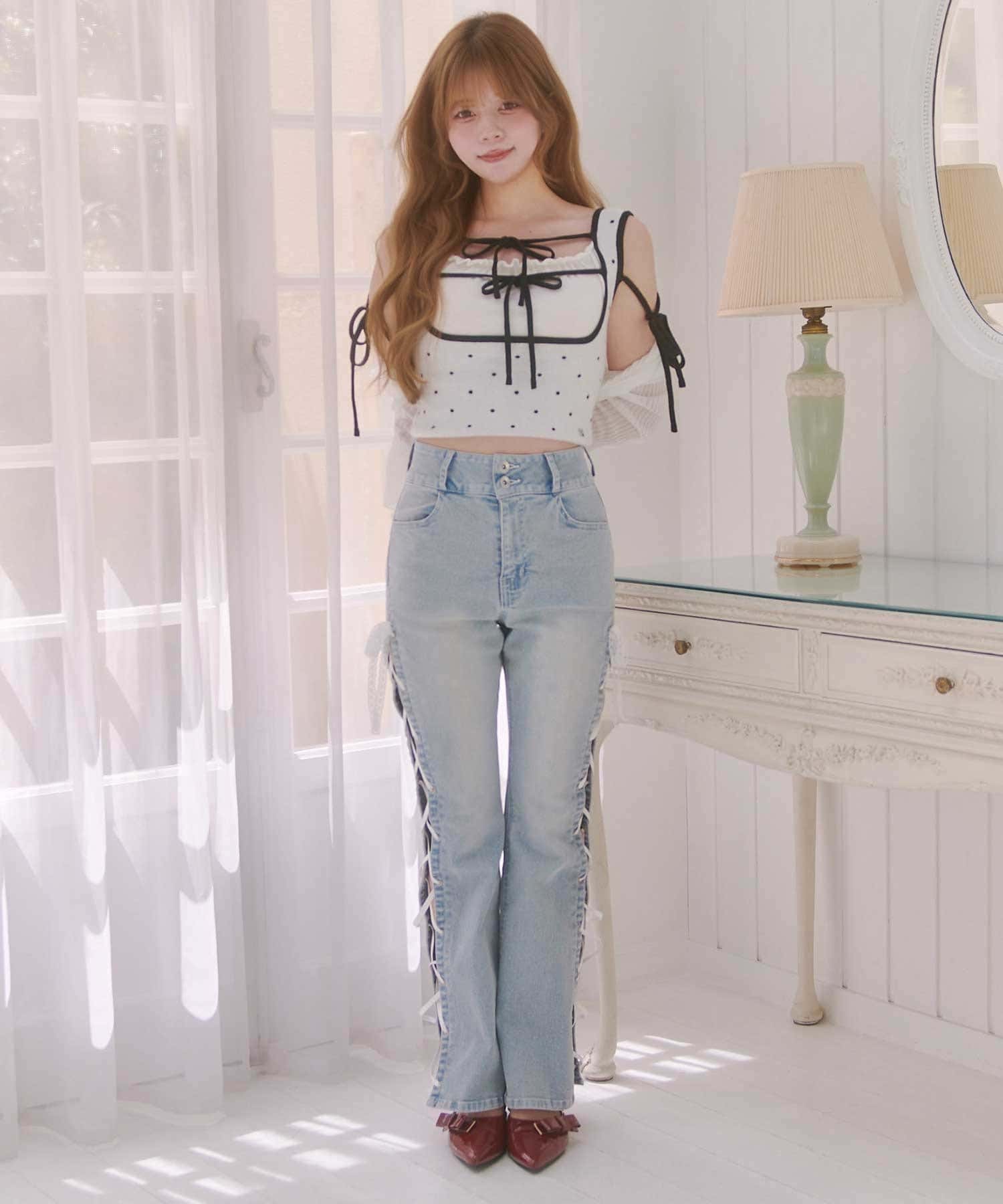 ・1161010070のフリルスカートと合わせてフェミニンに。