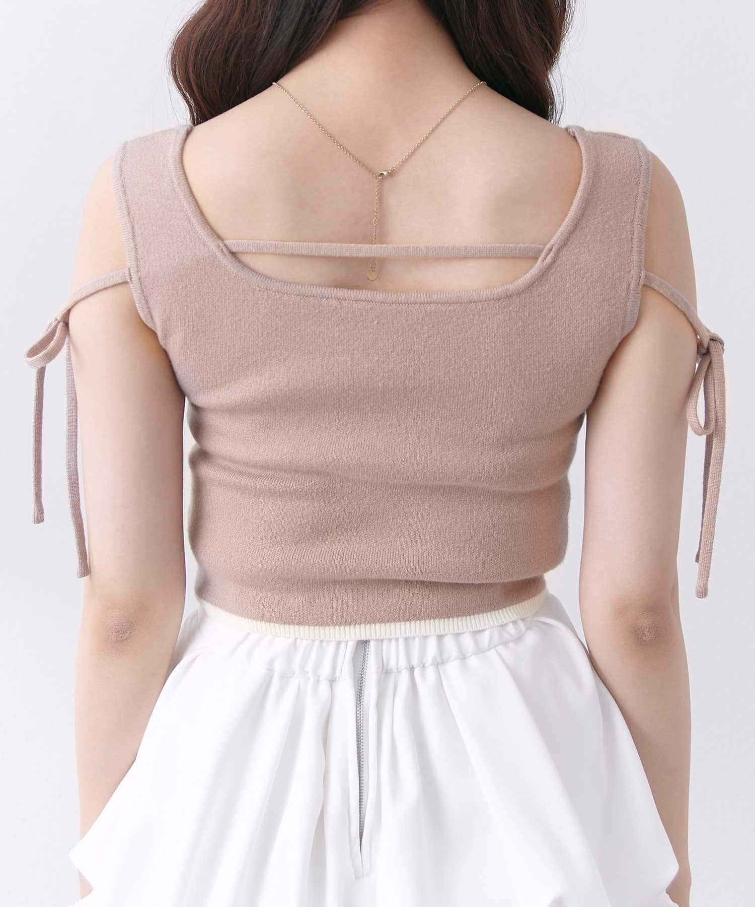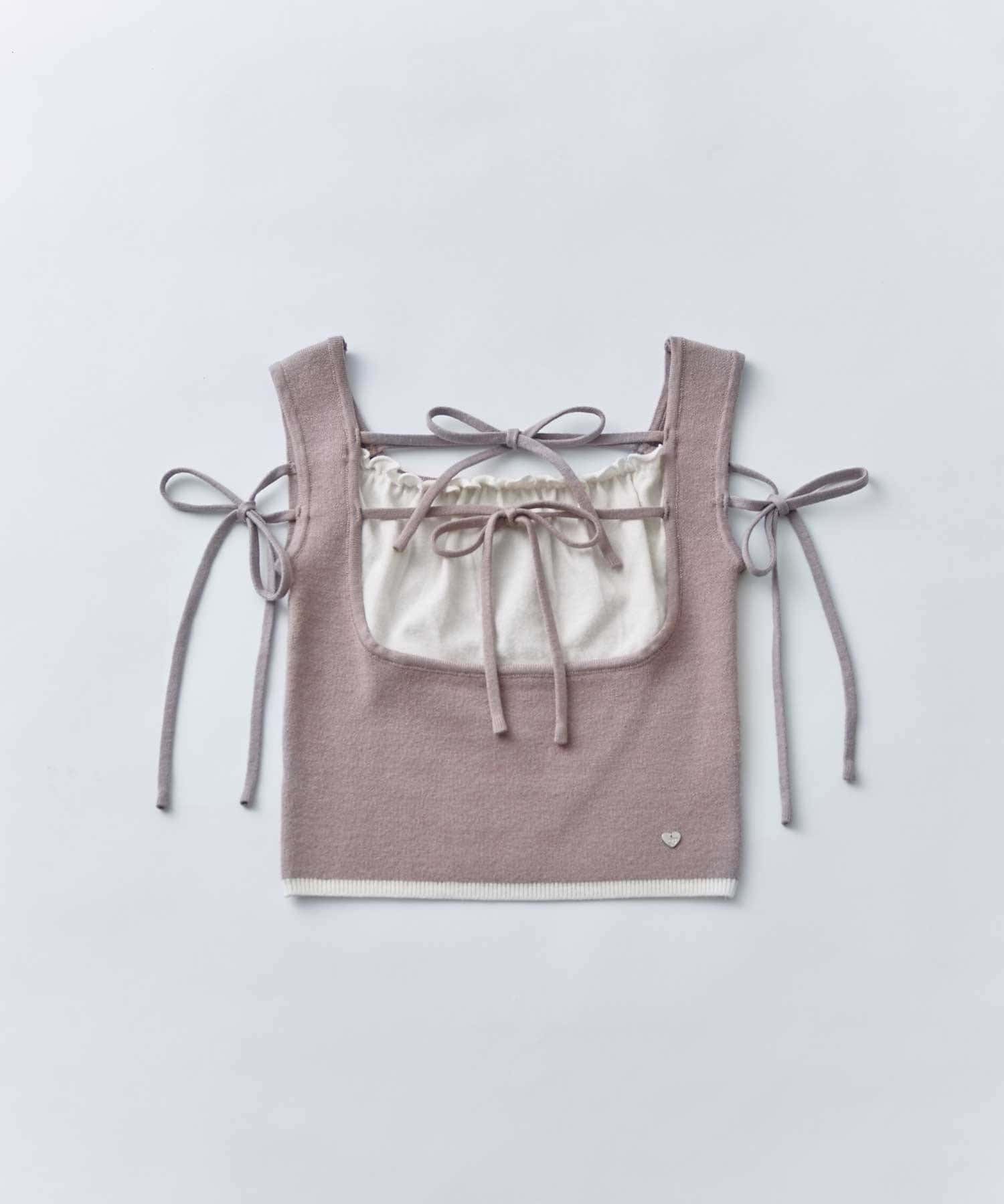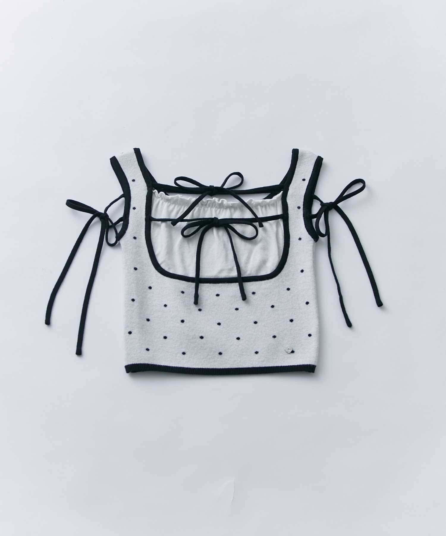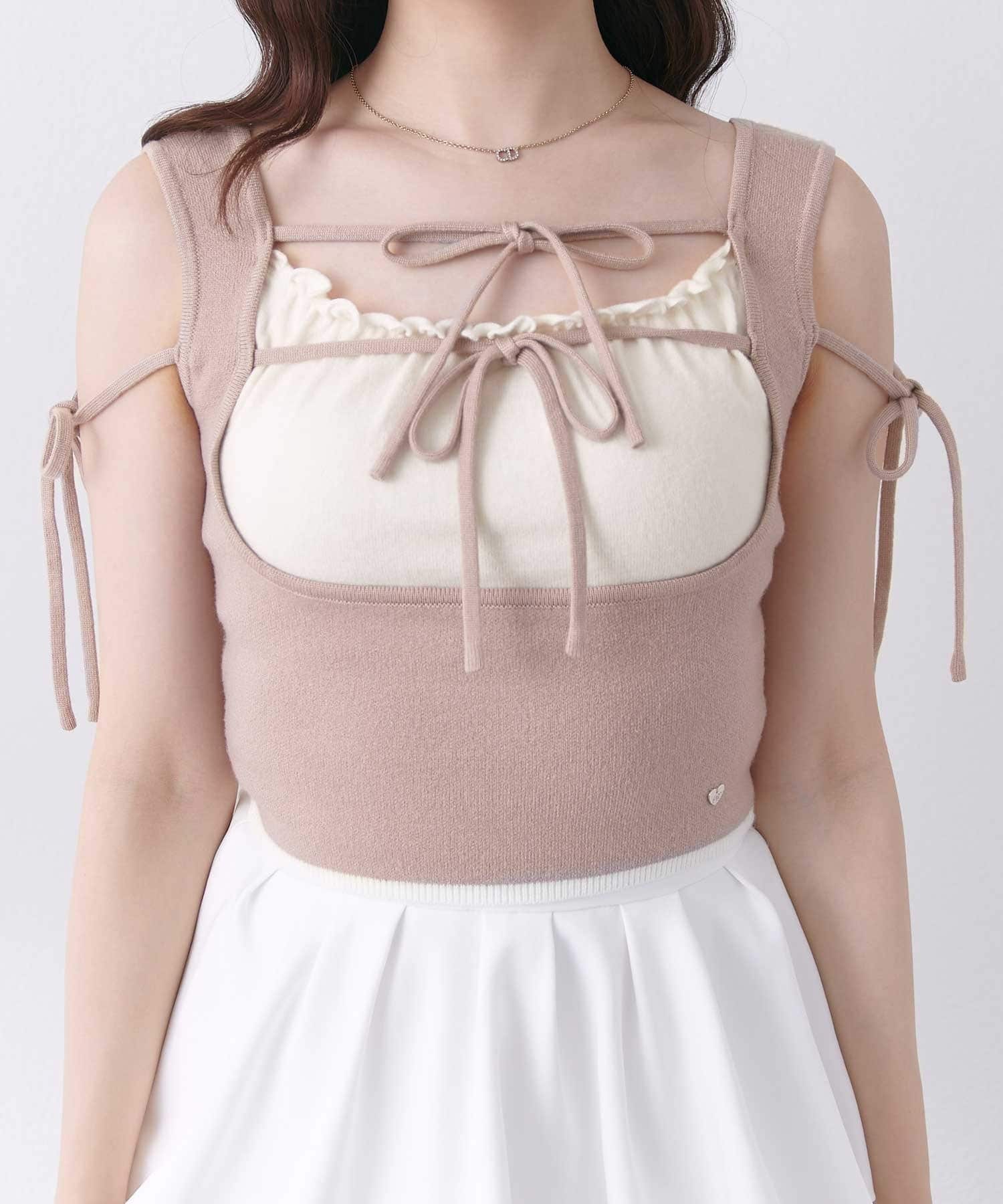 ダブルリボンがポイントの、フェミニンなニットタンクトップ。
