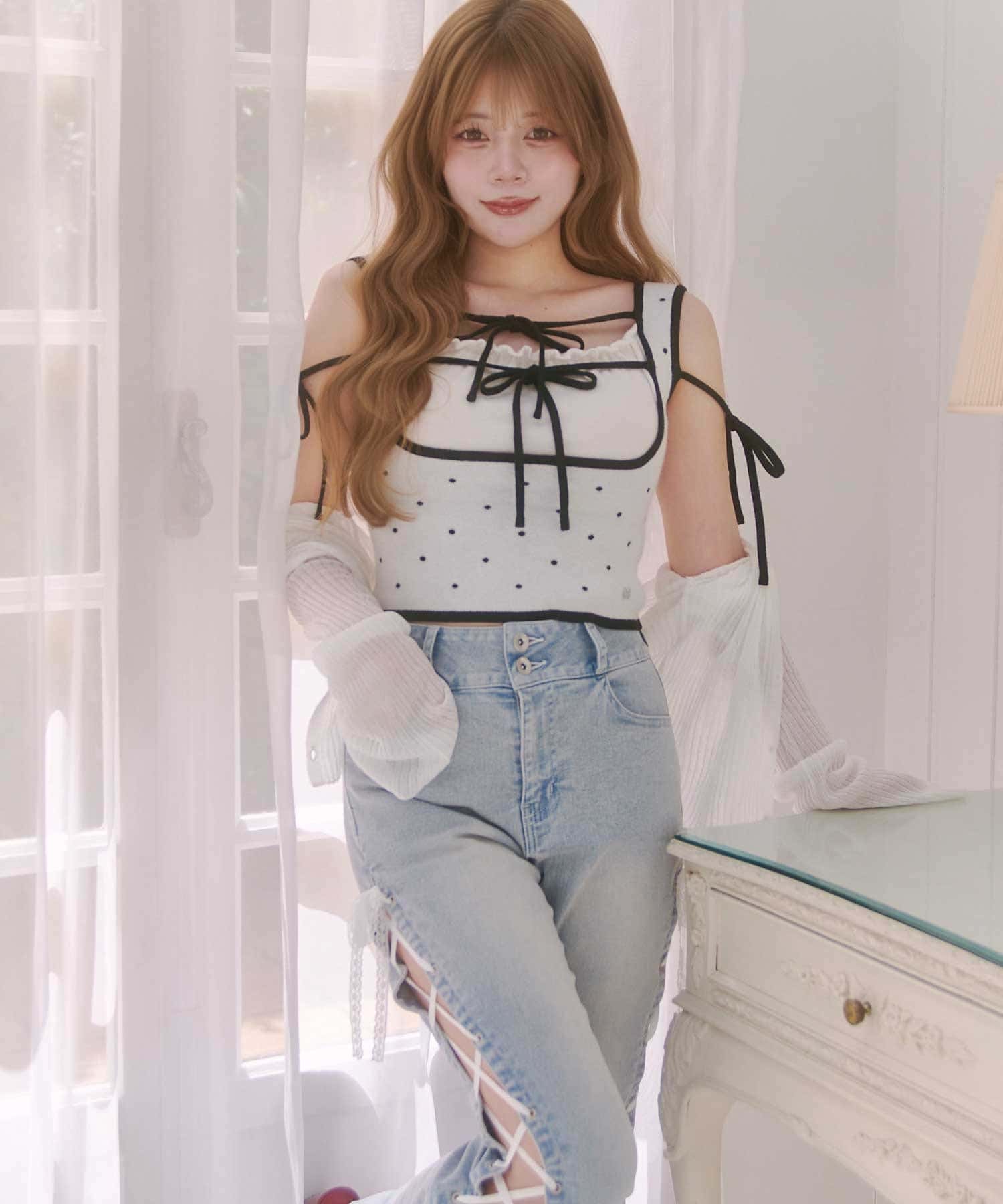 ・透け感のある素材で涼しげな印象に。