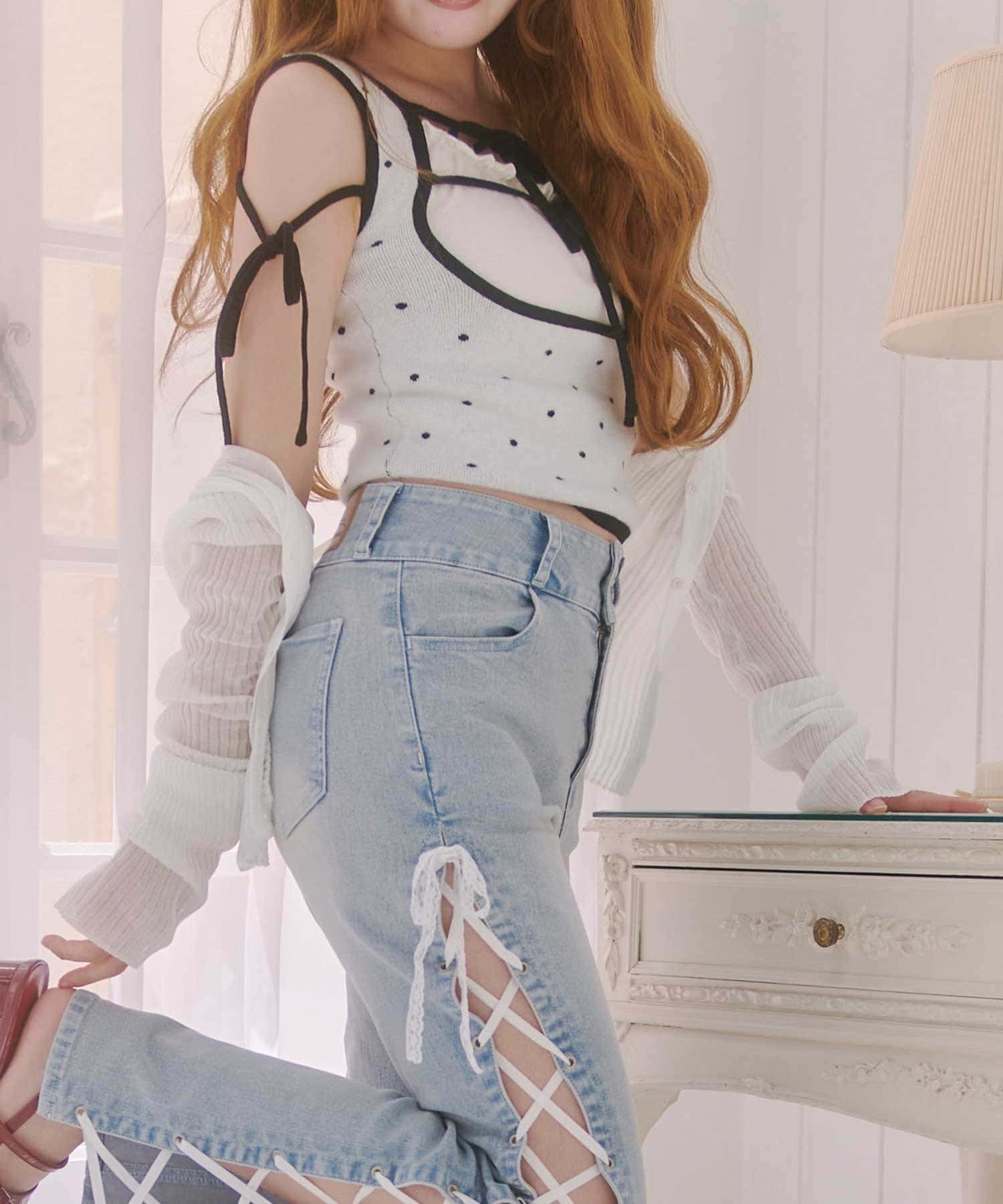 • 身長:165cm ※光の加減により実際のお色味と異なる場合がございます。