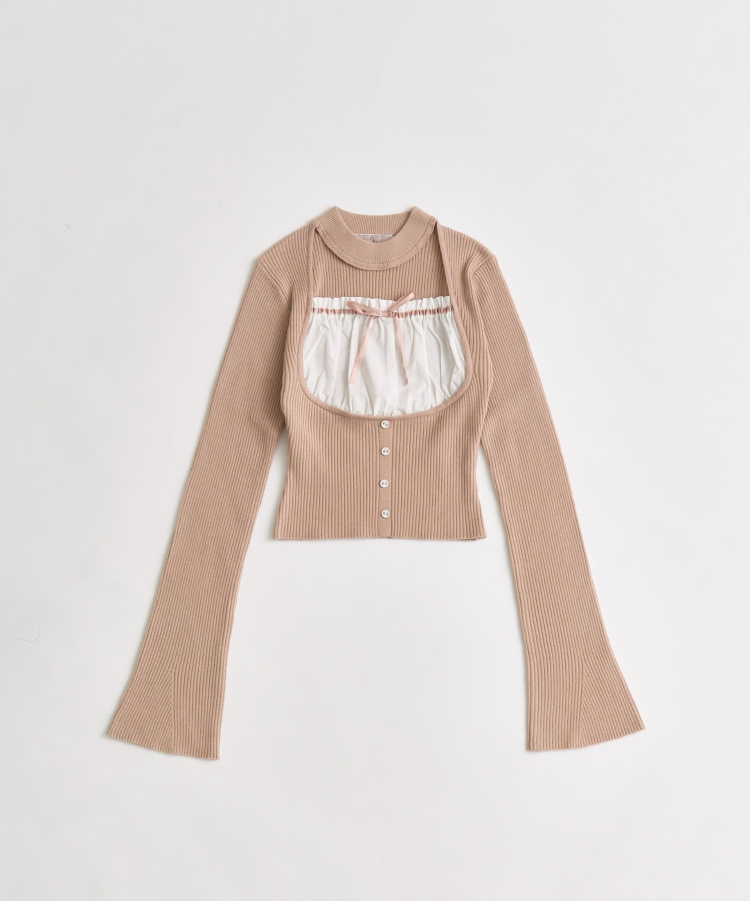 ・キャミソールを重ねたようなドッキングデザインで、コーデに立体感をプラス。