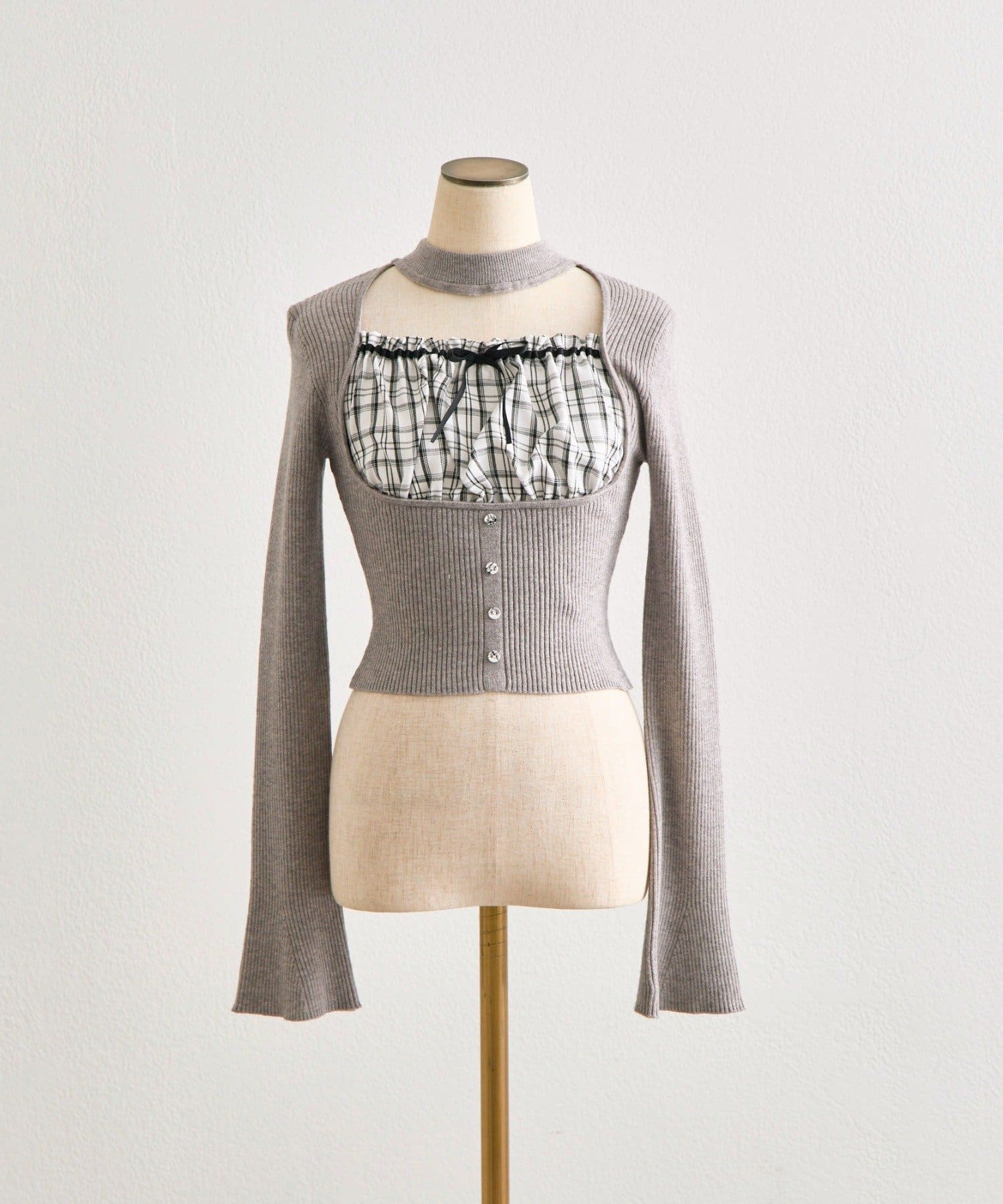・胸元の切り替えとボタンディテールが女性らしいアクセントに。