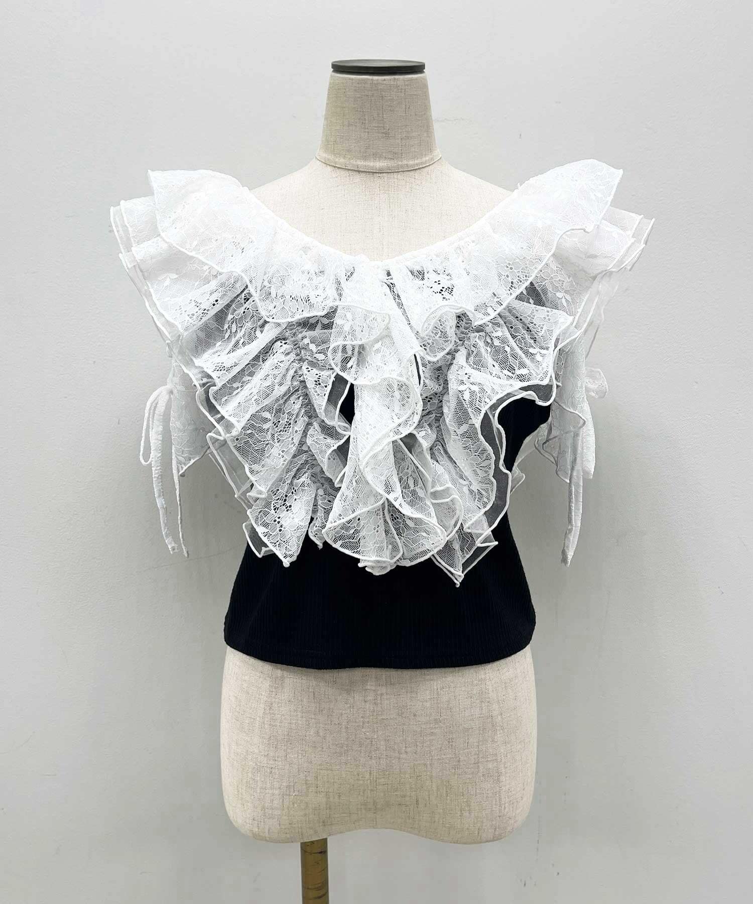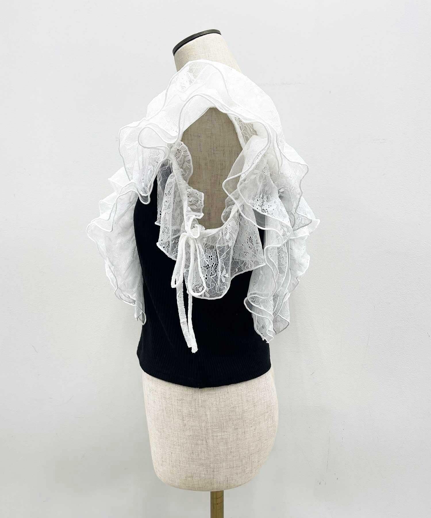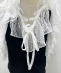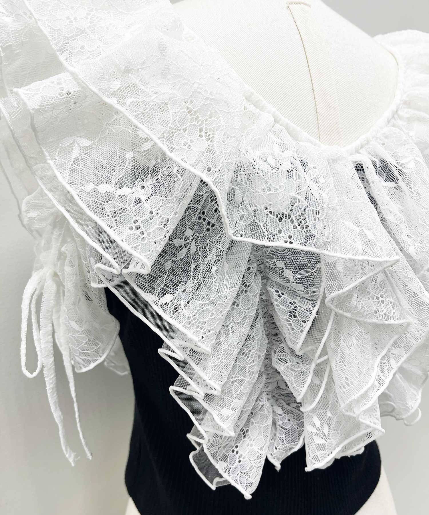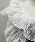 ・繊細なレースとチュールを重ねたフリルが、顔まわりを明るく上品な印象に。