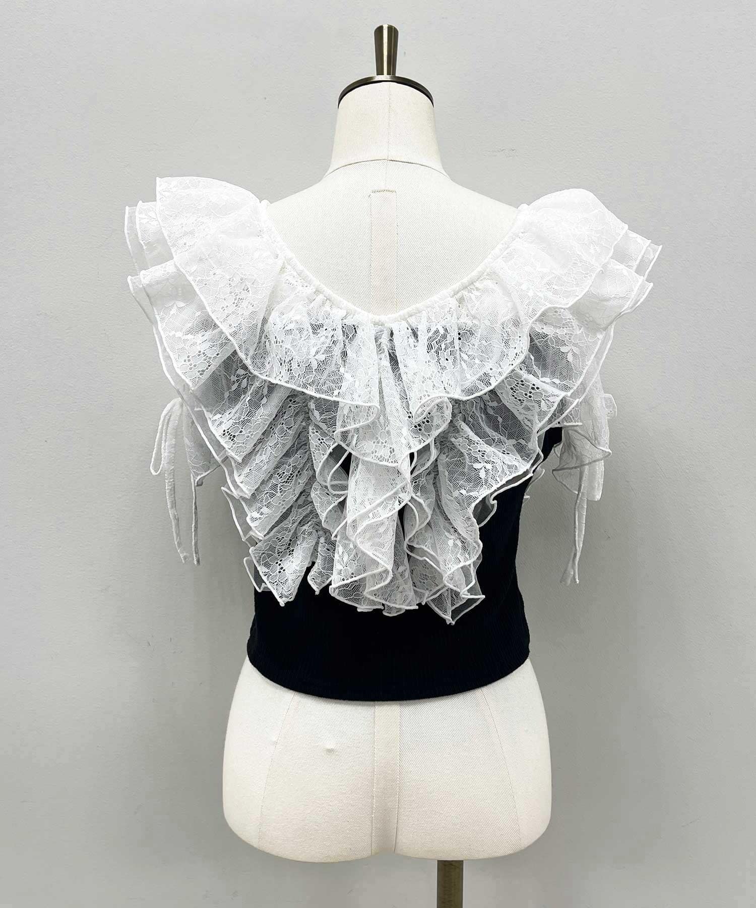 ・ボリューム感のあるレースフリルを贅沢にあしらった華やかなデザイン。