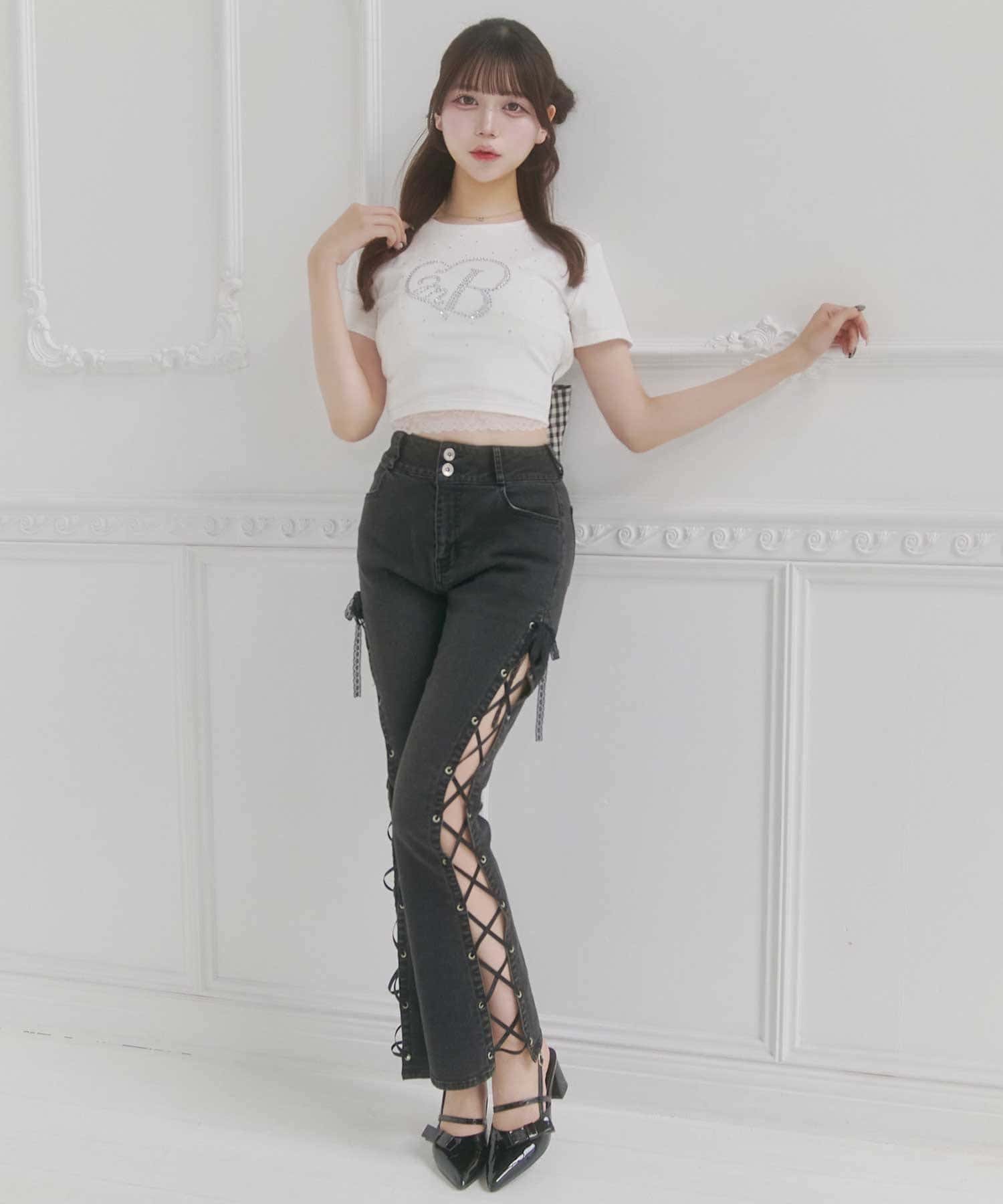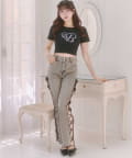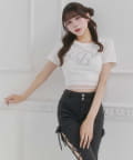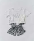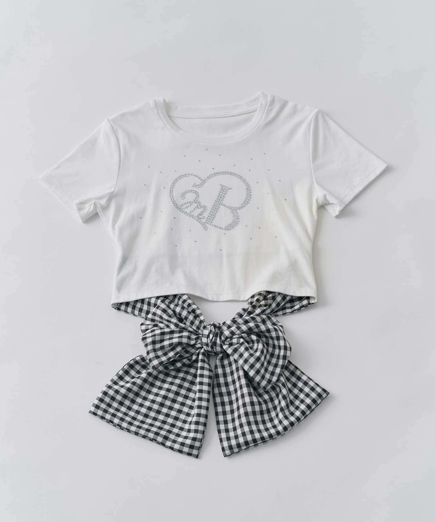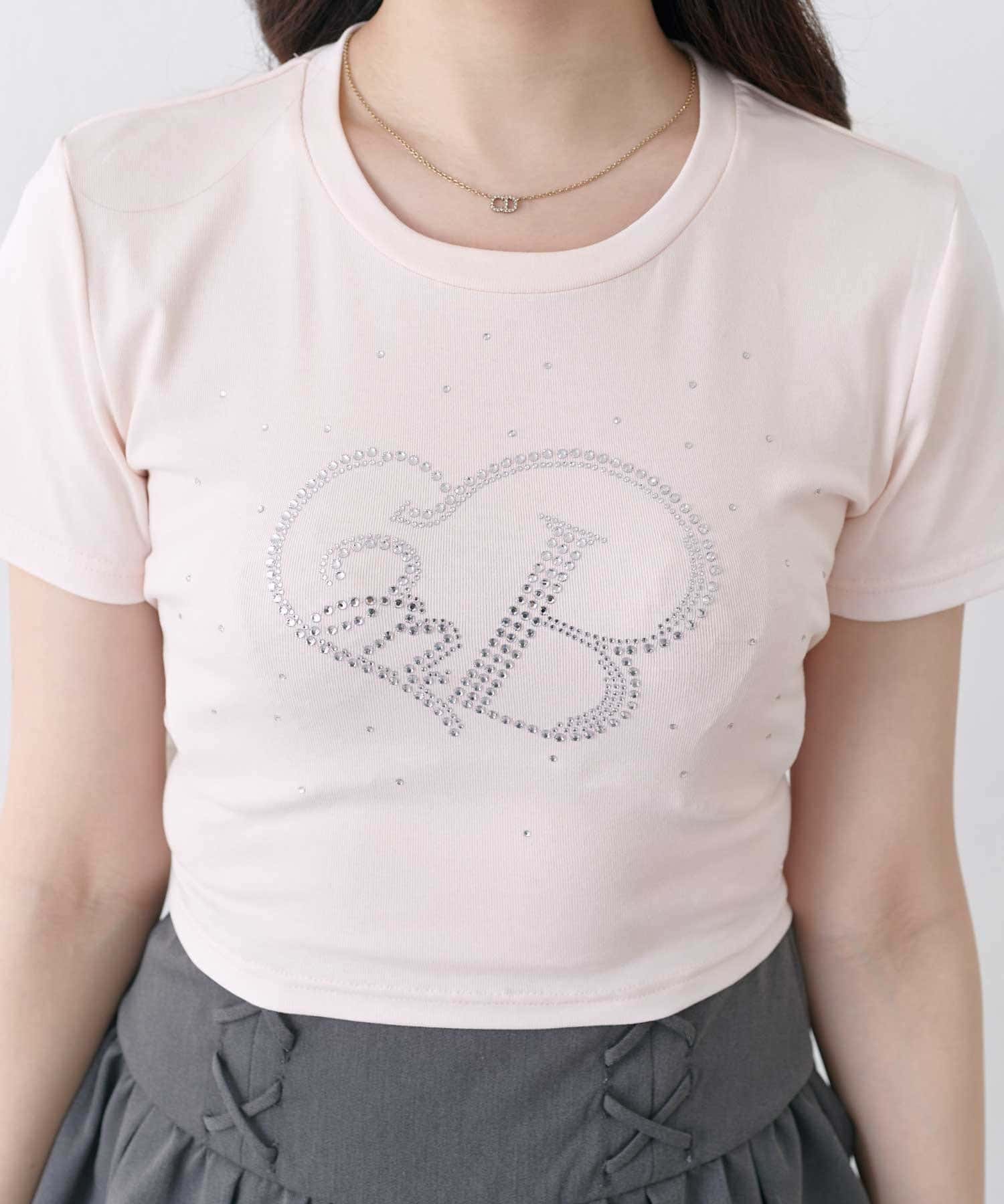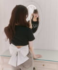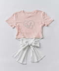 バックリボンとグリッターロゴが目を惹く、華やかなデザインTシャツ。