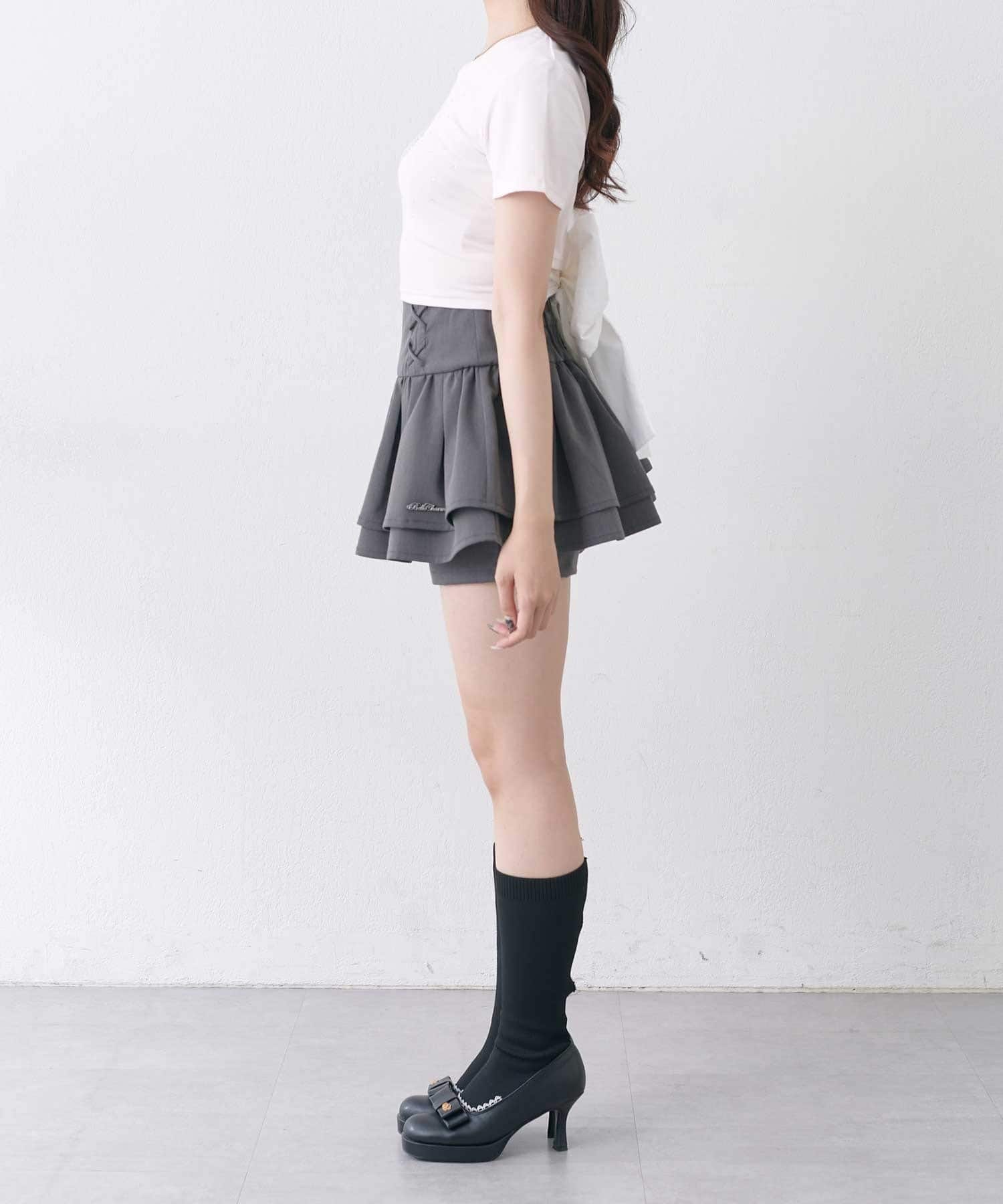・ミニスカートと合わせてガーリーに。