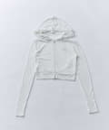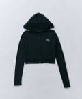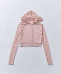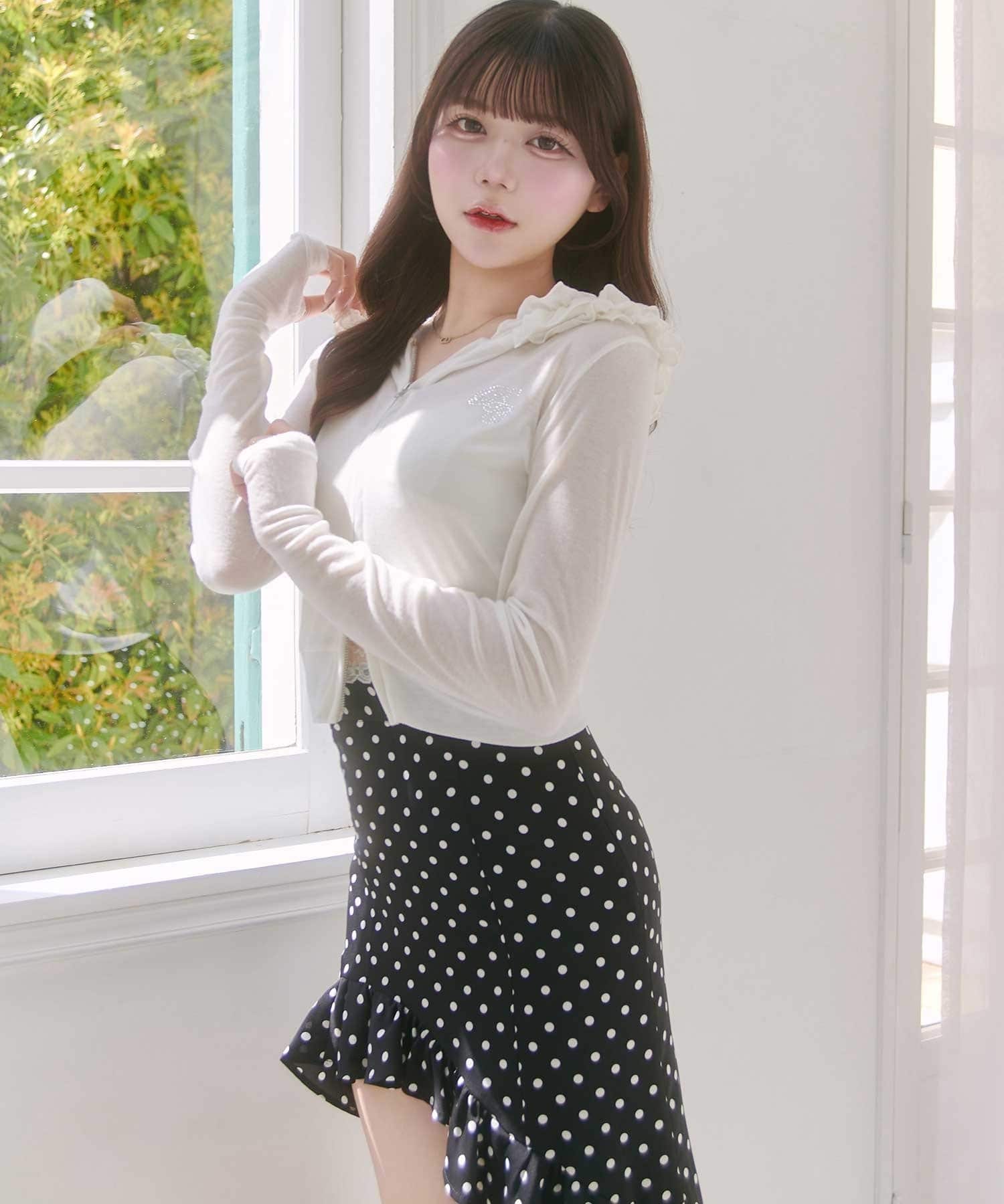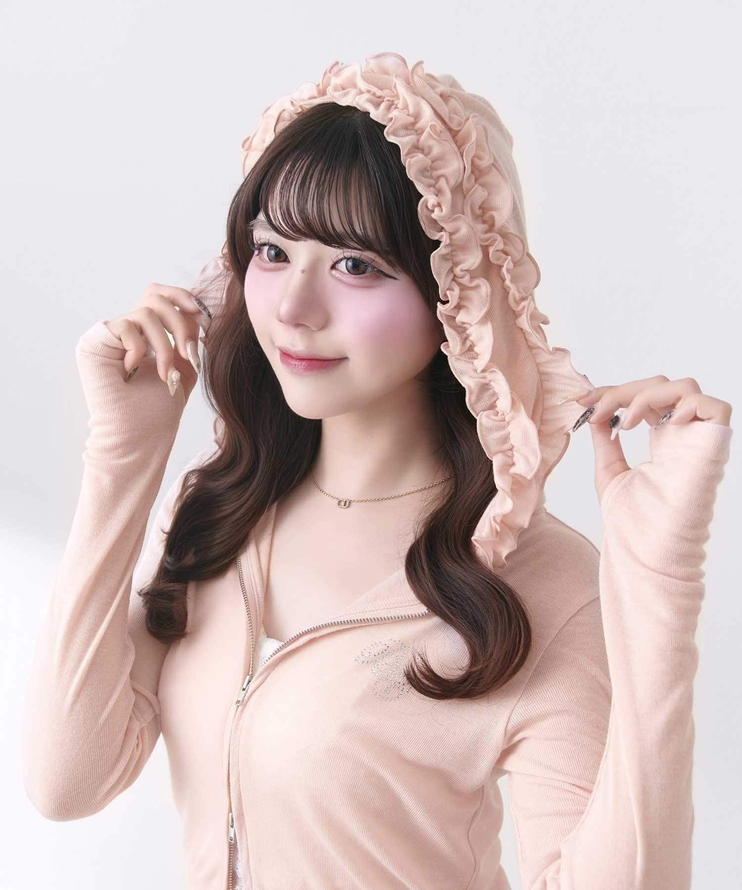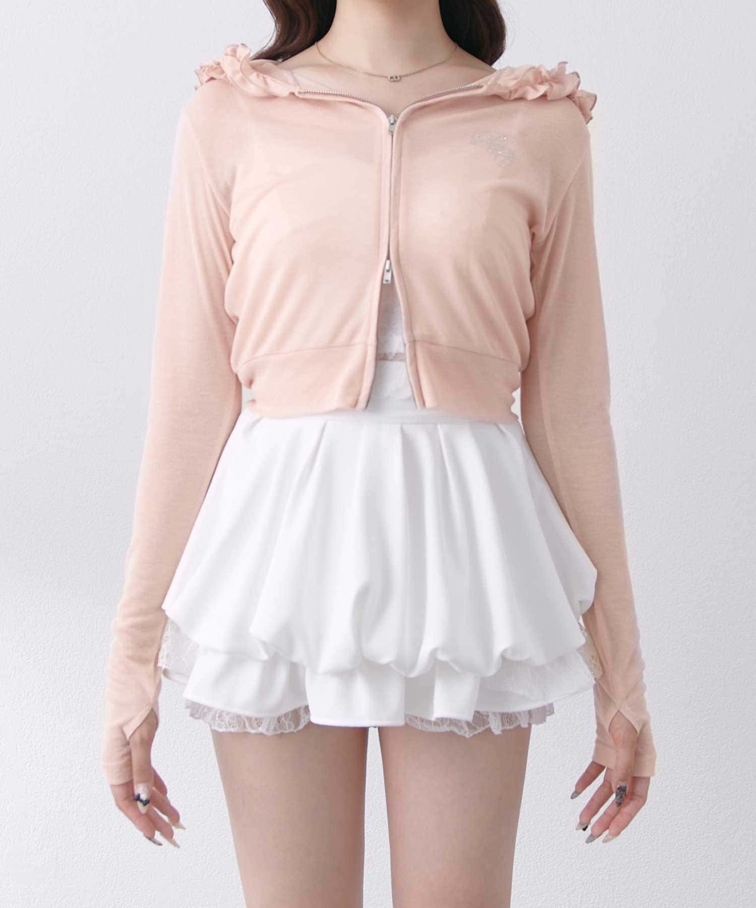 フリルディテールと胸元のキラキラロゴがポイントの、UVカットパーカー。