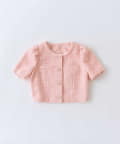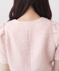 ・フロントのパールボタンやさりげないパフスリーブが、フェミニンな雰囲気を引き立てます。