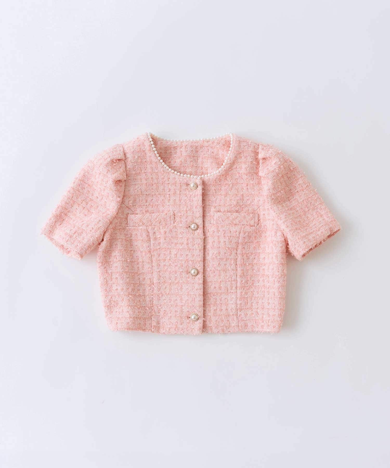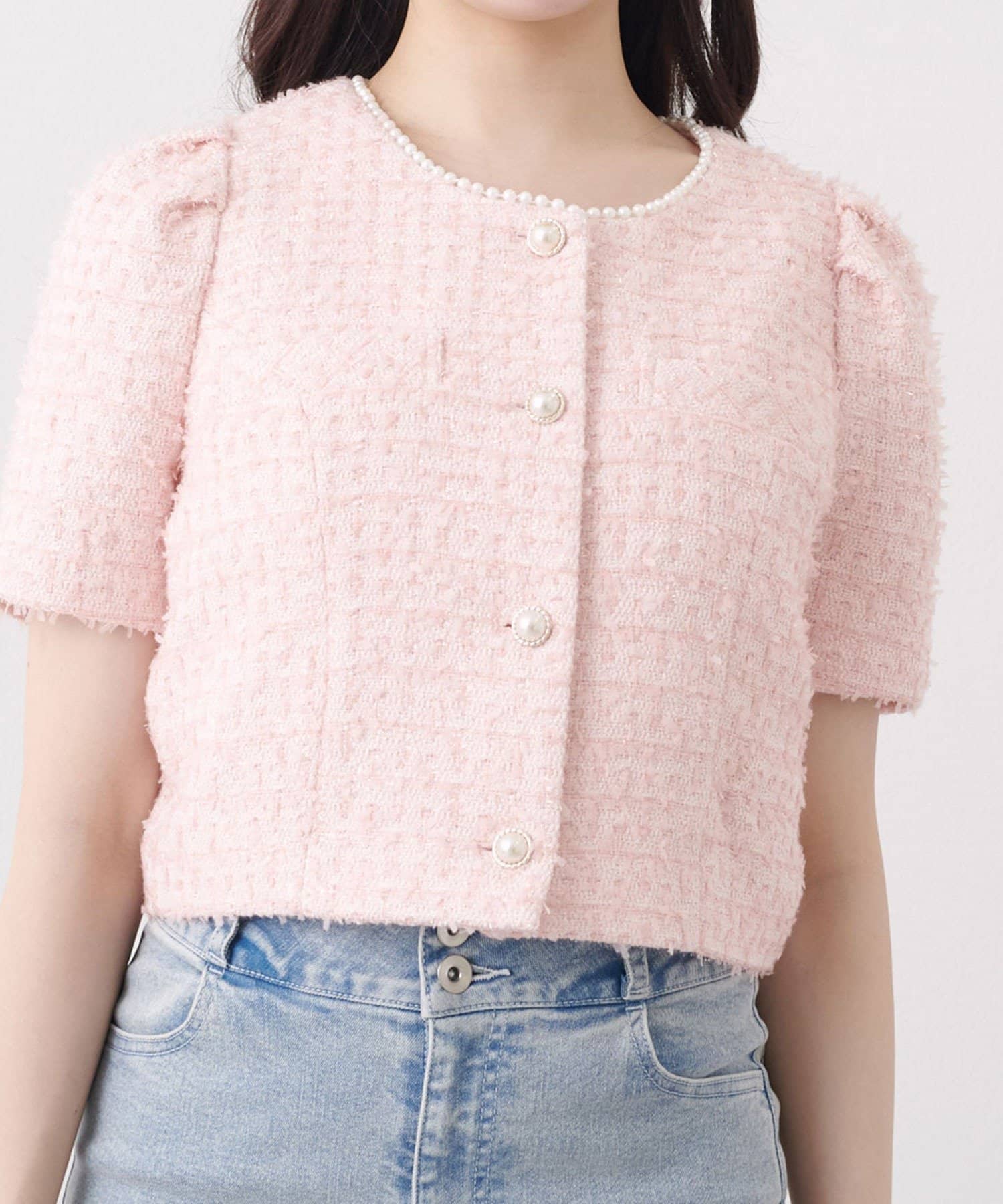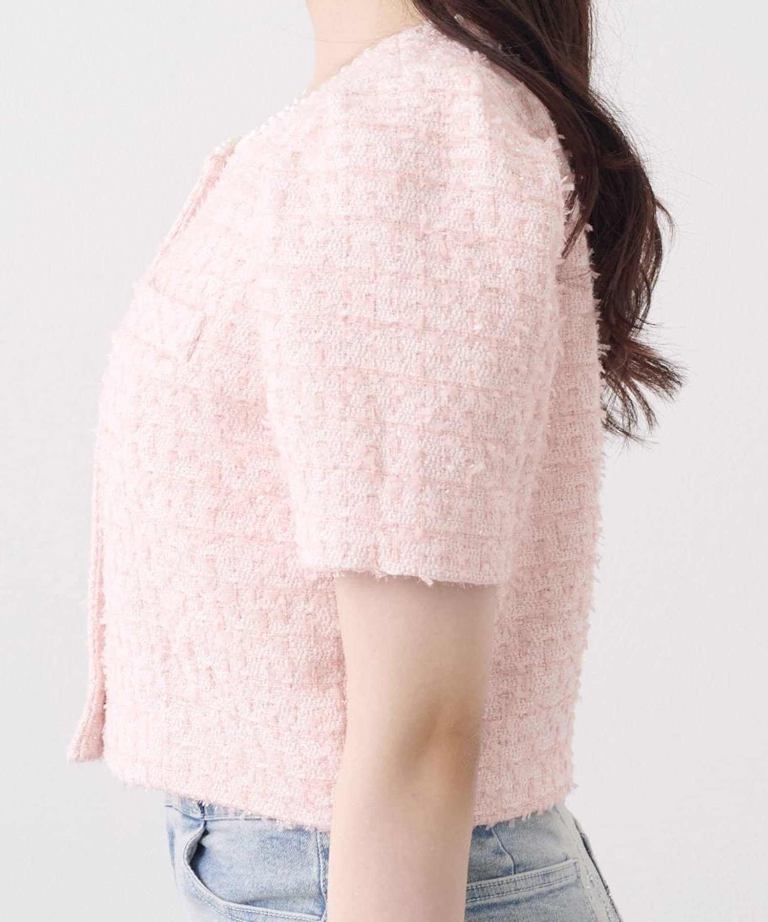 Belle Charme(ベルシャルム) Pearl Neck Tweed Jacket