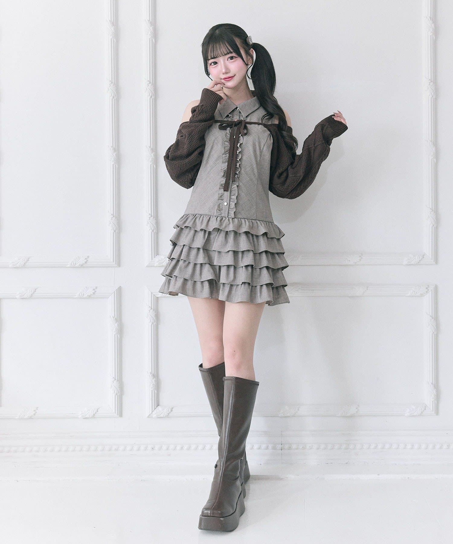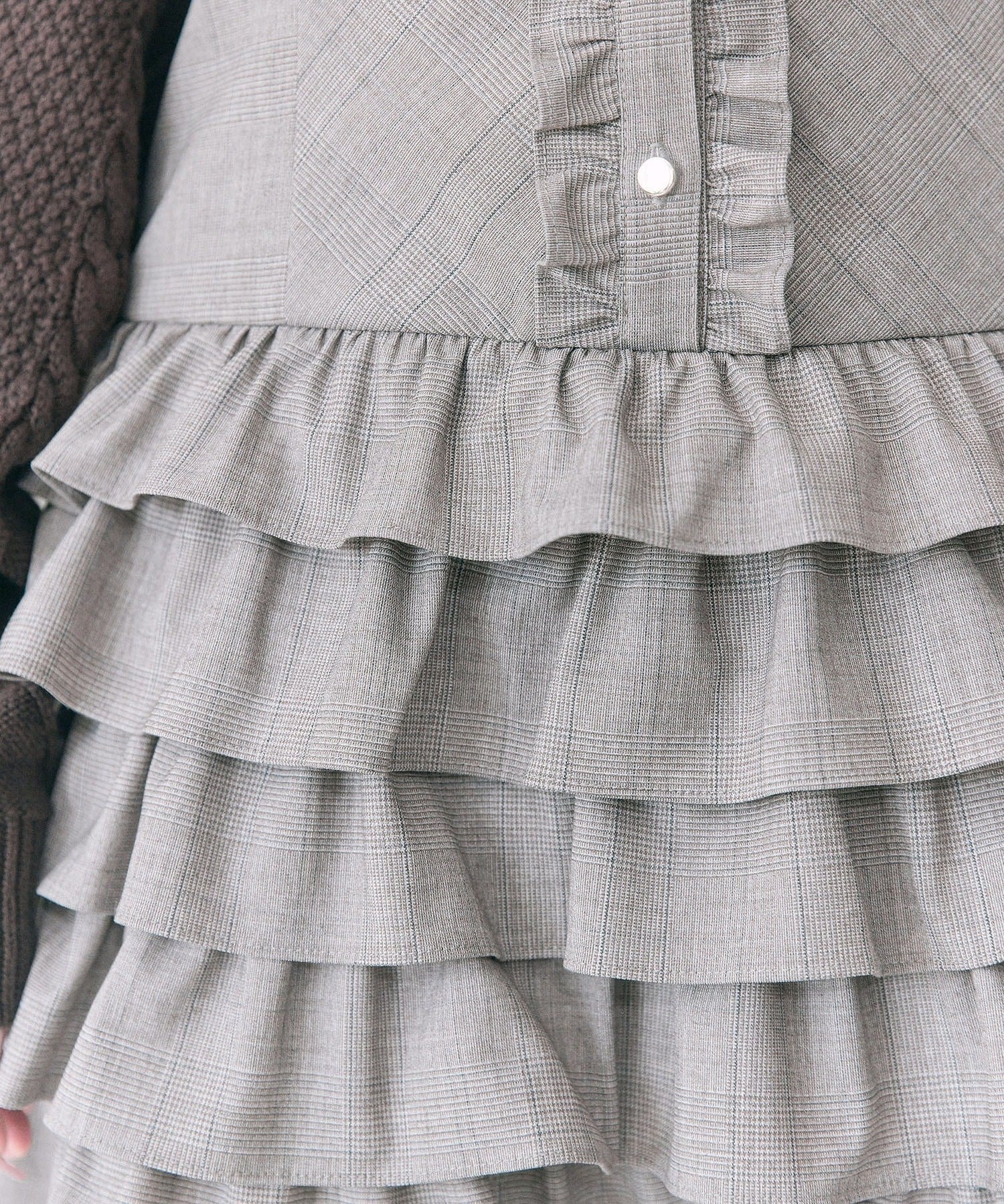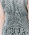 ・ウエスト切り替えから広がる、段フリル仕様のスカートが華やかさをプラス。
