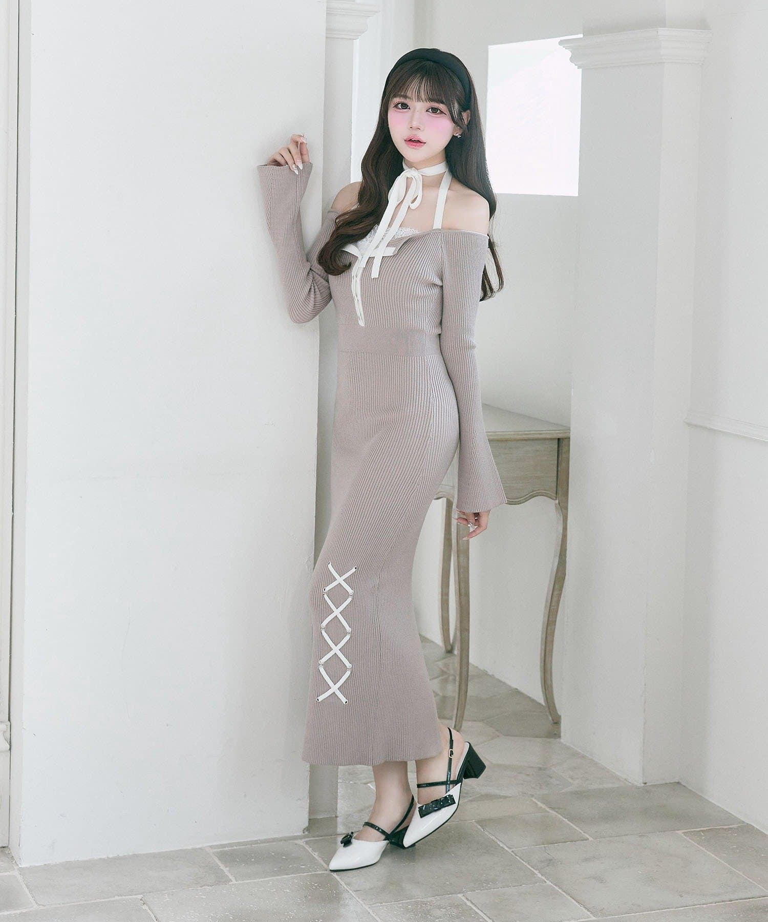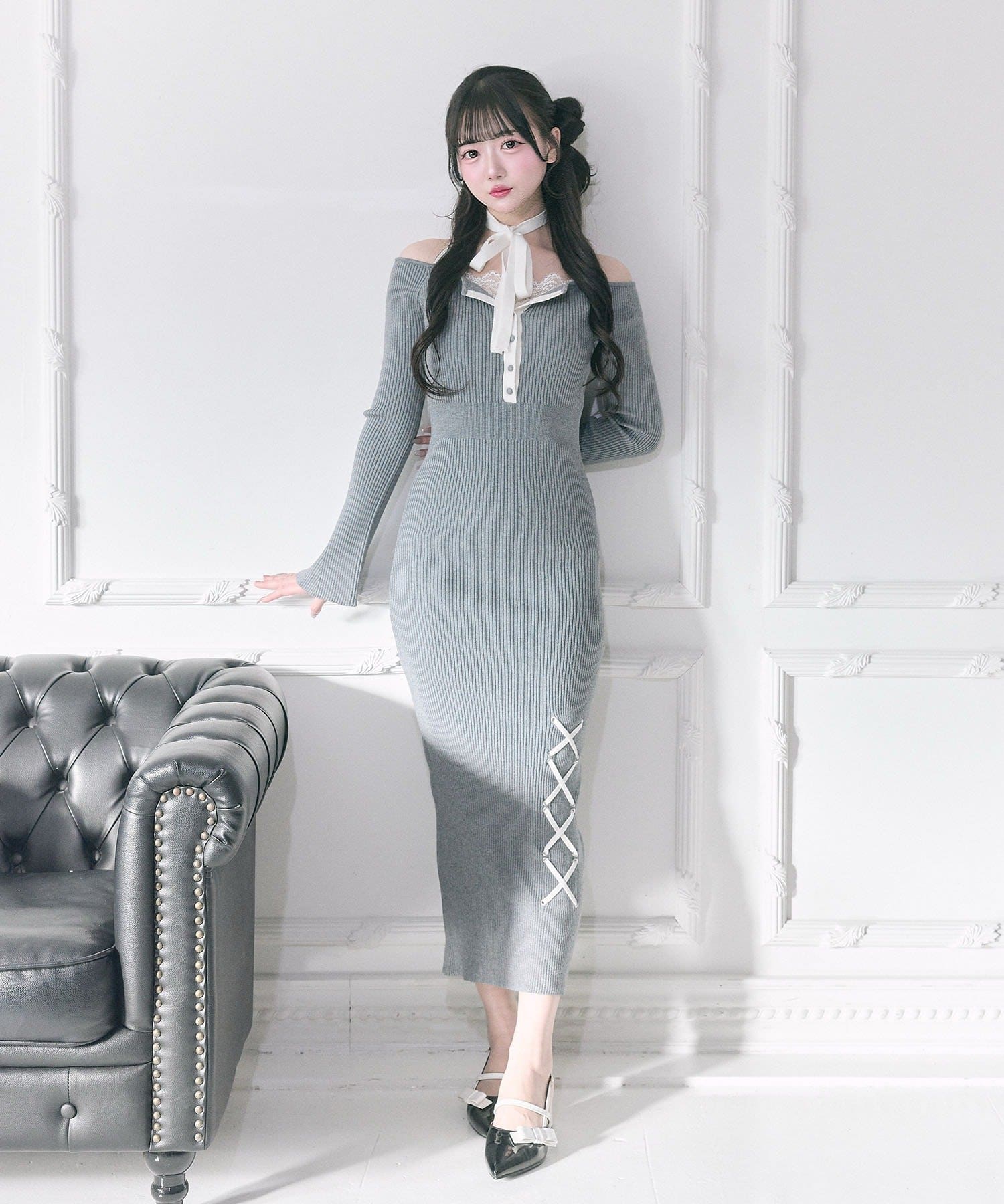 ・首元のリボンと胸元のレースが視線を惹くポイント。
