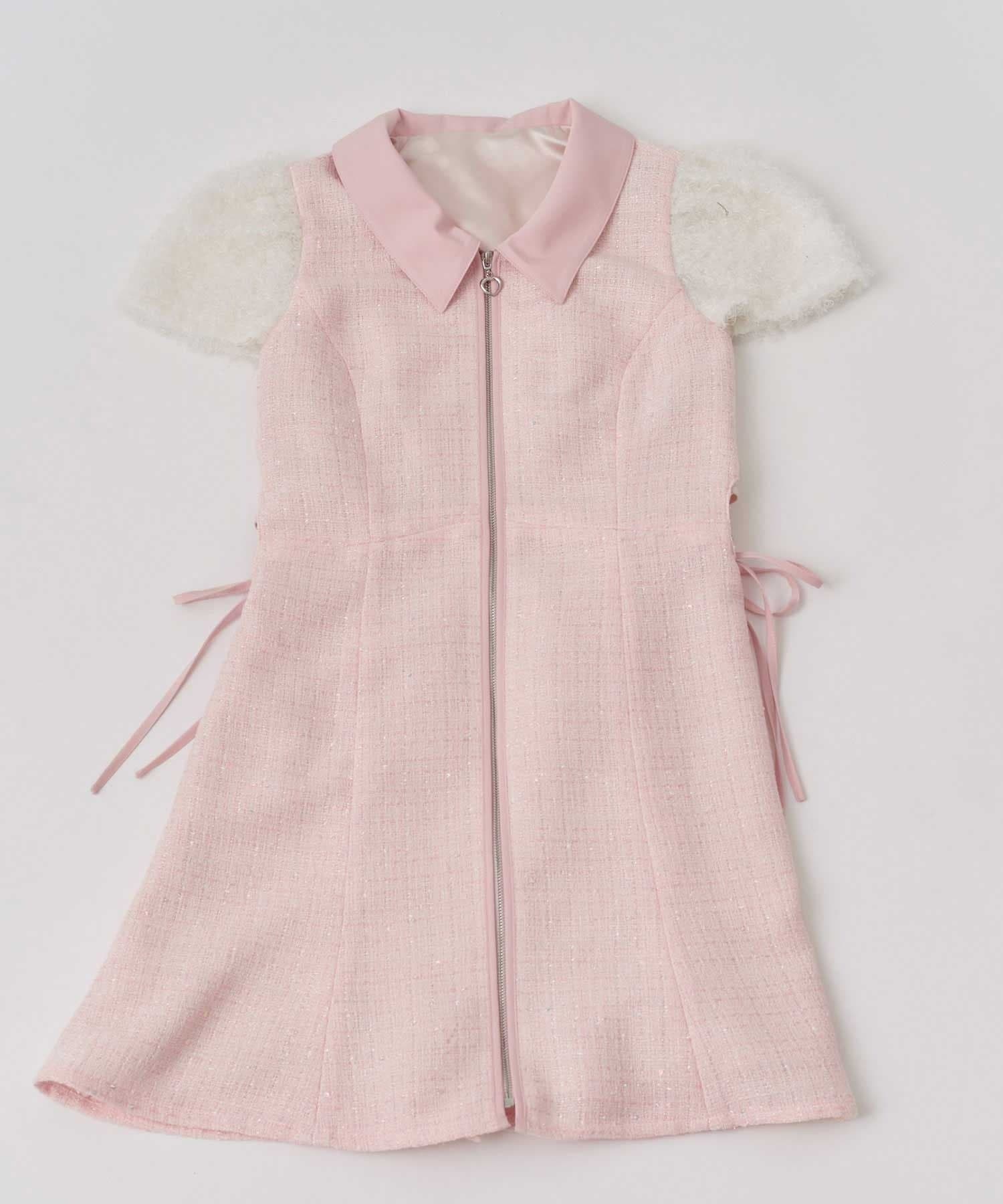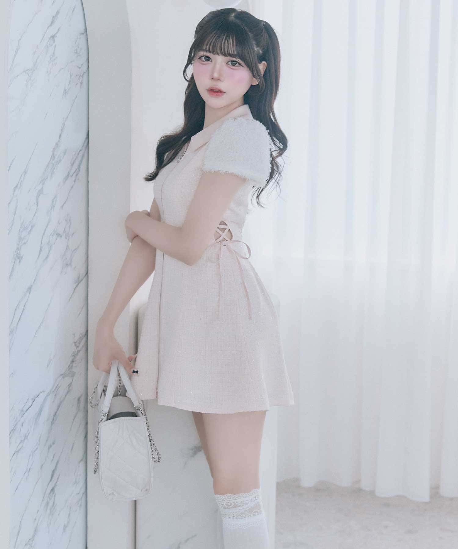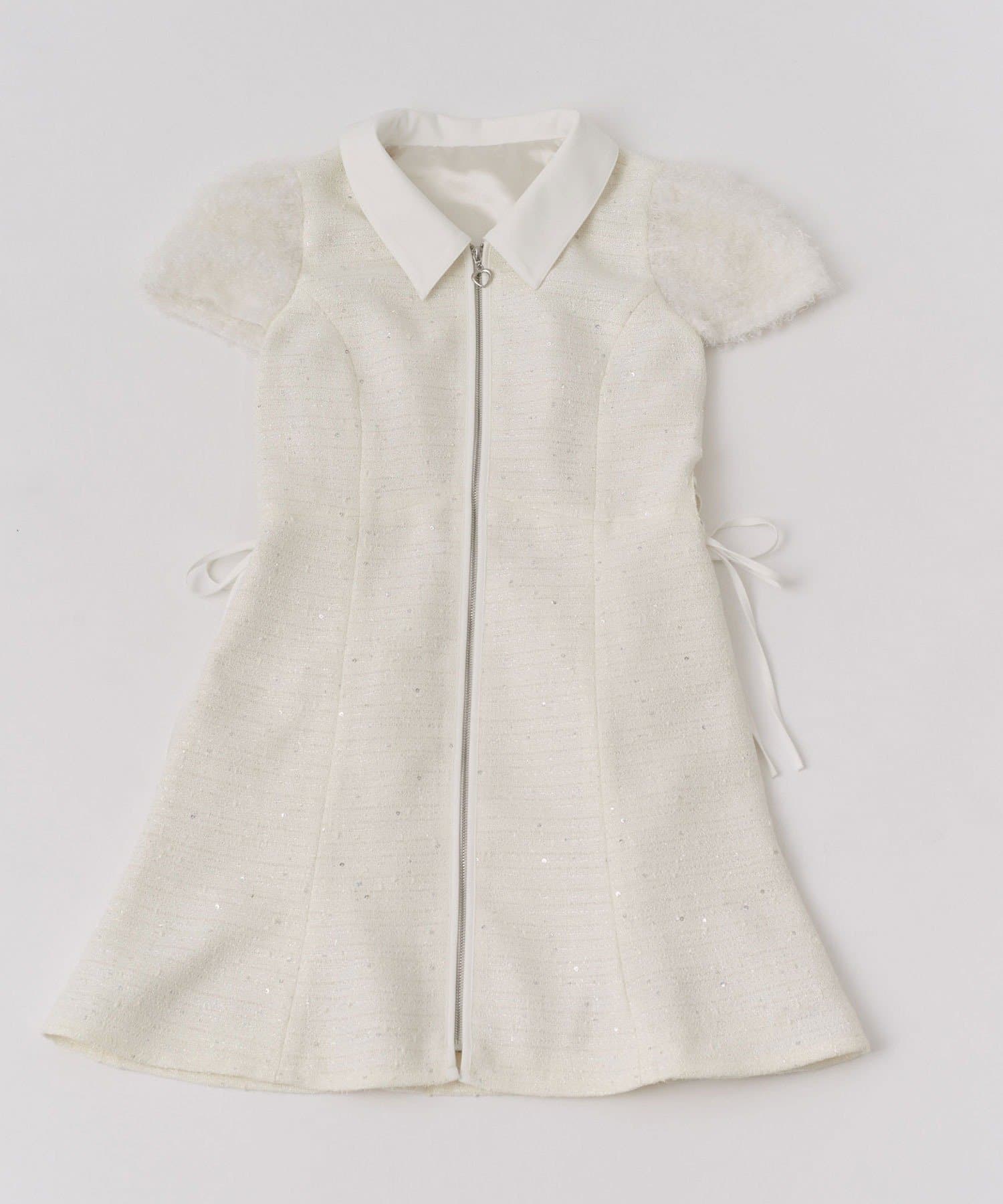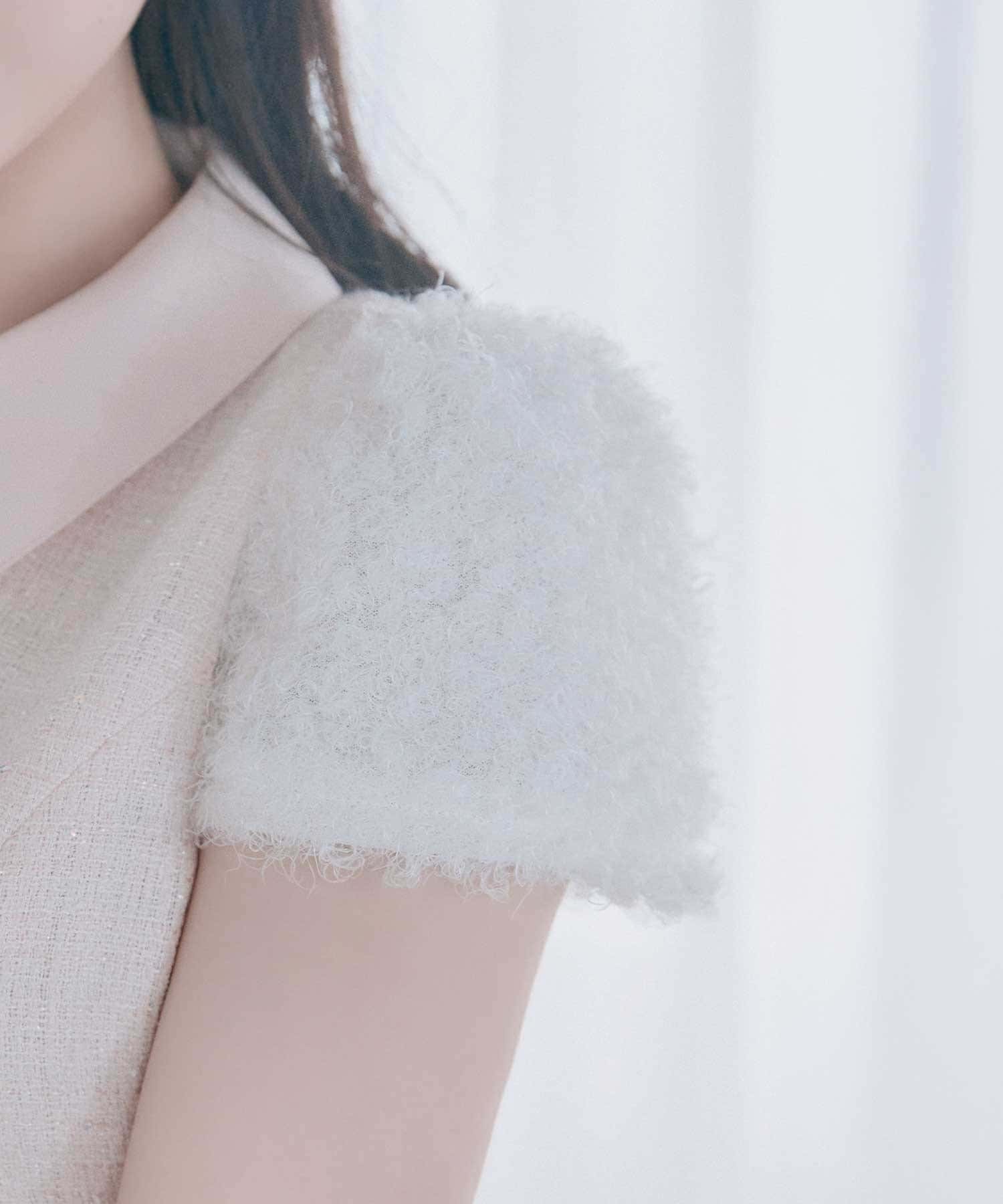ツイード素材×ファースリーブで、上品さと華やかさを兼ね備えた主役ワンピース。
