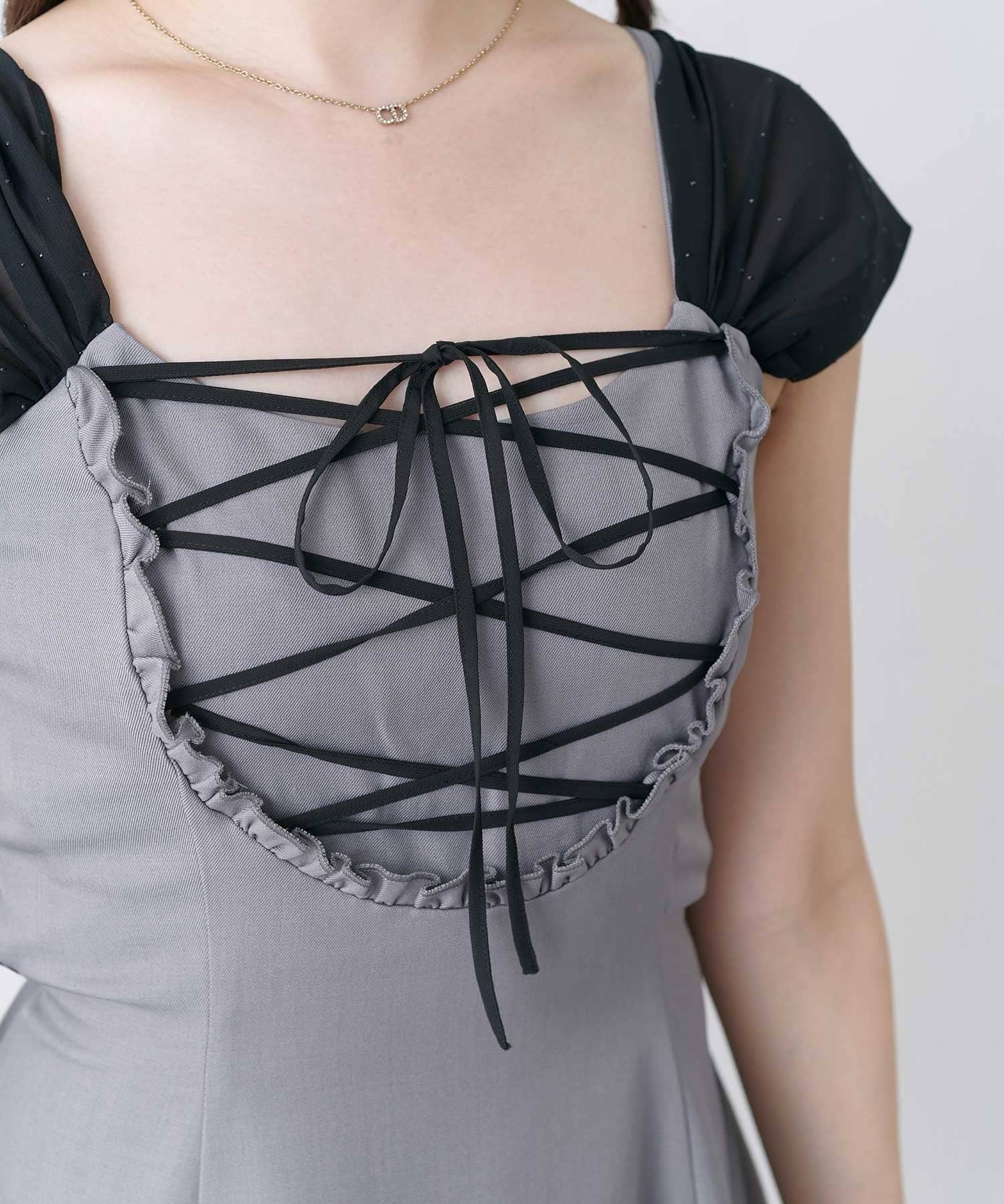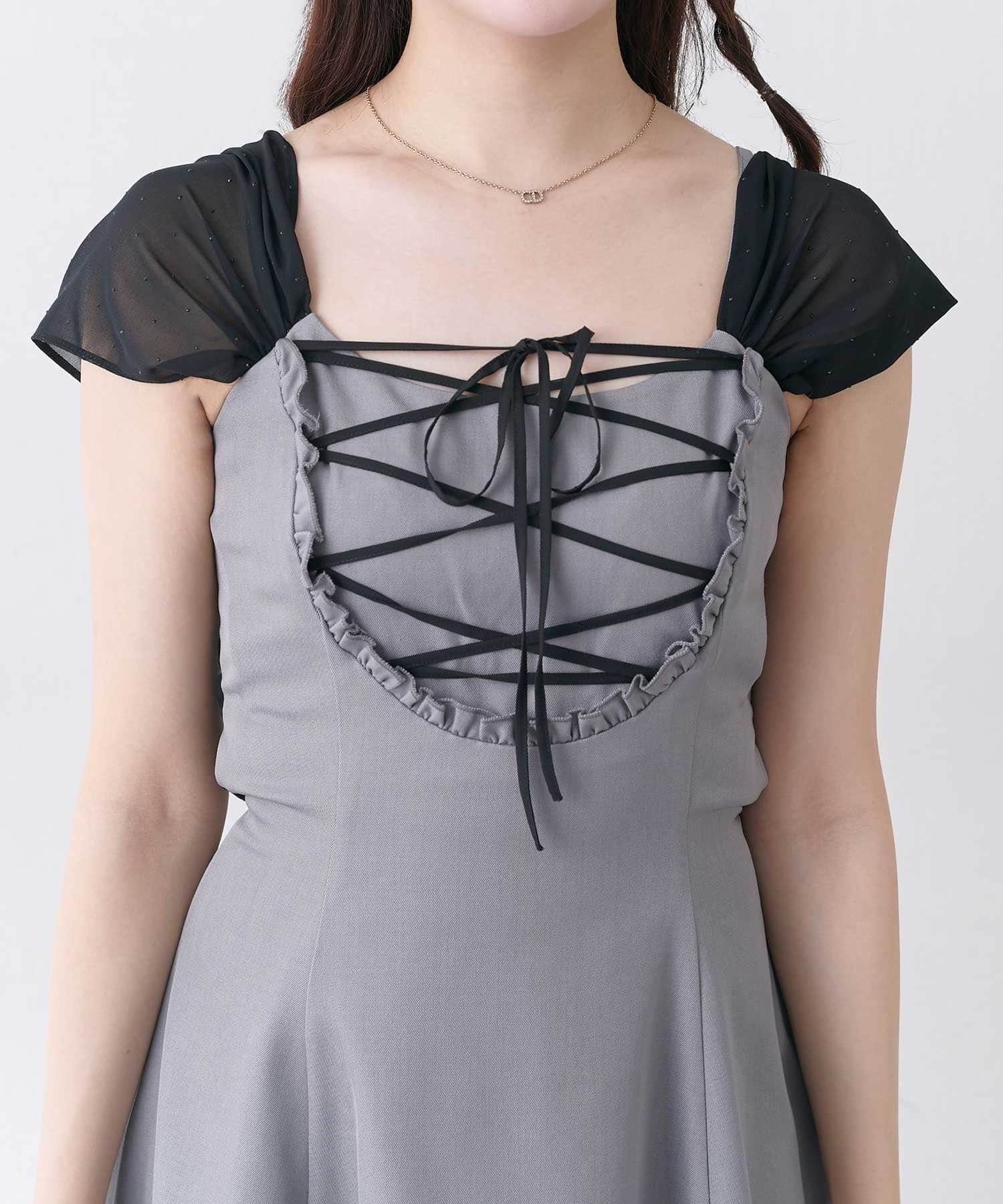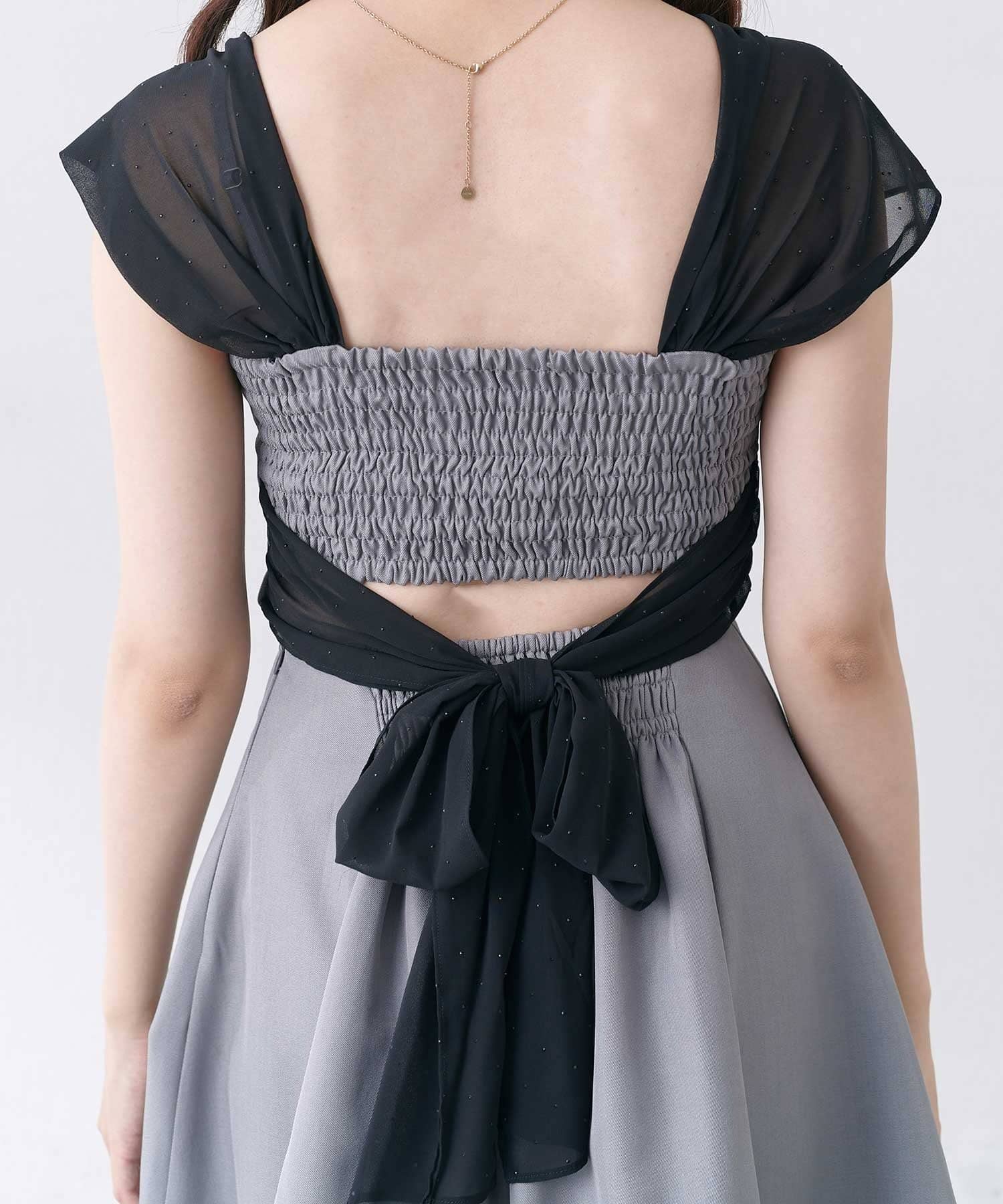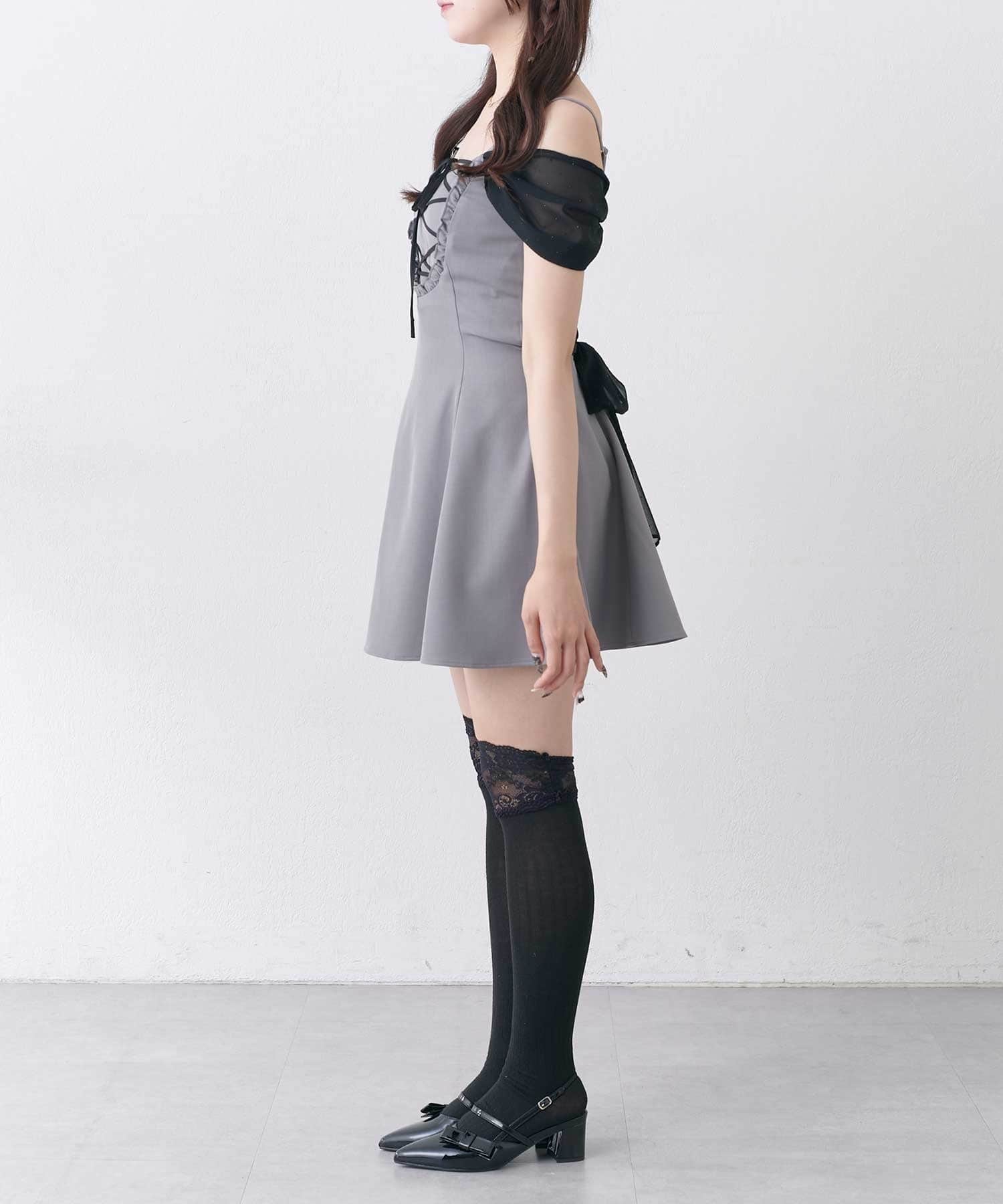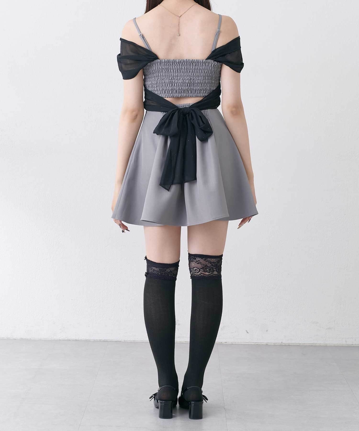 ・シフォンの肩紐を下してオフショルライクに。
