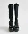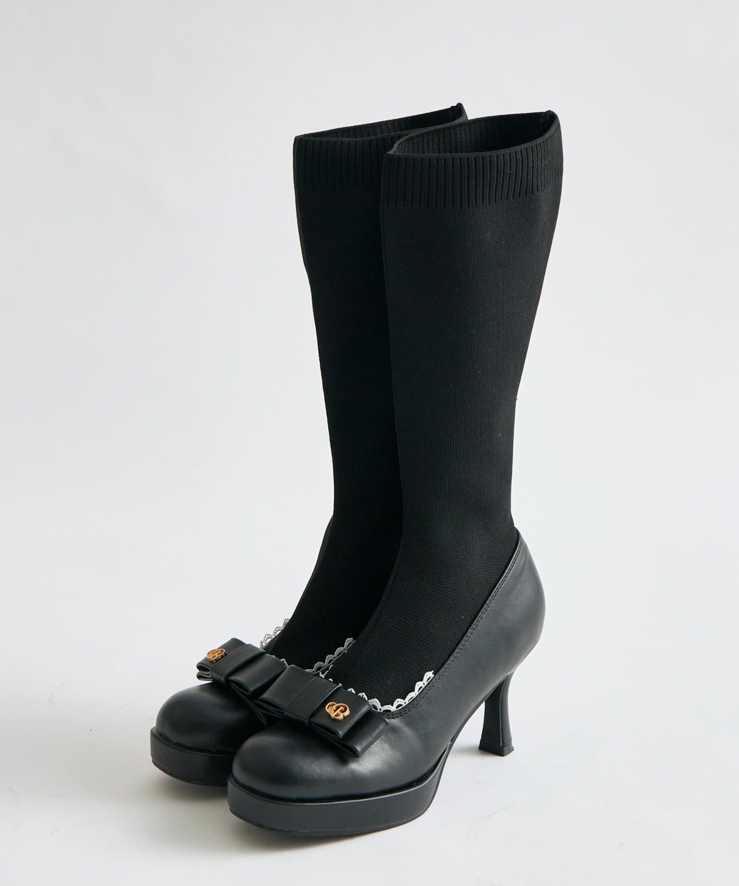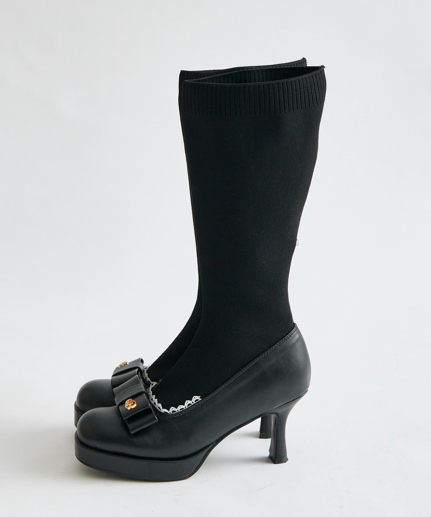 ・ソックスのようなリブニットとのドッキングデザインが目を惹くショートブーツ。
