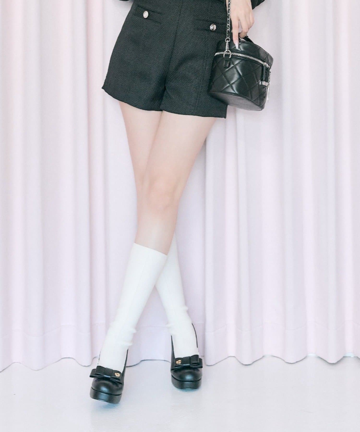 ・フロントのリボンモチーフが、程よくガーリーなアクセントに。