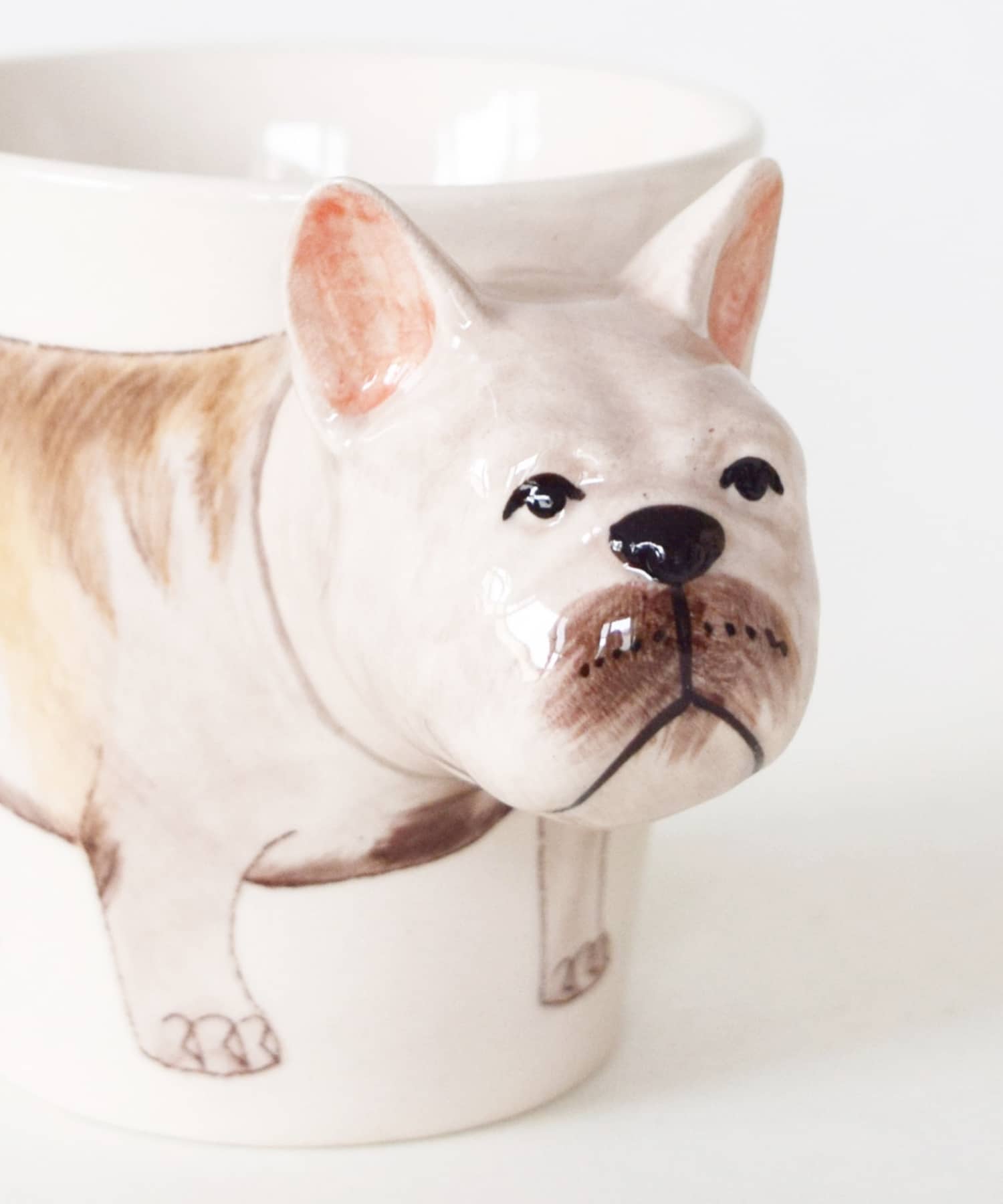 動物の顔や手が持ち手になっている立体感のあるマグカップ。ひとつひとつ丁寧にハンドペイントされているので、それぞれ表情が違うのもまた素敵ですね。