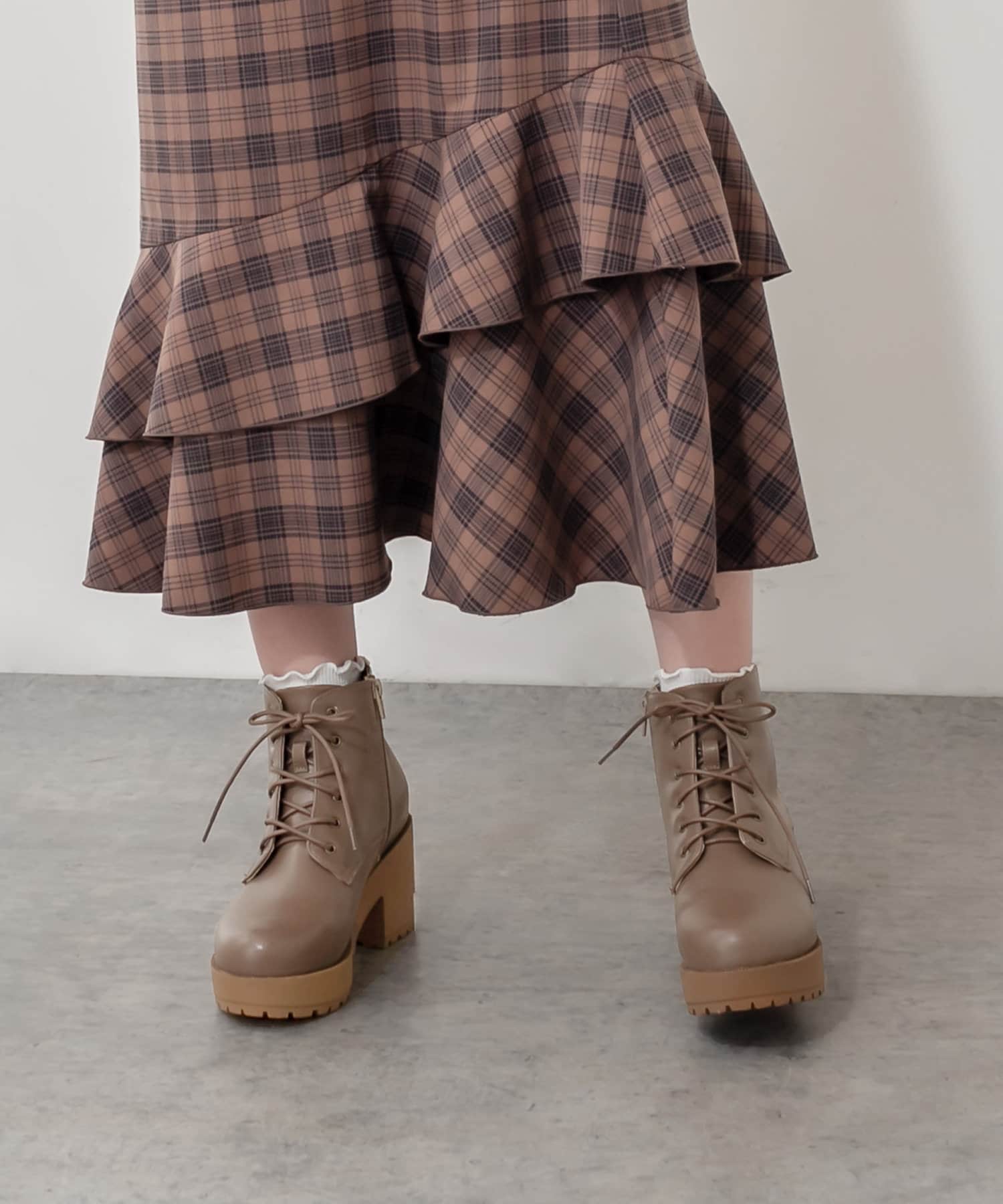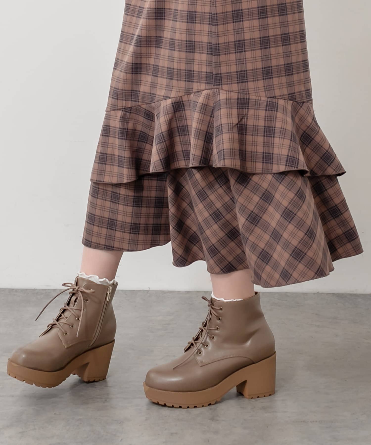 人気のタンク底レースアップショートブーツ
