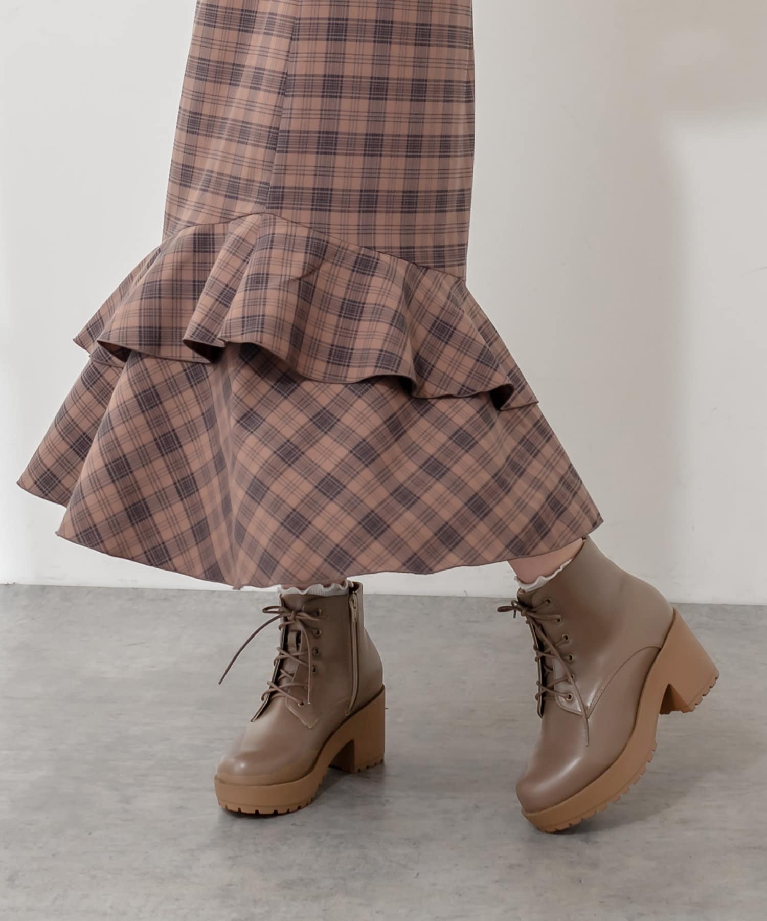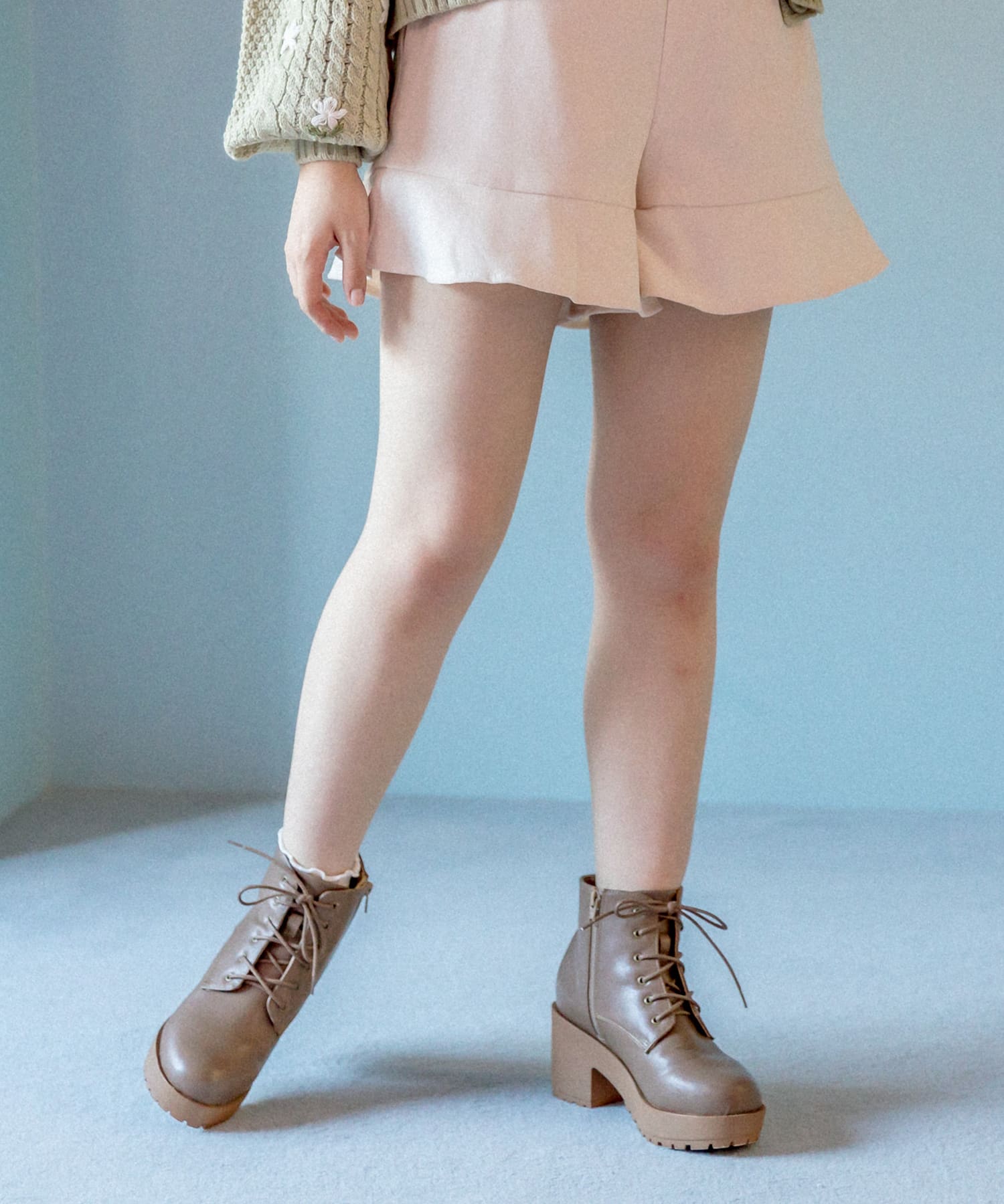 ・ミニワンピやミニボトムにも足元のボリューム感がでて使いやすいアイテム。