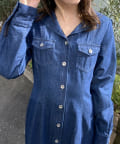 マリンテイストな雰囲気漂わせる、セーラーカラーのデニムワンピース。