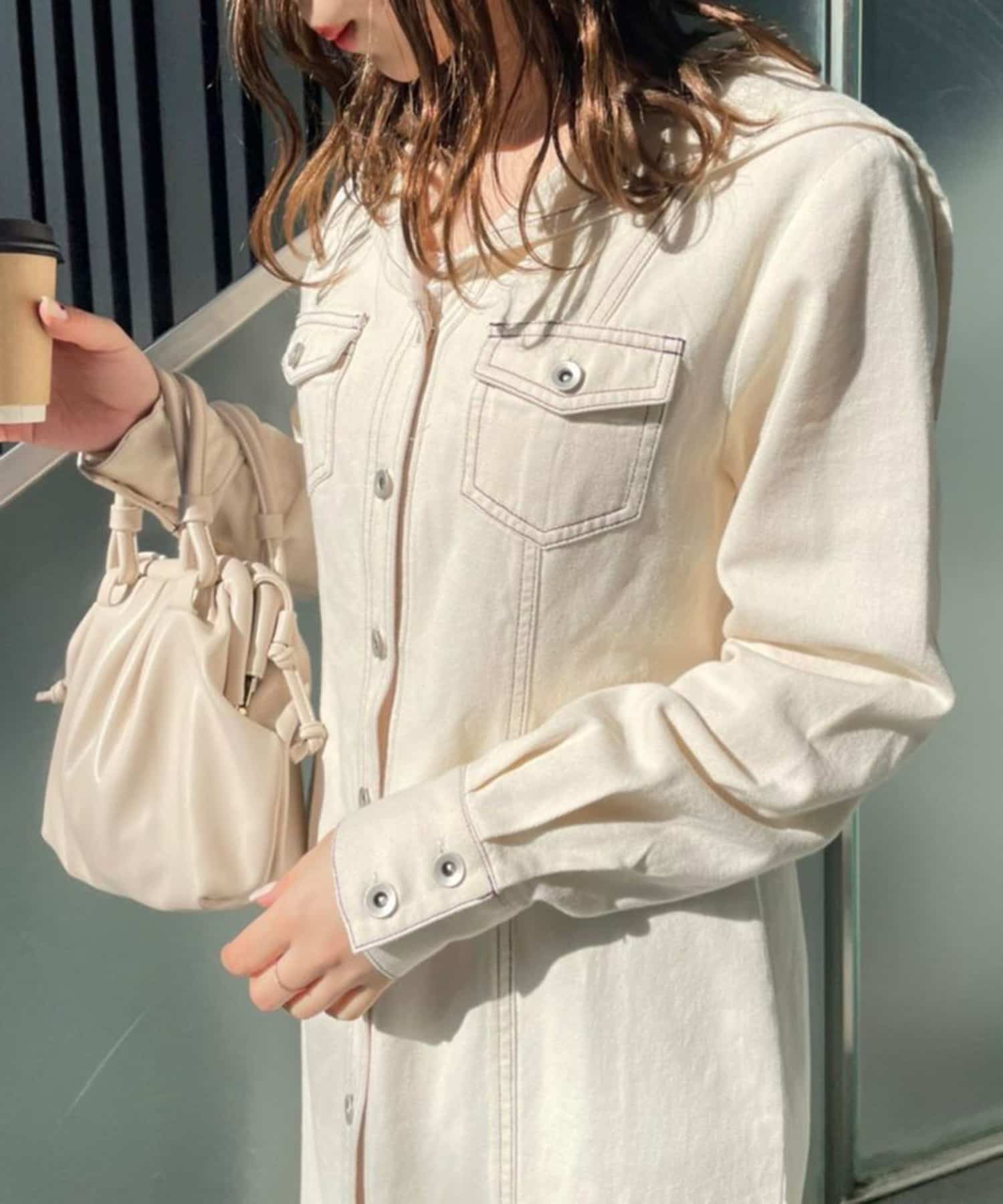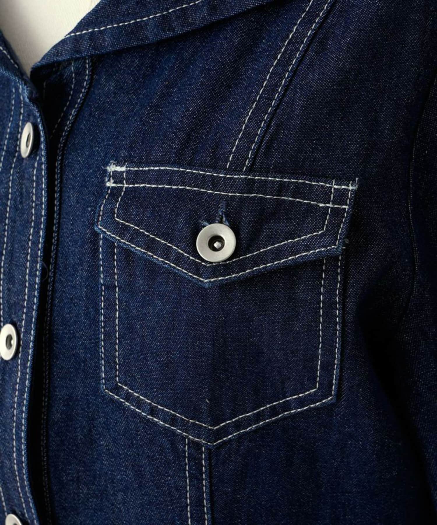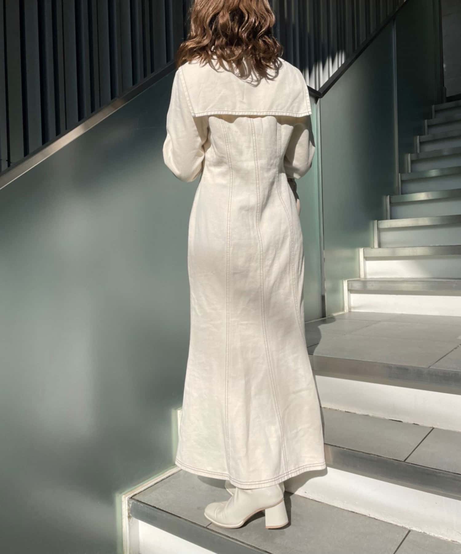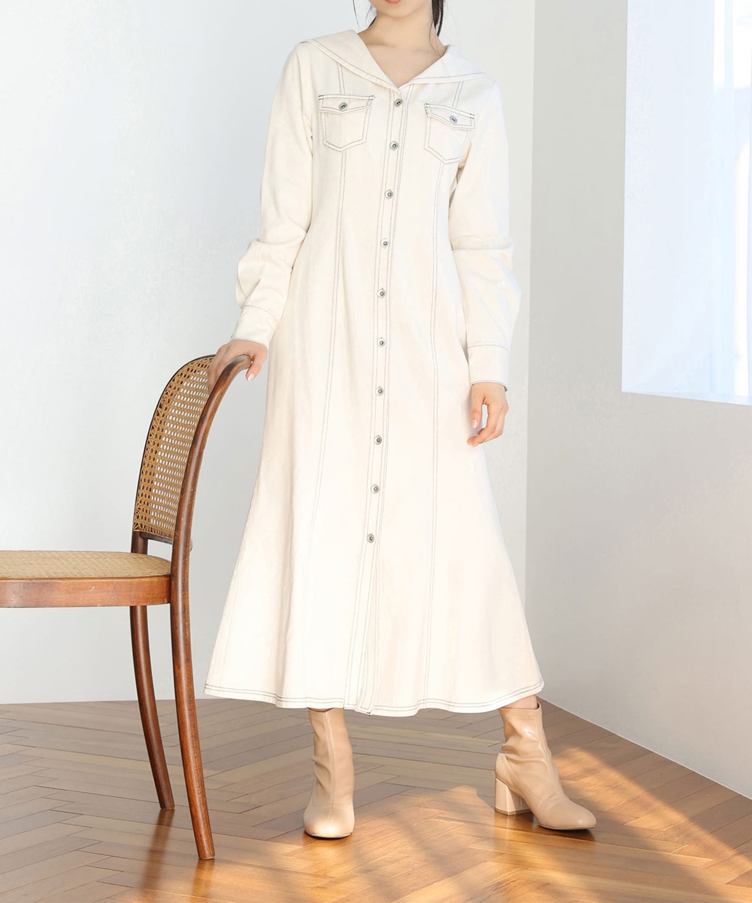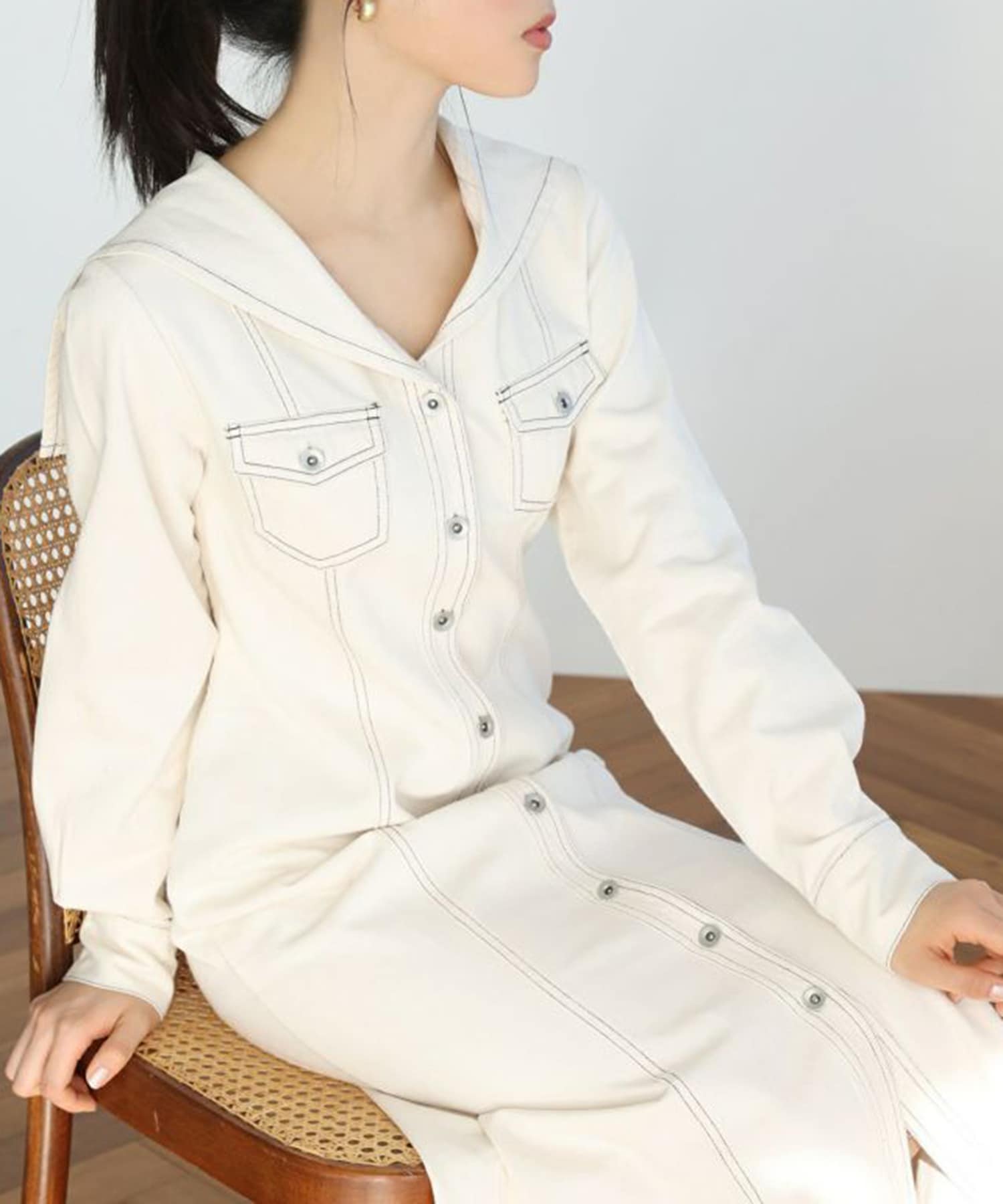 マリンテイストな雰囲気漂わせる、セーラーカラーのデニムワンピース。