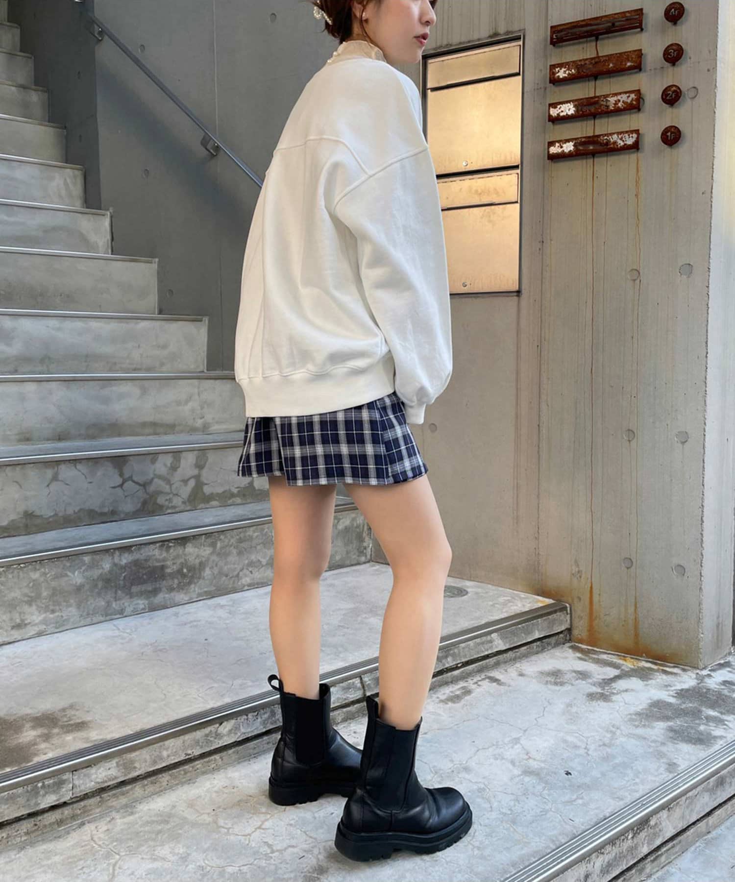 プリーツスカートなどのミニボトム合わせると、韓国っぽい着こなしになりオススメです。