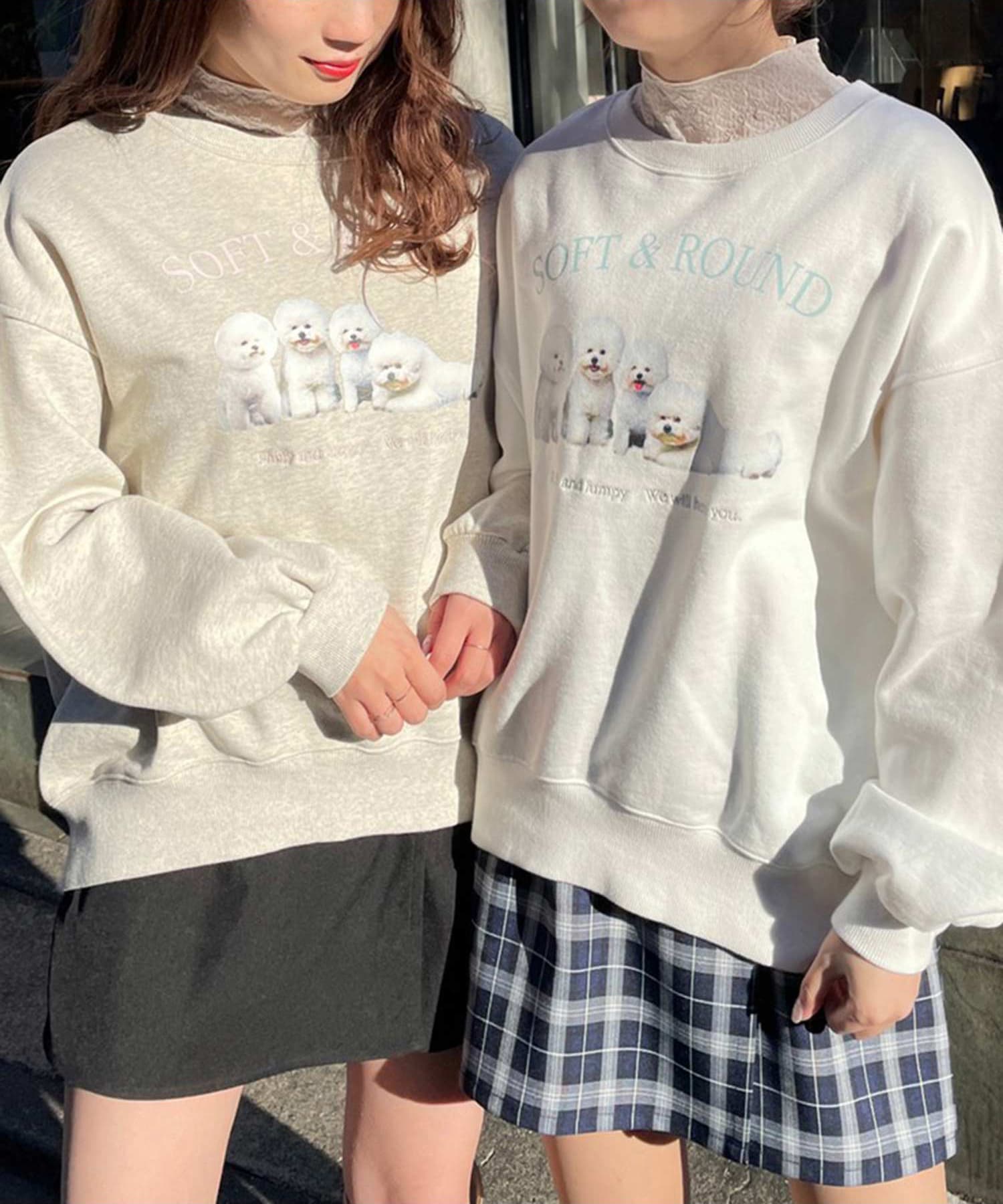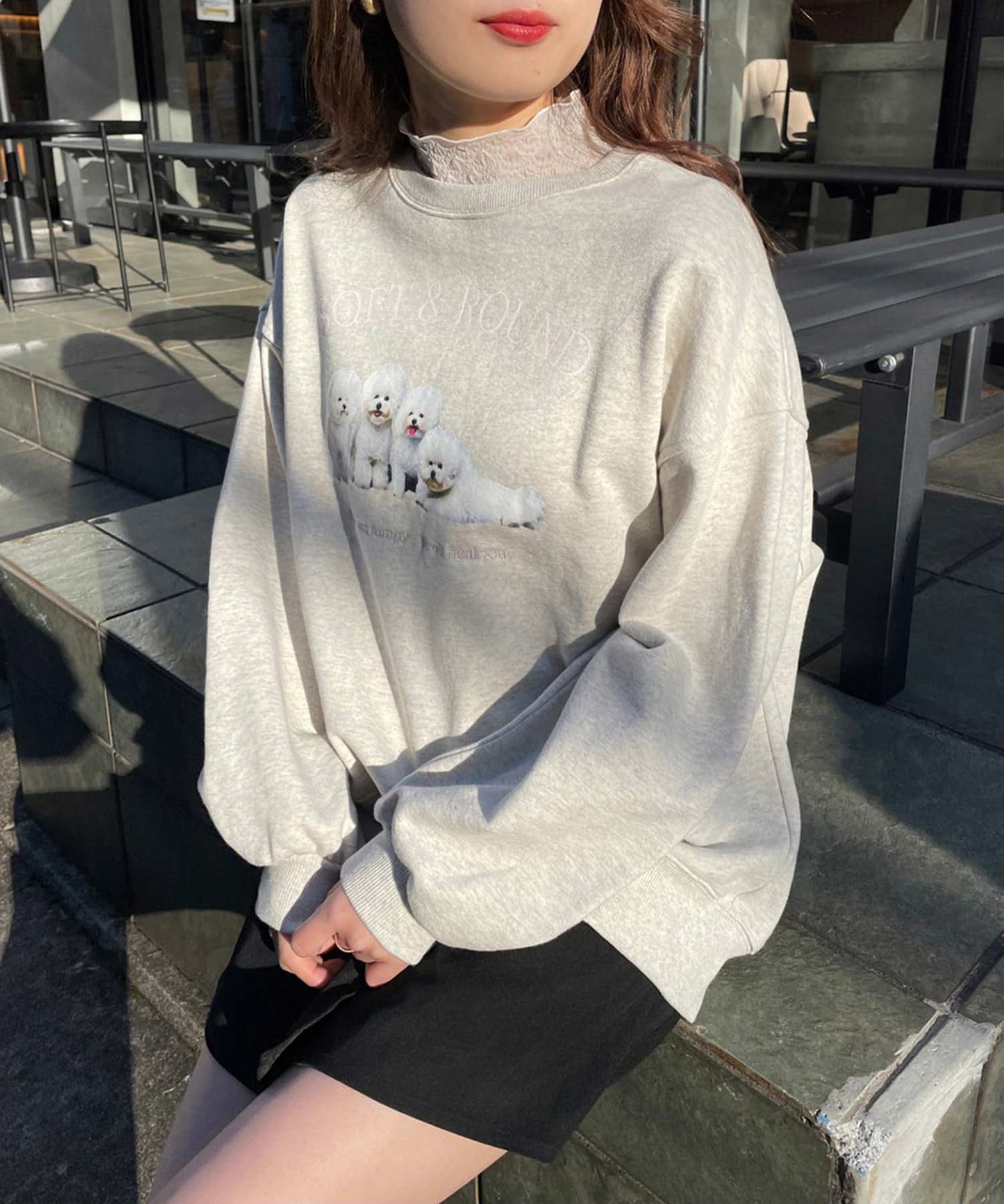 4匹のワンちゃんプリントが目を引くゆるっとスウェット