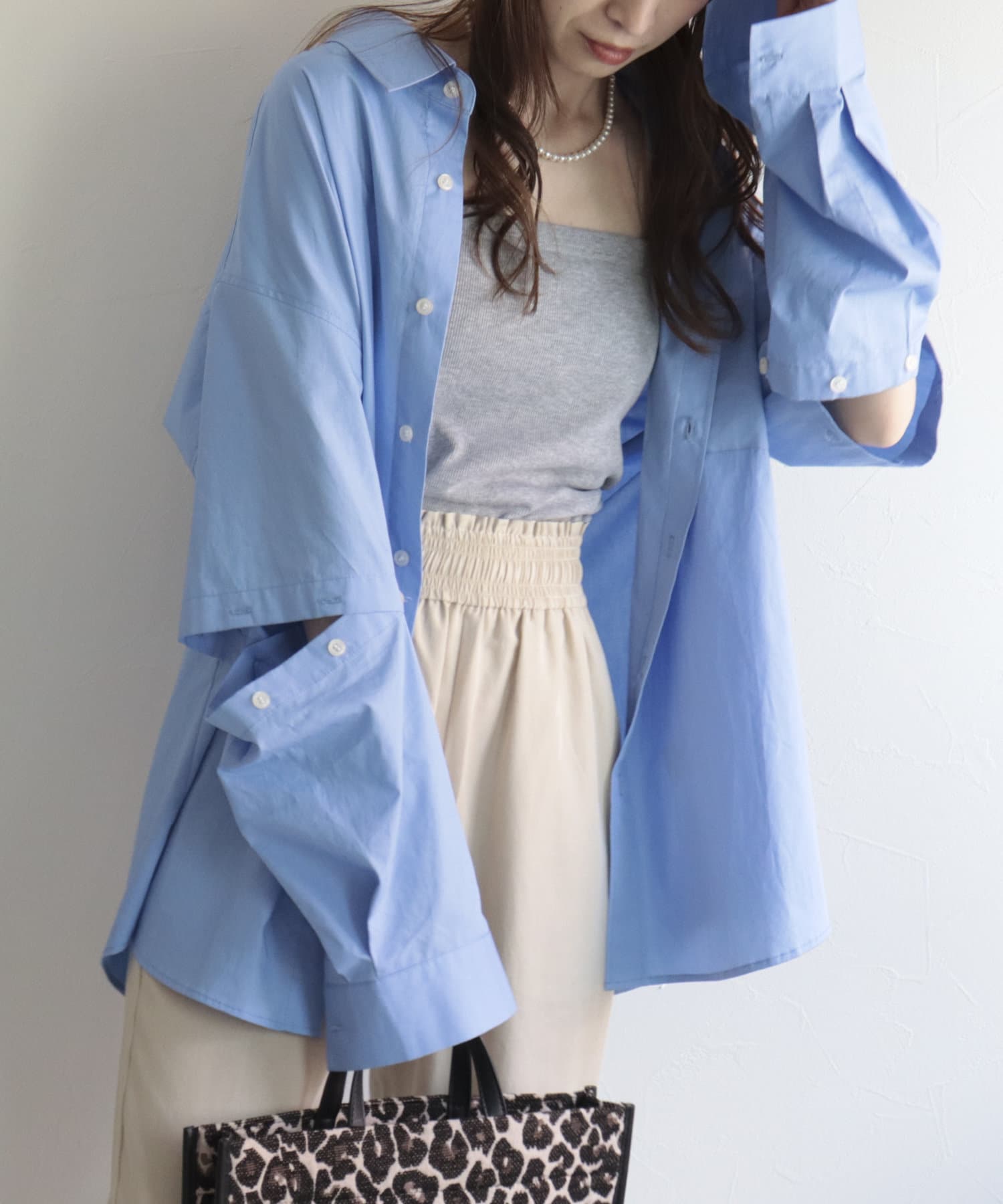 ・半袖にしたり長袖にしたり、ボタンを開けてカットアウトデザインを楽しんだりとマルチに着られるデザインです