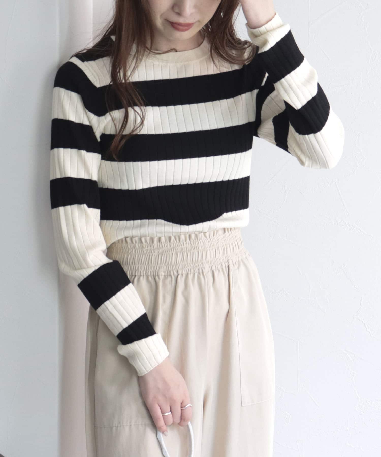 TOP > FREDY & GLOSTER > レディース > トップス > ニット/セーター > 変形ボーダーリブニット