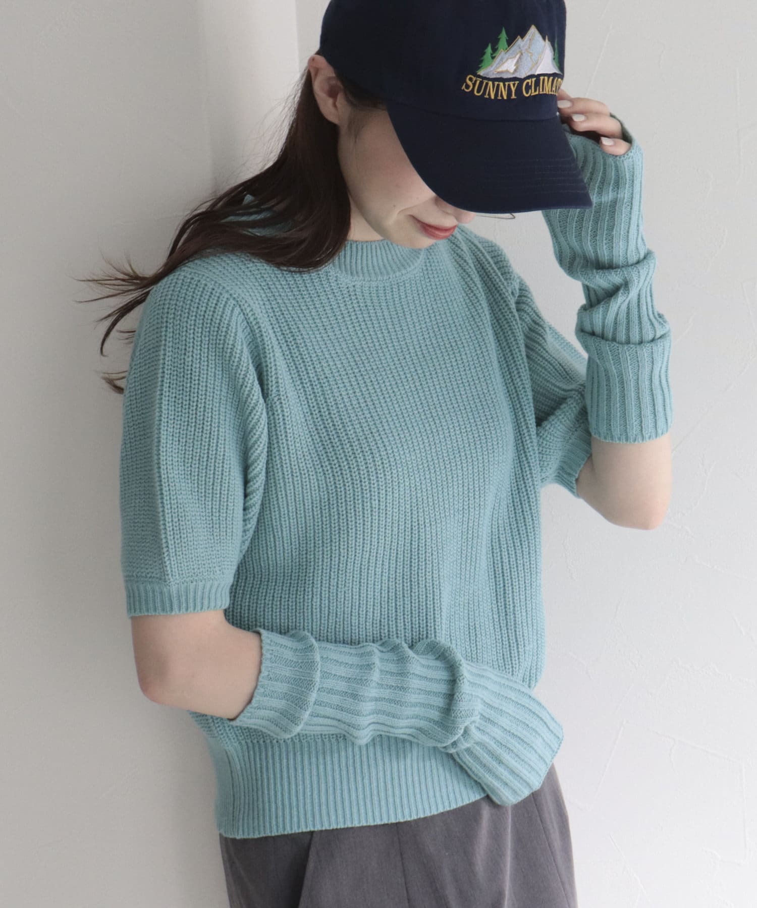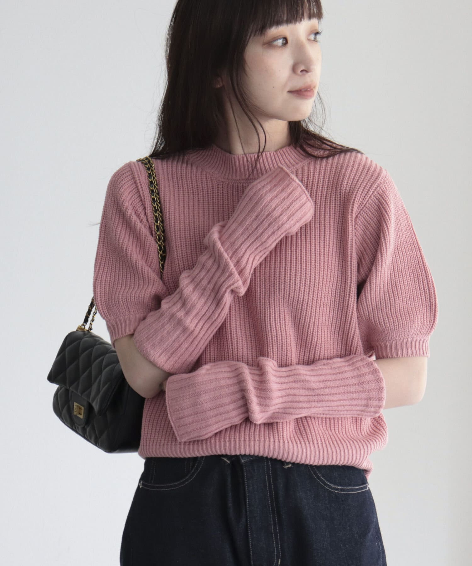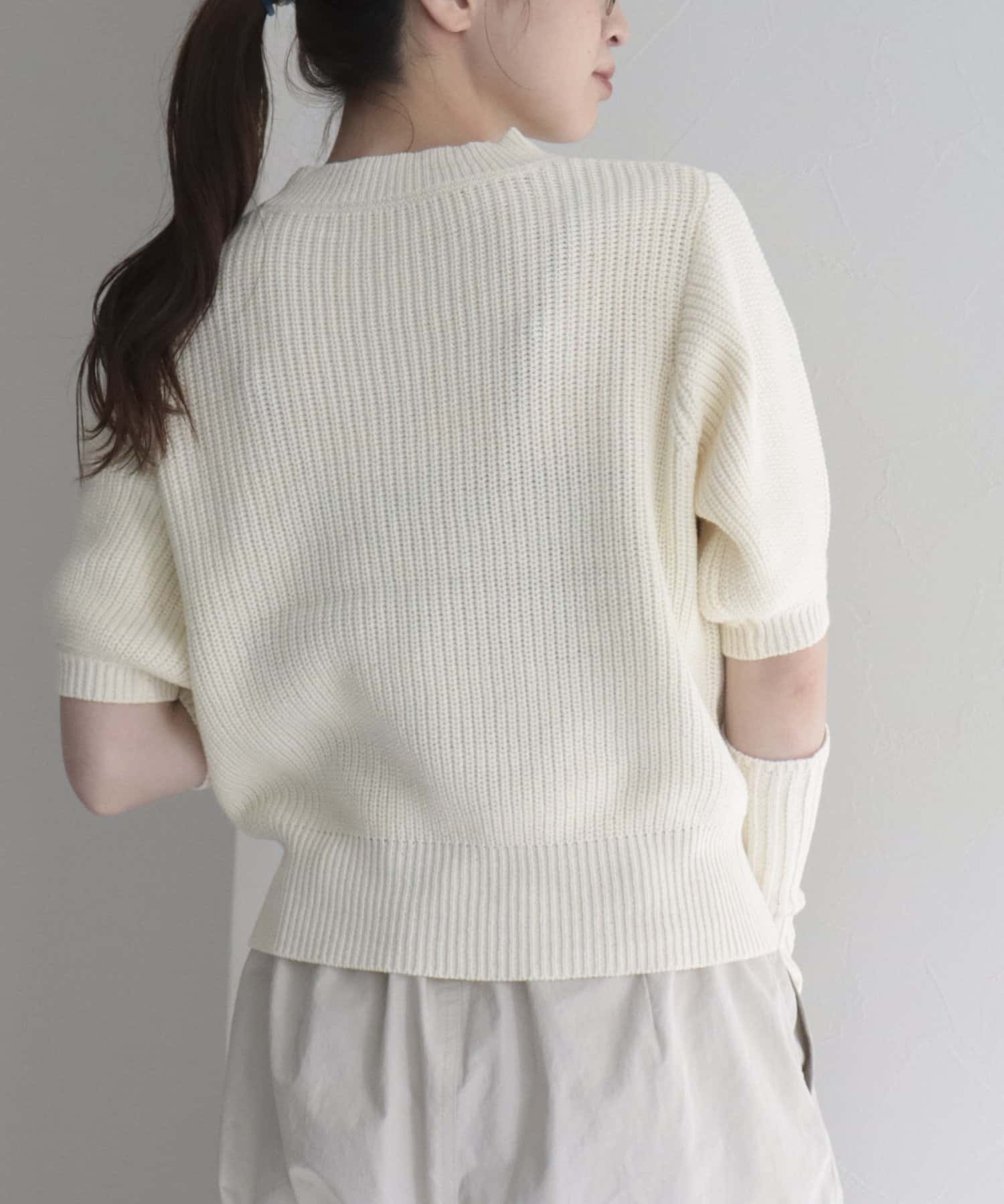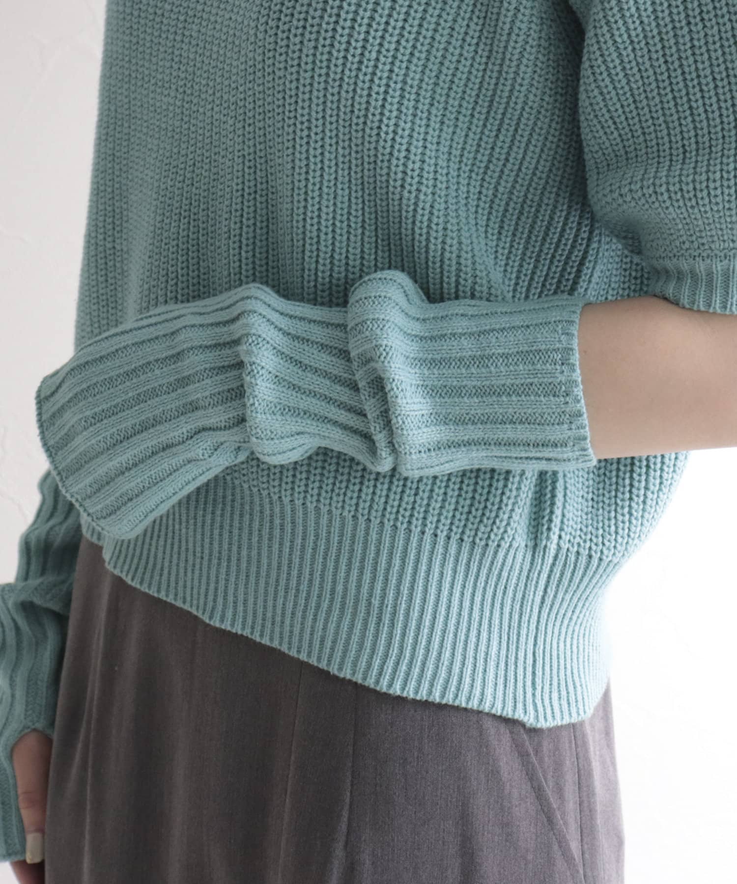 ・綿混の畦編みが暑すぎないので、早い時期から着られるニットです