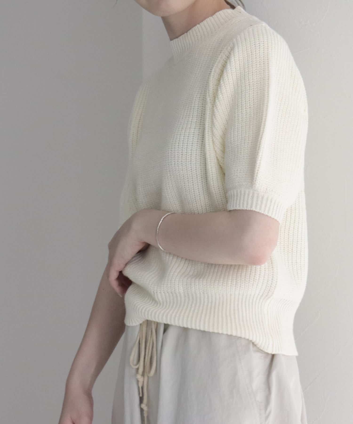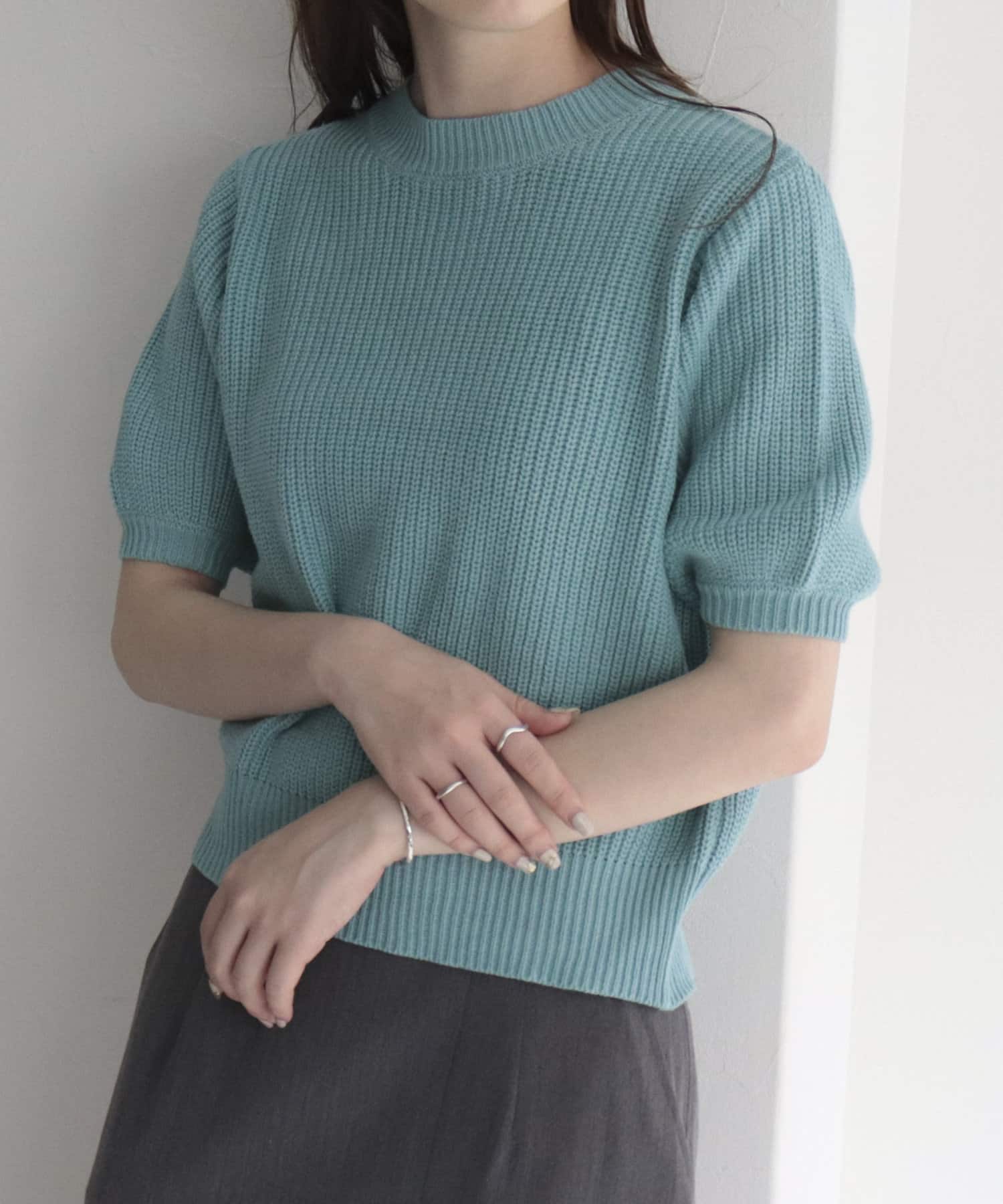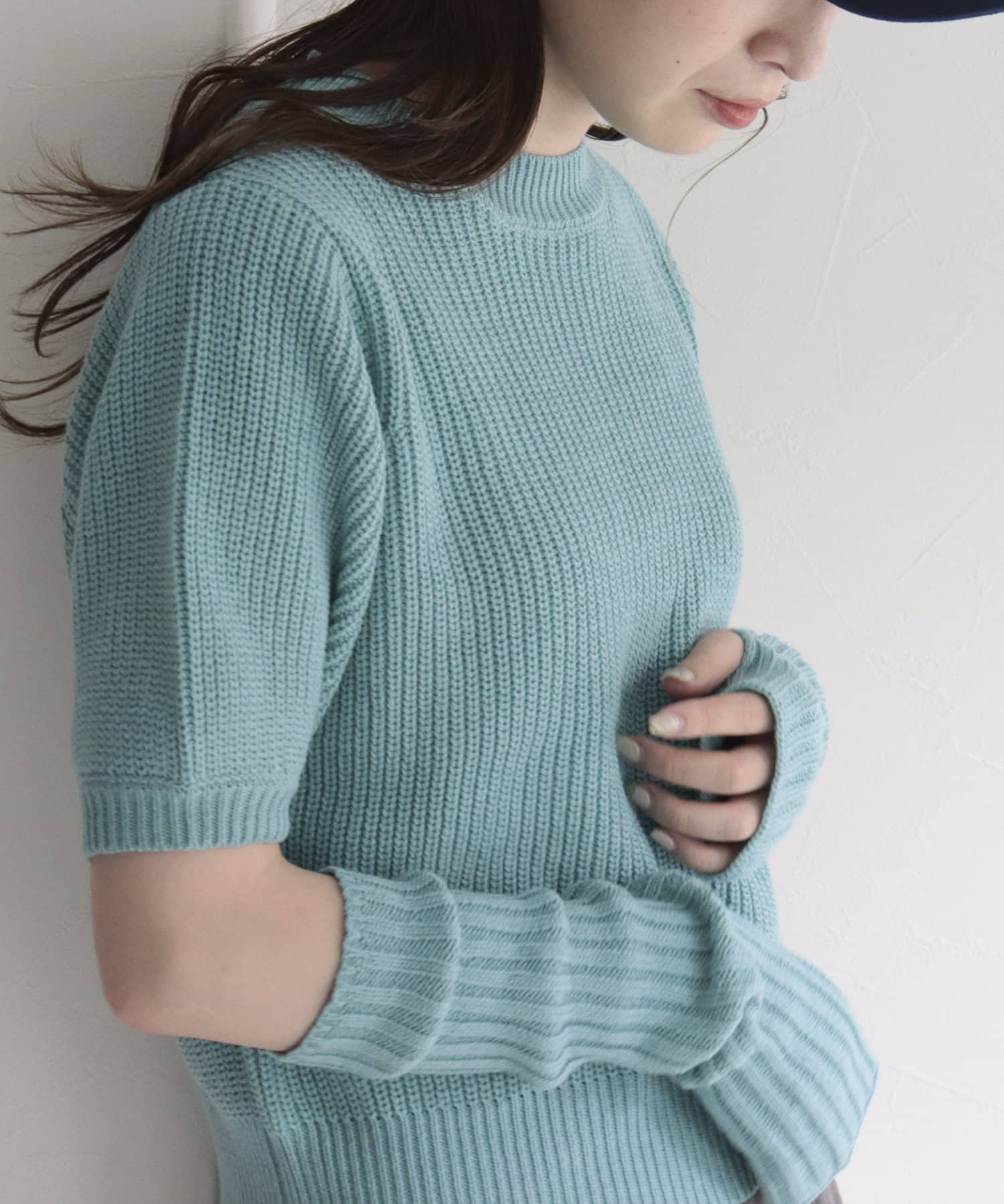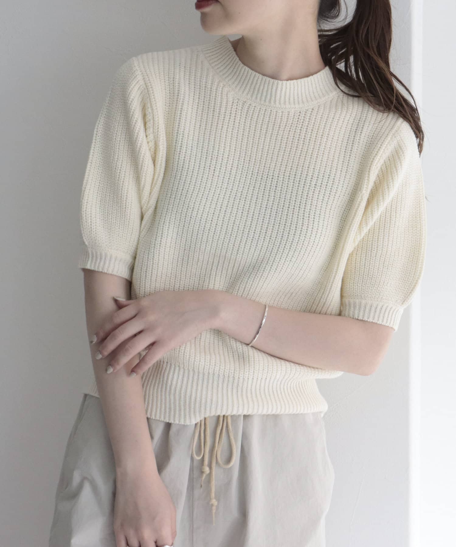 ・綿混の畦編みが暑すぎないので、早い時期から着られるニットです