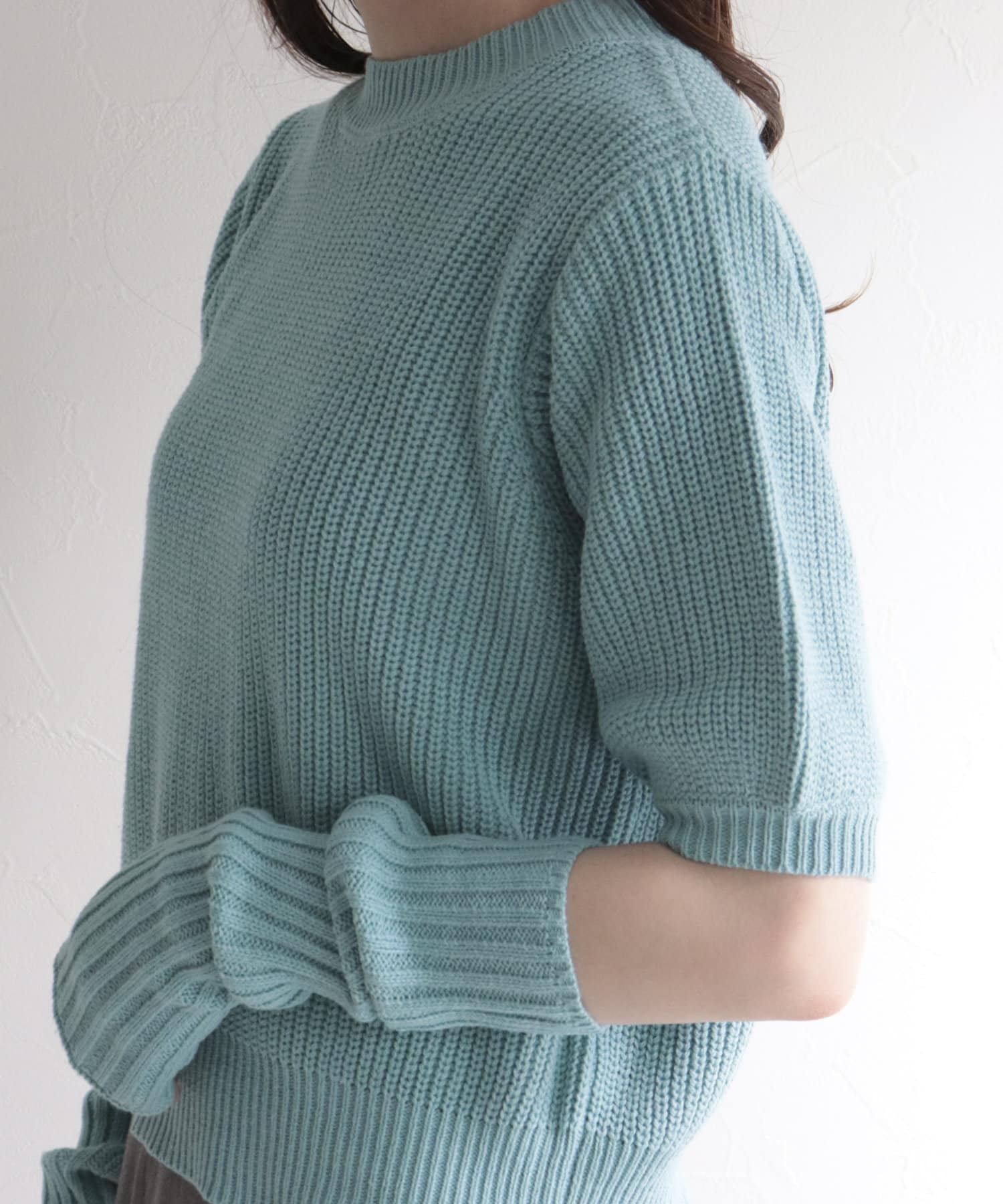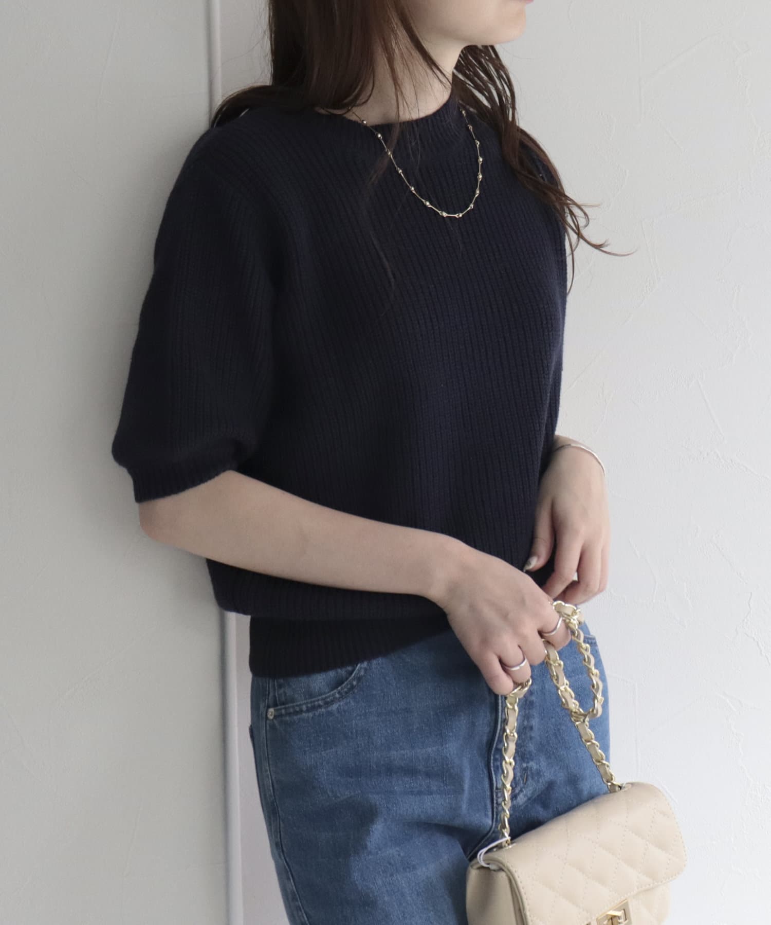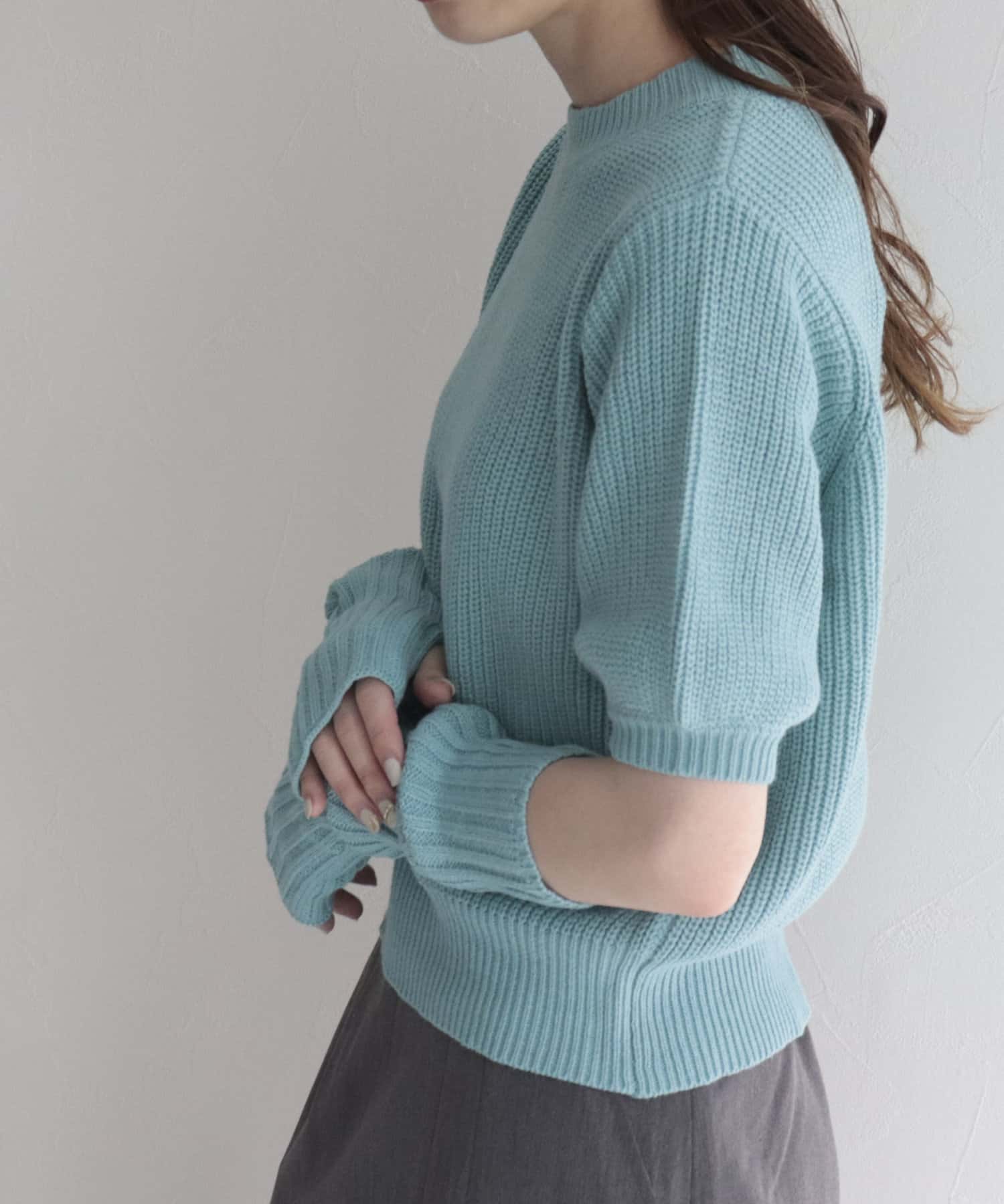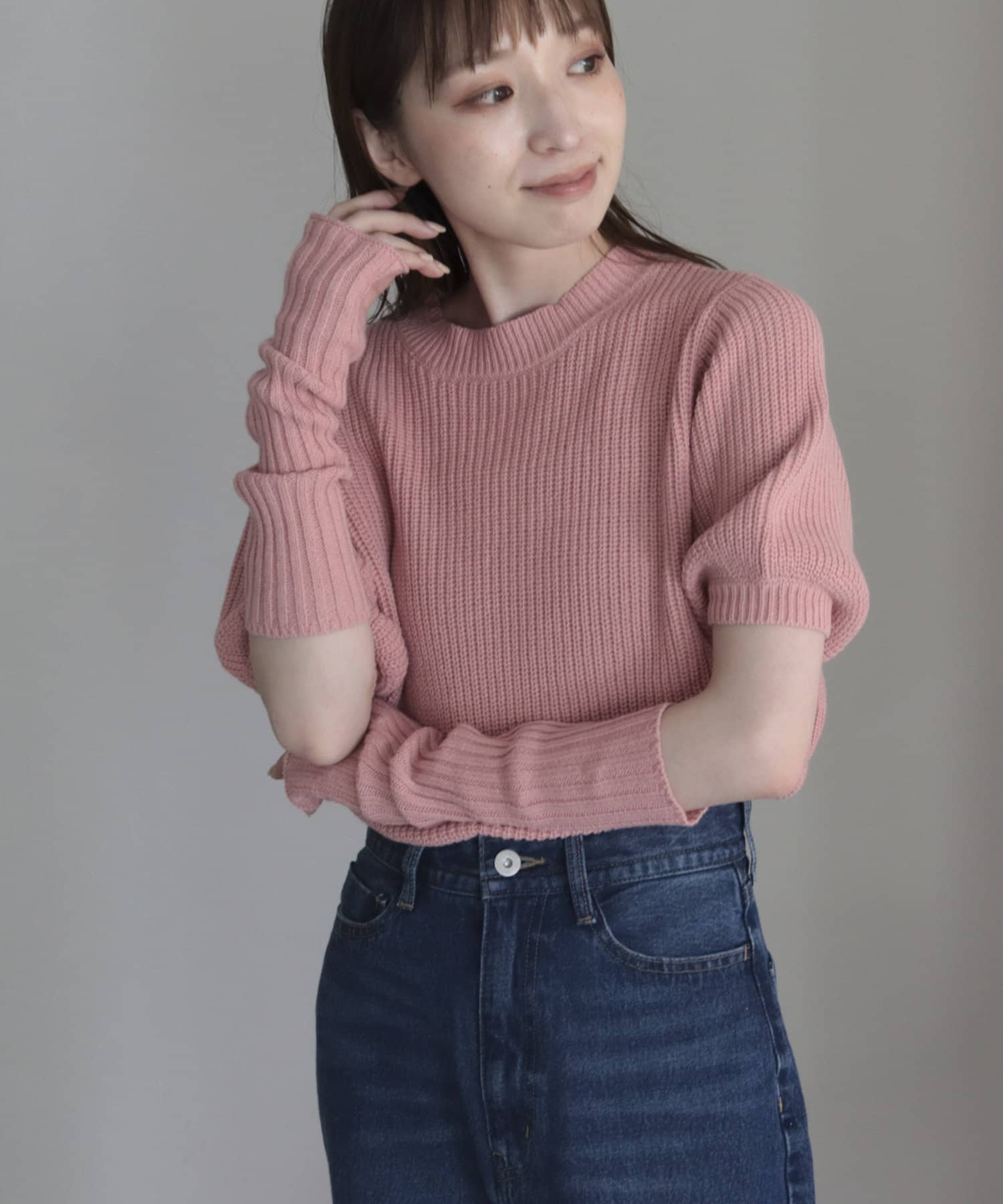 ・綿混の畦編みが暑すぎないので、早い時期から着られるニットです